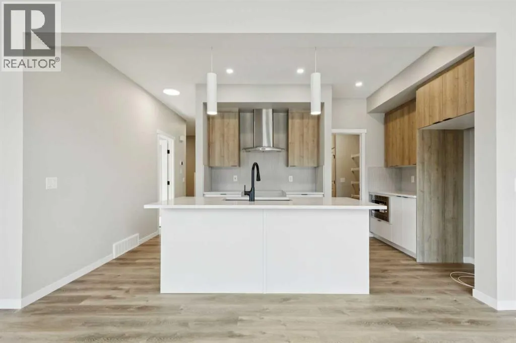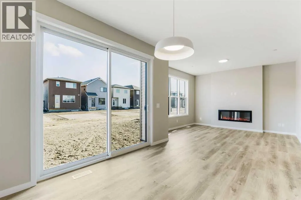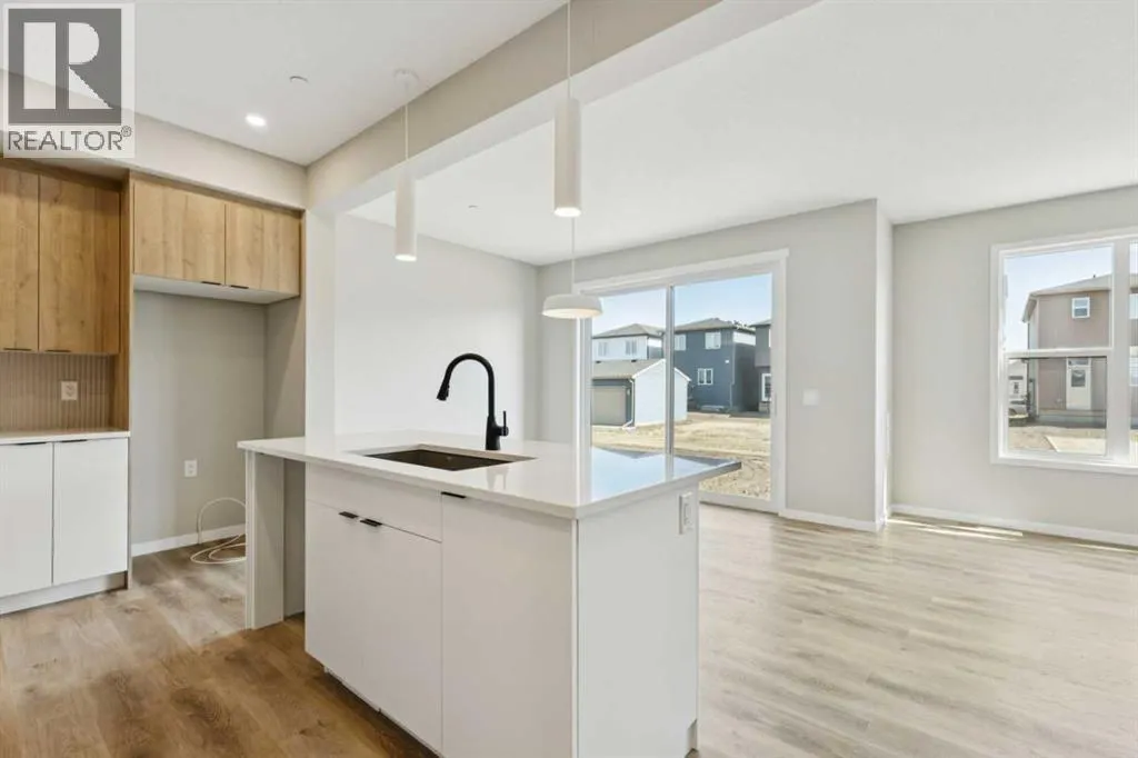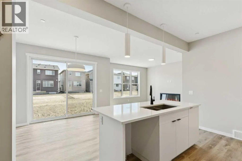 Welcome to the Della at 302 Hotchkiss Common SE, where thoughtful design meets modern living in one of Calgaryâs most exciting new communities. This beautifully crafted home offers the perfect balance of style, comfort, and functionalityâideal for growing families and those who love to entertain.Step inside to a welcoming foyer accented by a sleek painted spindle railing, setting the tone for the homeâs contemporary design. The main floor features a versatile flex room with elegant French doors, providing the perfect private space for a home office or quiet retreat. The open-concept layout seamlessly connects the lifestyle and dining areas, creating a bright and spacious environment for everyday living and hosting guests.At the heart of the home, the kitchen impresses with quartz countertops, stainless steel appliances, a built-in microwave, and a striking chimney hood fanâdesigned to combine both beauty and practicality. The lifestyle room is anchored by a stunning cascade fireplace, adding warmth and a sophisticated focal point to the space.Upstairs, retreat to the beautifully appointed primary bedroom, offering comfort and privacy for restful nights.The lower level offers exceptional future potential with a 9-foot foundation height, wet bar rough-in, and a separate side entranceâideal for future development. Enjoy the added benefit of a natural wetland feature right at your doorstep, bringing serene views and a connection to nature just steps from home.Community Highlights includes, prime access to Deerfoot Trail, Stoney Trail, and Macleod Trail, Minutes from shopping, dining, and everyday amenities, Over 51 acres of parks, pathways, and wetlands for year-round recreationFirst-time buyers may be eligible for a GST rebateâspeak to your Realtor or sales representative to learn more. (id:27476)