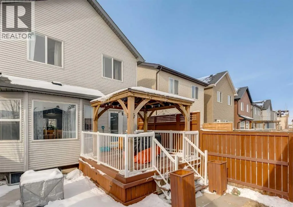Great Value! This impeccably maintained 4 BEDROOM and 4 BATHROOM detached home is located in the sought after, family friendly LAKE COMMUNITY of AUBURN BAY. This 2 Storey residence offers everything you are looking for including a FULLY FINISHED BASEMENT, an OVERSIZED GARAGE, CENTRAL AIR CONDITIONING & LAKE ACCESS for the family! With 2,098 SQ. FT. of finished living space, the main level features an open concept layout with HARDWOOD FLOORING throughout. The kitchen is equipped with STAINLESS STEEL APPLIANCES, a center island with a BREAKFAST BAR, and a dedicated dining area. The living room is centered around a GAS FIREPLACE, and the main floor is completed by a mud room and 2 piece bathroom. The upper level contains three bedrooms. The PRIMARY BEDROOM includes a 4 PIECE ENSUITE and a walk in closet. An additional 4 piece bathroom serves the other two bedrooms. The FULLY FINISHED BASEMENT adds a great RECREATION ROOM, a fourth bedroom, and a full 4 piece bathroom. The home is also upgraded with a HOT WATER ON DEMAND boiler system. The backyard features a DECK WITH A PERGOLA and leads to an EXTRA WIDE detached double garage ($26'0" \times 20'1"$). This property is within WALKING DISTANCE to ST. GIANNA SCHOOL and AUBURN BAY SCHOOL. Residents enjoy year round LAKE ACCESS for swimming, boating, and skating. The AUBURN HOUSE facility provides incredible AMENITIES including a gymnasium, tennis courts, spray park, and picnic areas for the ultimate family lifestyle. This vibrant community is built around the 43 ACRE FRESHWATER LAKE, offering a true resort feel right at home. Close to SOUTH HEALTH CAMPUS and SETON shopping, this home offers an excellent price point and WONT LAST LONG! (id:27476)