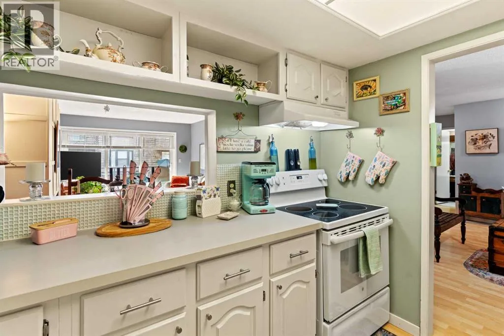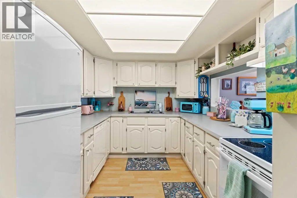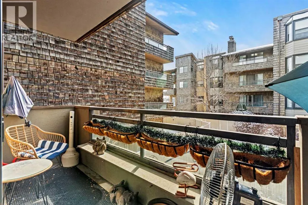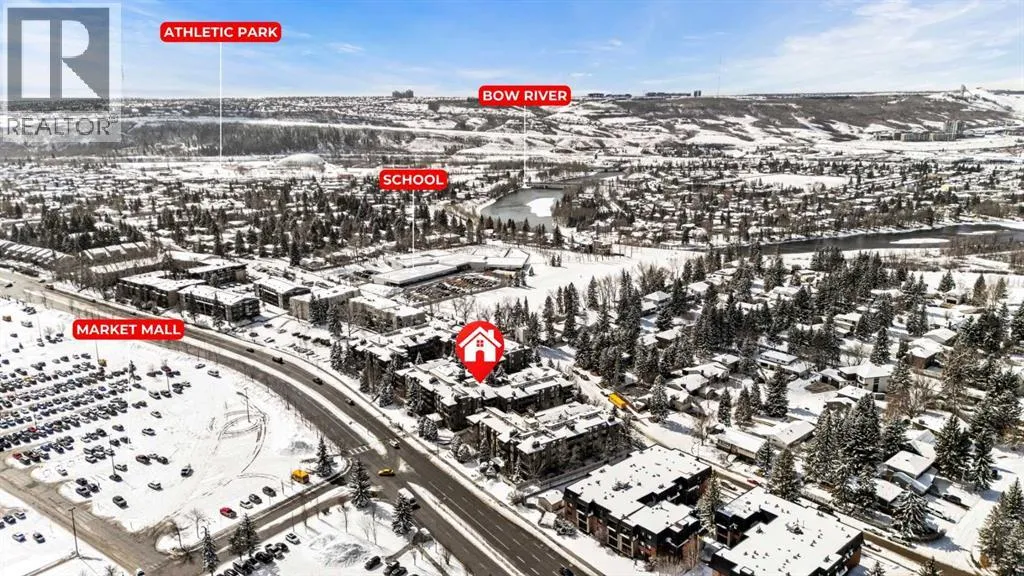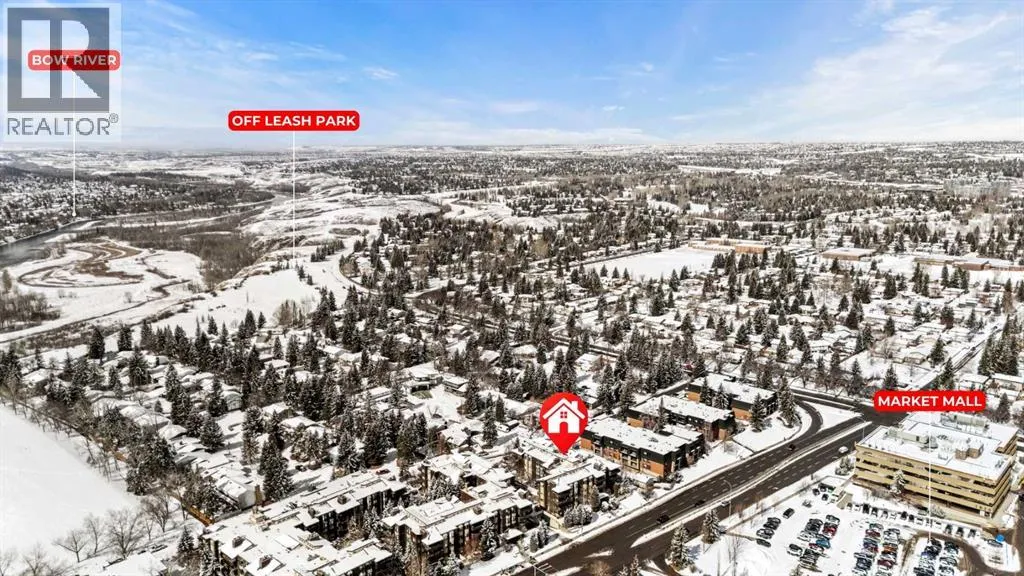 Here it isâ¦. comfort, style and a prime locationâ¦.the one youâve been waiting for! This charming 2-bedroom condo is a hidden gem in an ideal location. Overlooking the tranquil courtyard, this south-facing unit brings tons of warmth and natural light into your home. The spacious living room boasts a wood burning fireplace, creating the perfect ambiance for relaxation. With its close proximity to Market Mall and the Market Mall Professional Centre, you have quick access to a range of amenities, including medical facilities, shopping, and restaurants. If you attend the University of Calgary, work at the Foothills Medical Centre or Children's Hospital, you can easily walk to work, making your daily commute a breeze. Public transportation is just a step away, offering convenience for all your city adventures. Nature lovers will appreciate the nearby park with its walking paths and stunning views of Canada Olympic Park and the Rocky Mountains. A heated underground parking stall and storage locker rounds out this great unit, book your showing today and see for yourself! (id:27476)