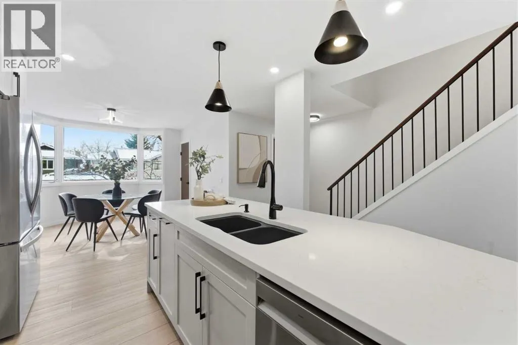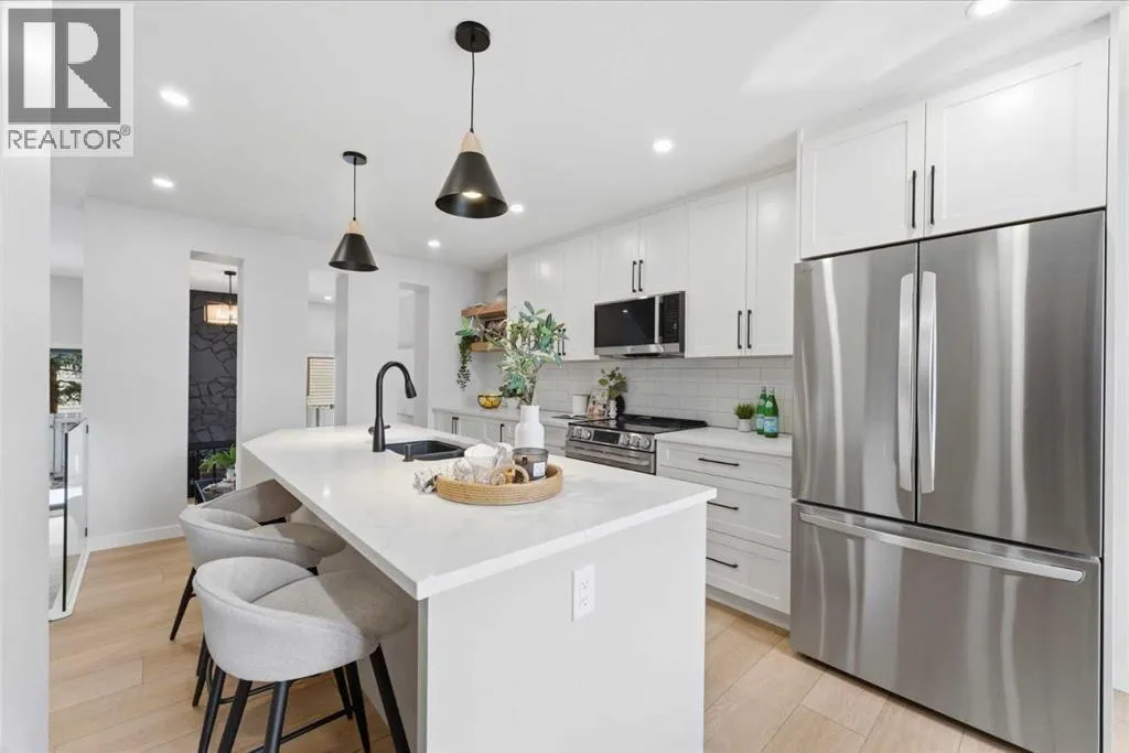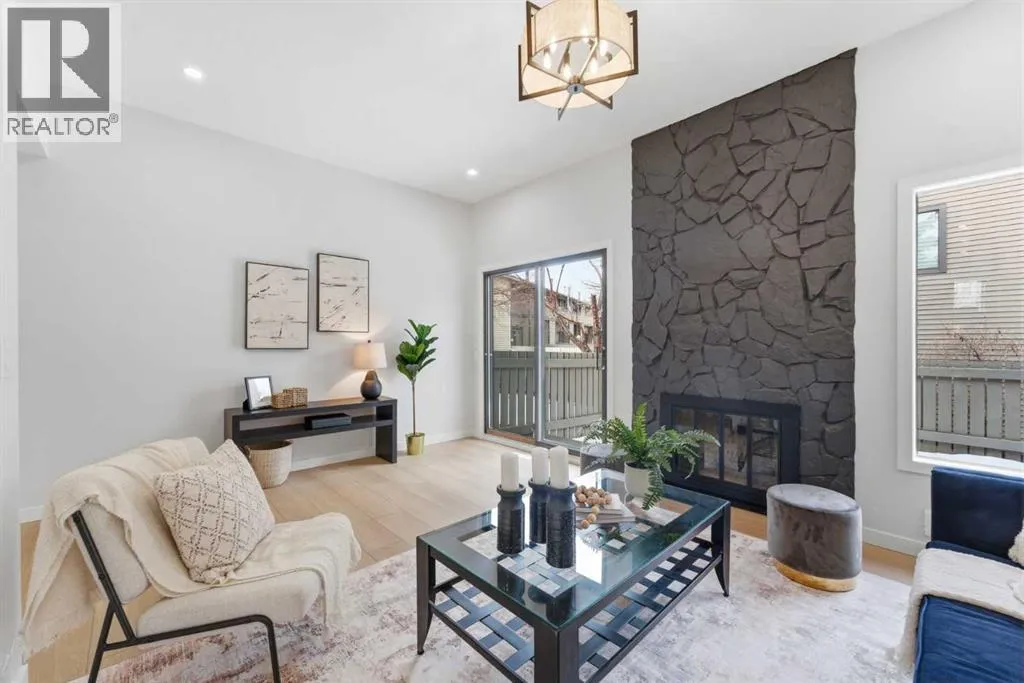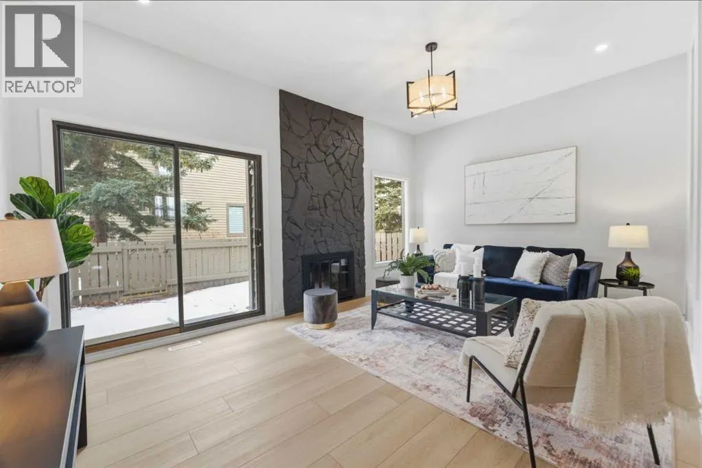 Infill luxury in a modern townhouse! Fully renovated and reimagined, this home stands out the moment you walk in. The main living space is elevated with vaulted ceilings, oversized windows, and a bold floor-to-ceiling stone fireplace that anchors the entire room. The expansive kitchen is bright, open and completely different from every other unit in this complex. It also has a full size island, a perfect gathering spot for guests & entertaining. The kitchen design features a modern look with two-toned organic colouring cabinetry, quartz countertops, new stainless steel appliances, tons of storage, and coffee nook with floating accent shelves. Flowing effortlessly into the dining area, it's gives enough space for a 6-8 person table and is surrounded by windows and natural light. Upstairs offers 3 well-sized bedrooms, including a spacious master bedroom and large walk in closet with custom built-ins. The laundry has also been moved from the basement to the second level for added convenience. The bathrooms have also been updated with modern vanities, tiled bathtub, and custom cabinetry. The basement provides extra space for you to use your imagination with, workout space, rec room, lots of potential! The backyard is fully fenced, private, and usable. Itâs the kind of space youâll actually use: morning coffee, letting the dog out, and enjoying the summer evenings. An attached garage, quiet complex, and a location that puts you close to everything without feeling busy. Fully renovated, luxury townhouse living in this desirable lake communityâthis one hits different! (id:27476)