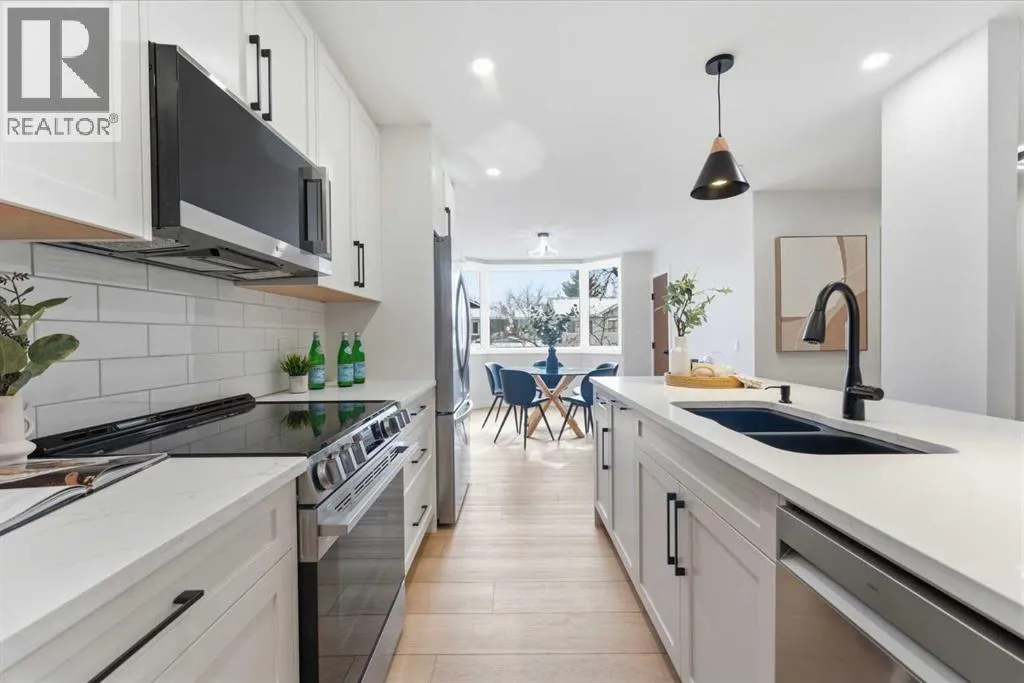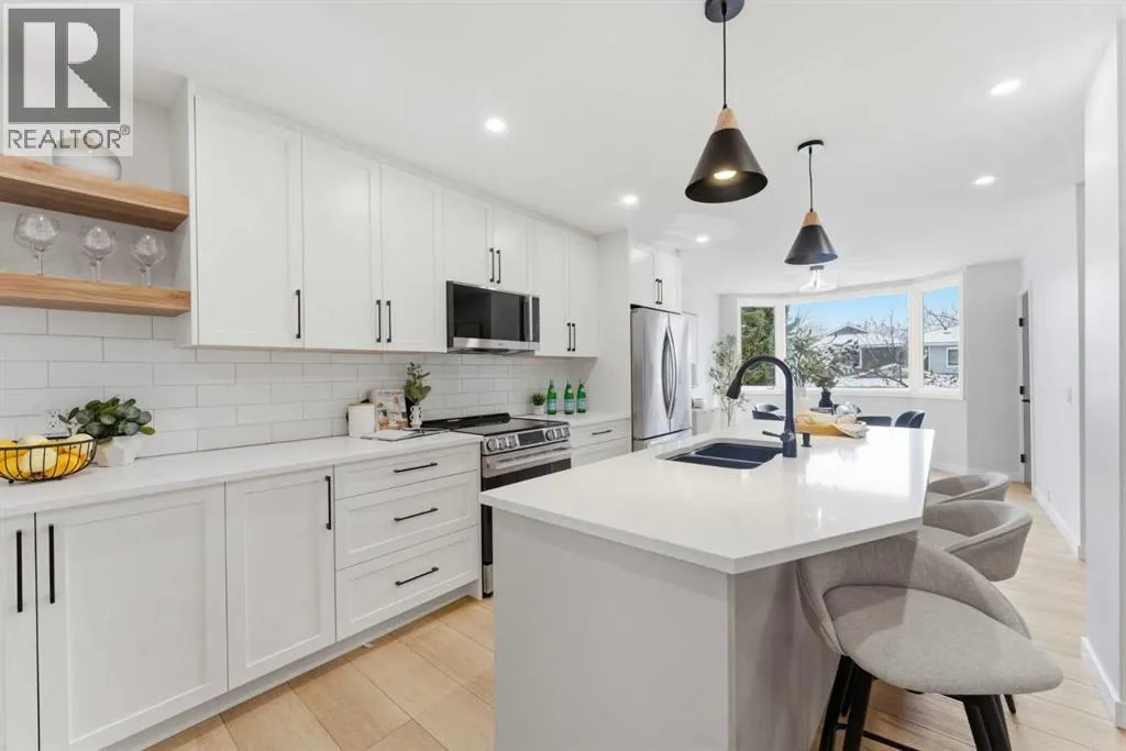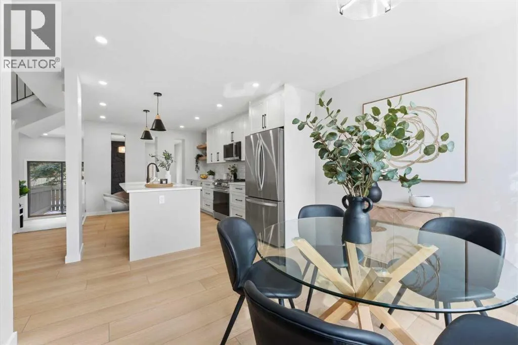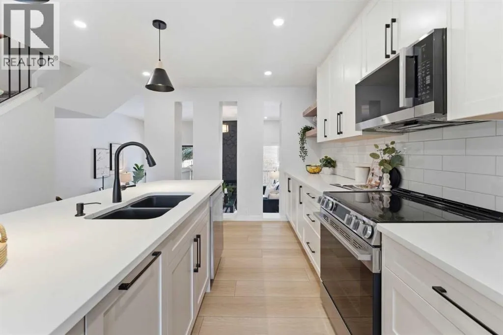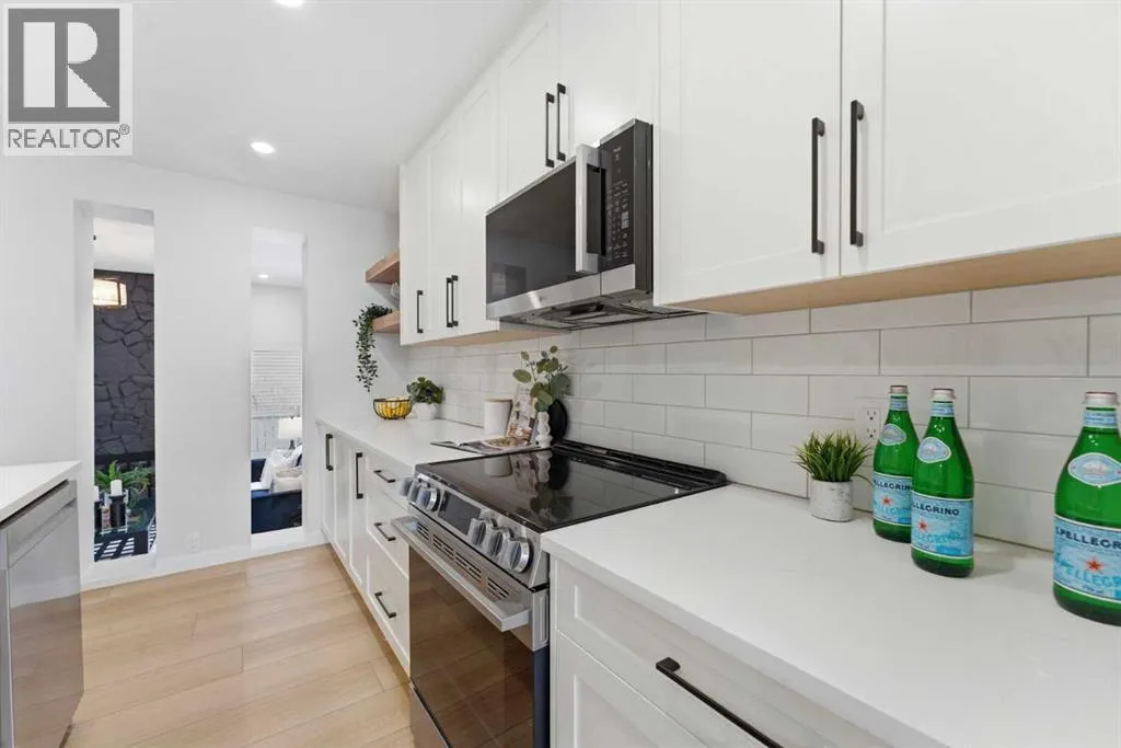 Infill luxury in a modern townhouse! Fully renovated and reimagined, this home stands out the moment you walk in. The main living space is elevated with vaulted ceilings, oversized windows, and a bold floor-to-ceiling stone fireplace that anchors the entire room. The expansive kitchen is bright, open and completely different from every other unit in this complex. It also has a full size island, a perfect gathering spot for guests & entertaining. The kitchen design features a modern look with two-toned organic colouring cabinetry, quartz countertops, new stainless steel appliances, tons of storage, and coffee nook with floating accent shelves. Flowing effortlessly into the dining area, it's gives enough space for a 6-8 person table and is surrounded by windows and natural light. Upstairs offers 3 well-sized bedrooms, including a spacious master bedroom and large walk in closet with custom built-ins. The laundry has also been moved from the basement to the second level for added convenience. The bathrooms have also been updated with modern vanities, tiled bathtub, and custom cabinetry. The basement provides extra space for you to use your imagination with, workout space, rec room, lots of potential! The backyard is fully fenced, private, and usable. Itâs the kind of space youâll actually use: morning coffee, letting the dog out, and enjoying the summer evenings. An attached garage, quiet complex, and a location that puts you close to everything without feeling busy. Fully renovated, luxury townhouse living in this desirable lake communityâthis one hits different! (id:27476)