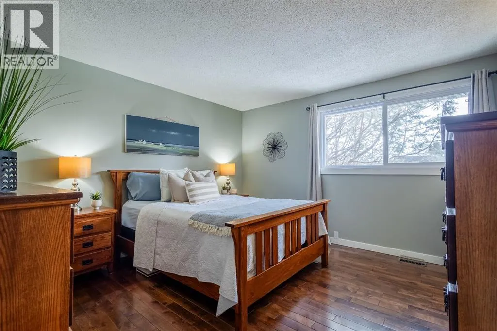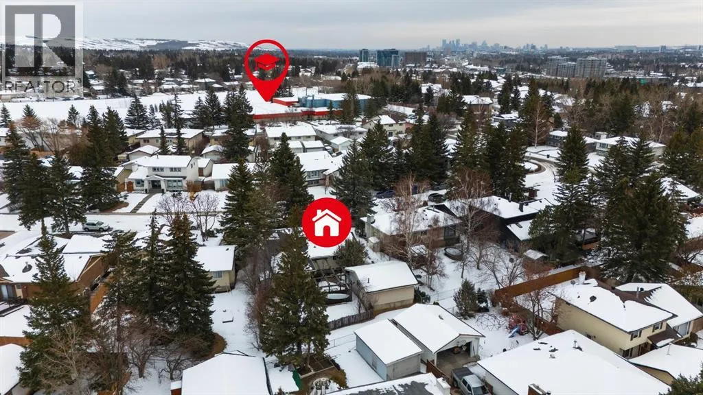 This beautifully maintained bungalow offers an exceptional location just a short walk from West Dalhousie School (Kâ6) and H.D. Cartwright School (7â9), with Sir Winston Churchill High School nearby. The University of Calgary and Alberta Childrenâs Hospital are both only a quick 10-minute drive away, making this an ideal home for families and professionals alike. Upstairs, youâll find three spacious bedrooms, including a bright and inviting primary retreat featuring two closets and a private ensuite. Large, newer windows throughout the main level flood the home with sunshine. The main floor also boasts a formal living and dining room, along with an open-concept kitchen and family room centered around a cozy wood-burning fireplaceâperfect for everyday living and entertaining. The upstairs 4-piece bathroom has a solar tube to let the sun inside. The fully developed basement adds even more versatility, offering an additional bedroom, full bathroom, generous storage space, and a relaxing saunaâideal for unwinding during Calgaryâs colder months. Outside, enjoy a sunny west-facing, fully fenced backyard with mature trees, patio and large deck creating a private setting for outdoor gatherings. The heated double detached garage adds convenience year-round. The garage features extra under ground storage. Additional highlights include newer shingles, a well-maintained furnace (with service records), and a humidifier. This is a wonderful opportunity to own a warm and inviting home in a sought-after, family-friendly community. (id:27476)