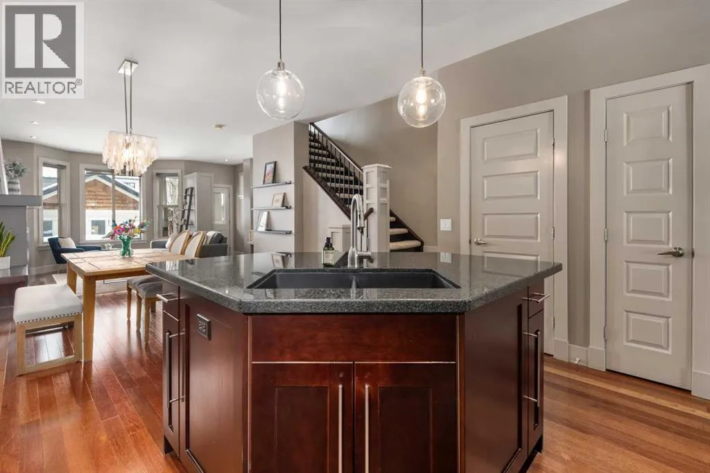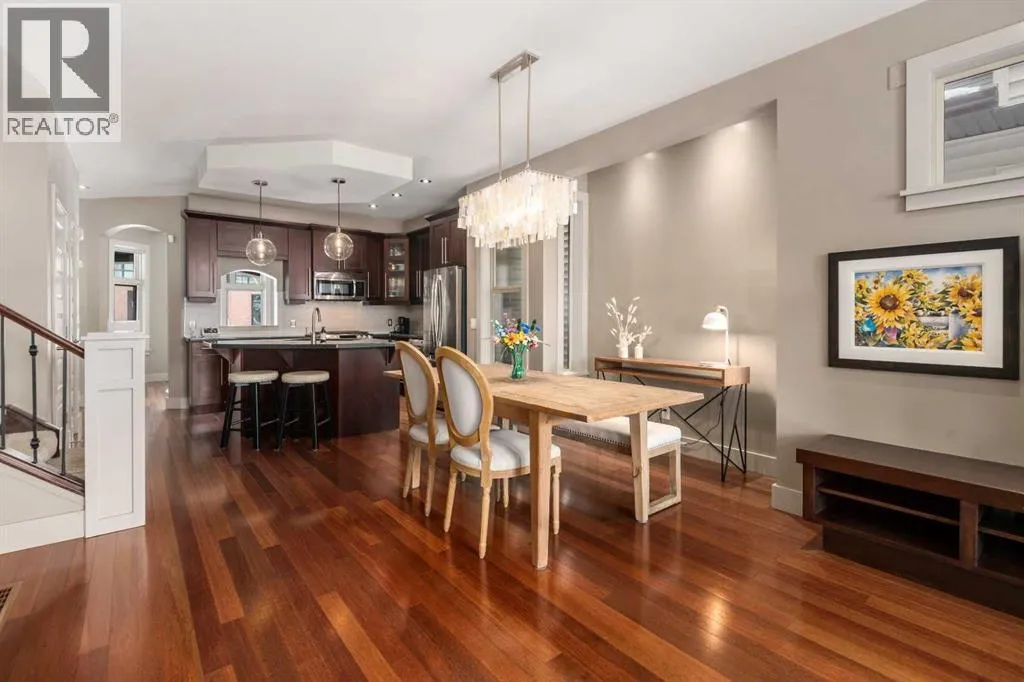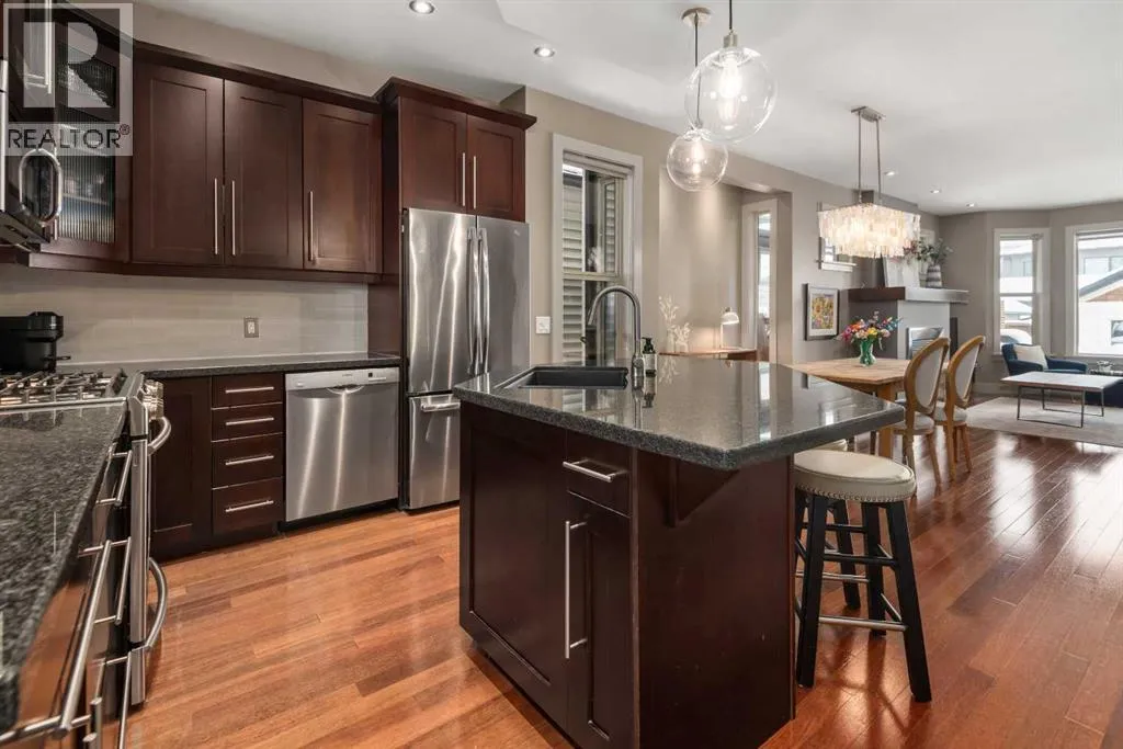 Nestled in the heart of sought-after Altadore, this beautifully finished 4-bedroom, detached two-storey home with double detached garage, offers the perfect blend of timeless style, thoughtful upgrades, and exceptional outdoor living. Inside, youâll find 9-foot ceilings, rich merbeau hardwood floors, granite countertops, a large central island, stainless steel appliances, and a warm gas fireplace that anchors the inviting main living space. Upstairs you'll find 3 bedrooms, including a gorgeous primary retreat featuring vaulted ceilings, a walk-in closet, and a luxurious ensuite complete with granite countertops, a skylight, a soaker tub, and a separate glass shower.The fully finished basement expands the living space with a comfortable media room, fourth bedroom, 3-piece bathroom, generous laundry room, ample storage, and a true hidden gem â a cold room/wine cellar. Outside, enjoy the sunny west-facing backyard with an impressive 400 sq. ft. composite TREX deck, modern cedar privacy screen, and a natural gas firepit â perfect for entertaining or relaxing at the end of the day. Recent upgrades include air conditioning (2020), roof (2020), fridge (2020), sump pump (2020), hot water tank (2019), water softener (2024), and exterior lighting (2025).Located in one of Calgaryâs most desirable inner-city communities, Altadore is loved for its tree-lined streets, strong sense of community, and unbeatable access to amenities. Enjoy being just minutes from Marda Loopâs vibrant shops, restaurants, and cafes, excellent schools, parks, River Park, Sandy Beach, and scenic pathway systems, all while having quick access to downtown. (id:27476)