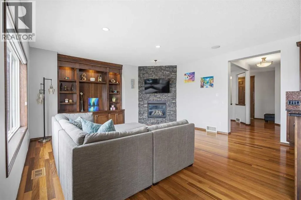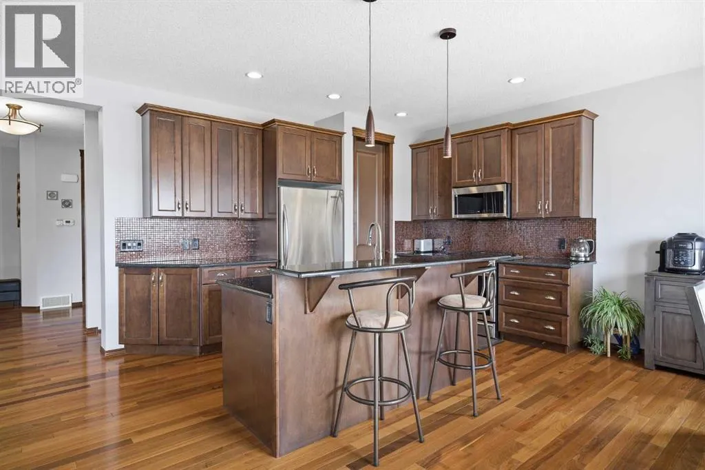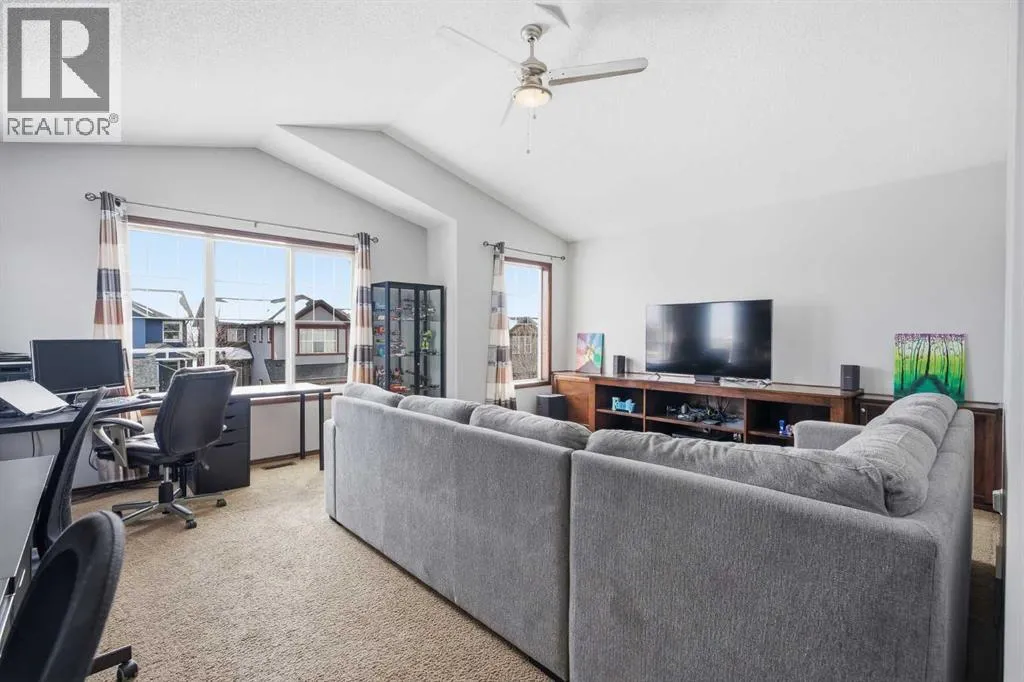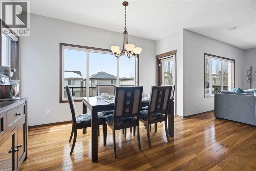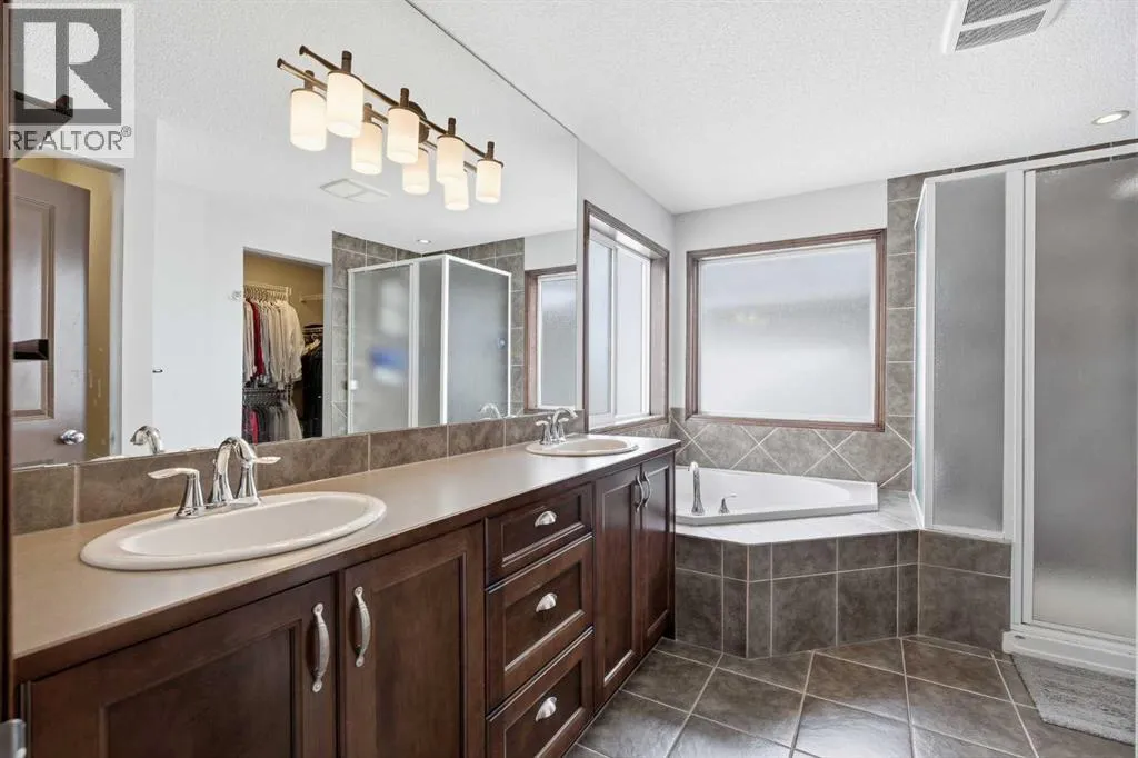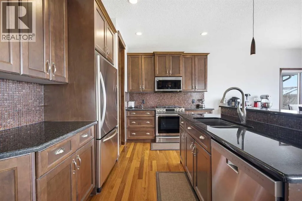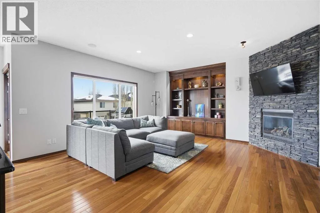 This beautifully appointed home offers a perfect blend of style, comfort, and functionality at an exceptional value. The main floor features impressive 9-foot ceilings complemented by elegant 8-foot doors, creating a spacious and airy atmosphere throughout. Designed with a bright, open-concept layout, the living space is filled with natural light and seamlessly connects the kitchen, dining, and living areas - ideal for both everyday living and entertaining. The modern kitchen is stunning, featuring stainless steel appliances, granite countertops, a large central island with breakfast bar seating, and a convenient walkthrough pantry leading to the spacious mudroom with integrated laundry. A stylish gas fireplace with a full stone surround adds warmth and sophistication to the main living area. Another main floor highlight includes a versatile flex room - perfect as a home office/den, second dining area, or childrenâs playroom. Upstairs, youâll find an impressive bonus room with vaulted ceilings, a huge primary bedroom with a 5-piece ensuite that includes his & her sinks, a fully tiled shower with built-in bench seating, and a large walk-in closet. This floor also includes 2 additional big bedrooms and a 4-piece bathroom. Downstairs, this home continues to impress. The fully finished walkout basement offers a massive recreational room, a fourth bedroom, a full bathroom, and is roughed-in for a future wet bar - providing endless possibilities for entertaining or extended family living. Step outside to enjoy the west-facing backyard, perfect for soaking in the afternoon and evening sun. The stunning deck spans the entire width of the home and features sleek glass railings, creating an ideal outdoor retreat for relaxing or hosting parties. Significant updates include a brand new roof, all new metalwork, and a new skylight completed in 2025, ensuring peace of mind for years to come. Additional luxuries include air conditioning, Hunter Douglas blinds, a side door entry th rough the garage for added convenience, and much more. A truly exceptional home offering outstanding features, thoughtful upgrades, and incredible value - this is one you donât want to miss! (id:27476)