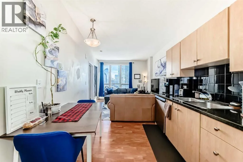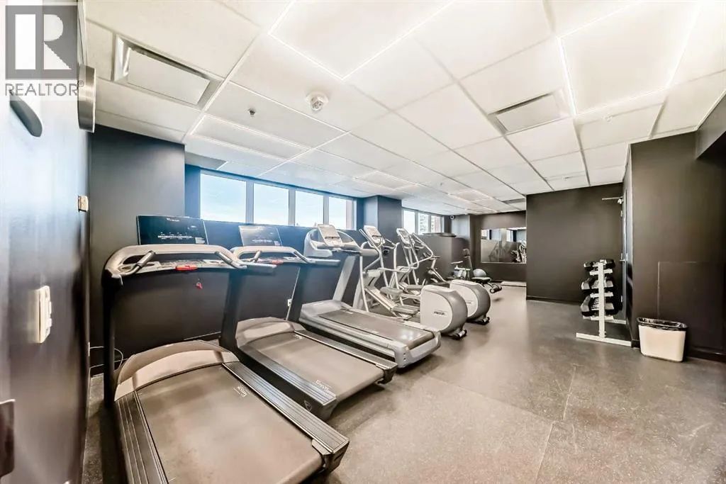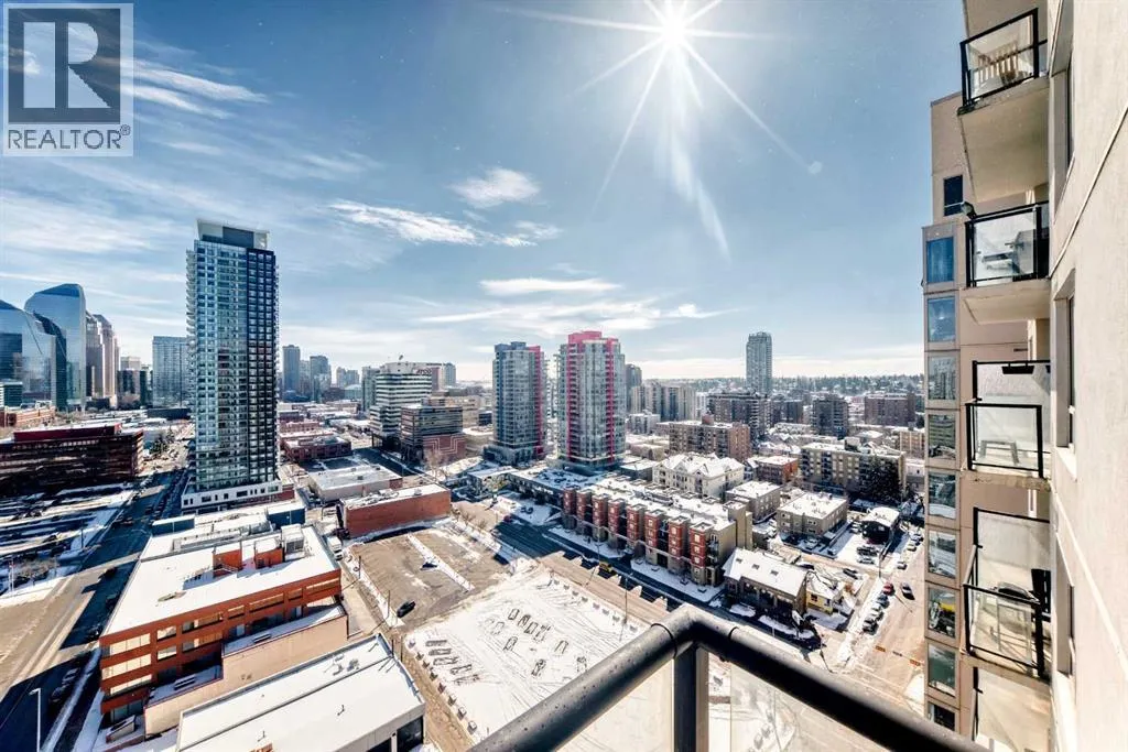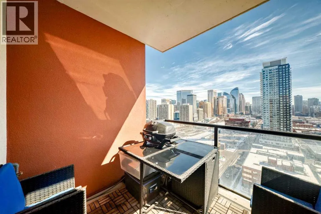 Welcome to this well-maintained 18th-floor unit offering stunning east-facing city views and an abundance of natural light through expansive floor-to-ceiling windows and 9-foot ceilings.The functional layout features a bright kitchen with granite countertops, black appliances, and neutral finishes, along with the convenience of in-suite laundry. Laminate and tile flooring run throughout the space.Step outside to your private east-facing balcony, complete with a gas hookupâperfect for enjoying morning coffee or summer BBQs.This unit includes one heated underground titled parking stall, and condo fees cover all utilities except cable.Ideally located, Calgary Co-op Midtown Market is just across the parking lot for easy grocery runs. The building also offers great amenities including a fitness room and secure underground visitor parking.Enjoy being within walking distance to Downtown Calgary, 17th Avenue SW, bike paths, and a wide range of shops, dining, and everyday conveniences. Donât miss your chance to live in one of Calgaryâs most walkable neighborhoodsâschedule your private showing today! (id:27476)