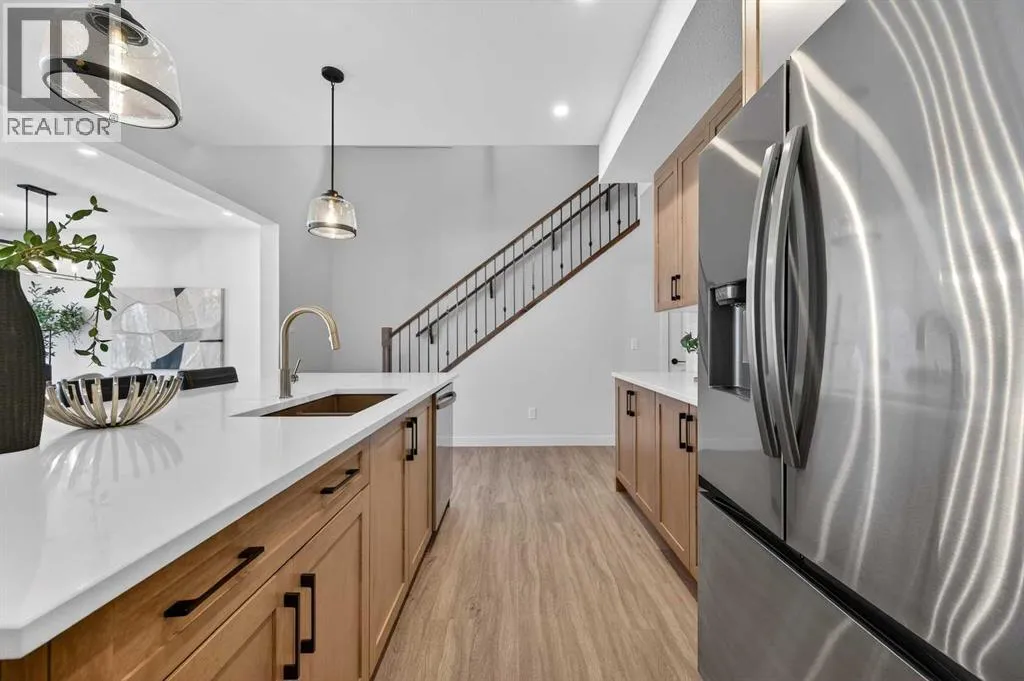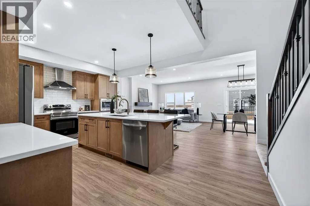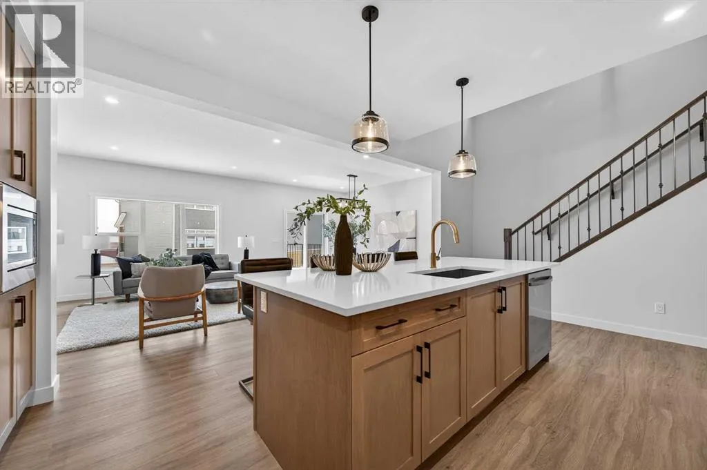 Welcome to 36 Lewiston Common, a beautifully designed 2220 sq ft home by Genesis Builders Group. From the moment you step inside, youâll be captivated by the soaring open-to-above ceilings and the bright, expansive open-concept main floor. A convenient mudroom off the garage keeps life organized, while the heart of the home, the kitchen, is designed for entertaining. Featuring beautiful cabinetry, quartz countertops, a spacious island and sleek stainless steel appliances. The dining area flows seamlessly into the inviting living room, with a striking focal-point fireplace. A stunning spindle staircase leads you upstairs to a central bonus room offering perfect separation from the primary suite and additional bedrooms. The primary suite is a true retreat, spacious enough for a king-size bedroom set, complete with a large walk-in closet and a spa-like ensuite featuring dual sinks, a luxurious soaker tub, and an oversized shower. Two additional bedrooms, each with a walk-in closet, are complemented by a dedicated full bathroom. A convenient second-floor laundry room makes daily chores effortless. The unfinished basement has its own separate entrance and 9-foot ceilings. It is a blank canvas, waiting for your design ideas. You choose how you want to live when you live in Lewiston, a community in northeast Calgary. Connected by ample pathways, lush with green spaces, and refreshed by a naturalized stream corridor, Lewiston is an ideal place to settle into and call home. (id:27476)