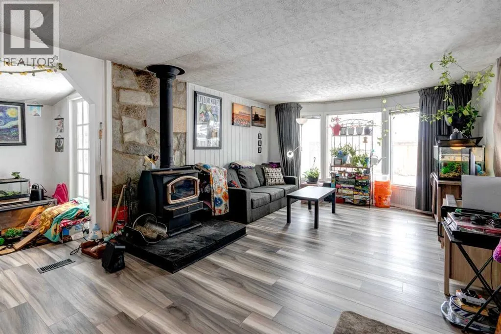 Home Sweet Home! Welcome to your little piece of paradise! Your new home is located on a quiet street with no one behind you and adjacent to a park out front. This lovingly well-maintained home is situated on a rare ridge with the living room situated at the back affording an east view over the greenspace and ridge so you can Enjoy watching the sunrise views!. Perfect for first-time buyers, downsizers, or investors. There is charming curb appeal, a convenient carport, and a large covered side deck. This open concept home offers a spacious Kitchen (with island, subway tile backsplash, sink that overlooks the side yard), Dining Room, Office/Flex area (2 large windows) and massive Living room (with sunny bay window, cozy wood-burning stove fireplace). Around the corner is a convenient laundry area with cabinets for additional storage and an updated 4pc bath (newer fixtures and vanity). There are 2 generous sized bedrooms. The jewel of this home is the lovely backyard with no neighbours behind making your yard very private. You'll also enjoy easy access to Stoney Trail and Deerfoot Trail making you close to the airport and downtown. You are also close to all amenities like shopping, schools, recreation centre and Nose Creek walking paths. There is also a large greenspace with a playground across the street! Your car will be well protected from the weather with the enclosed carport attached to the home. Recent Updates include a New furnace (2026), Updated plumbing & electrical (2025), new Hot water tank (2022), New roof (shingled in 2020), New exterior doors (2025), New LVP flooring (2025) and Fresh paint (2025). Unique features that you will love include the Carport, wood stove, umbrella clothesline, Sizable, fully fenced yard for maximum privacy, Shed, lots of perennials and fruit trees and the large covered deck. Investors this Home is currently rented for $1800/month and tenants are willing to stay on. Schedule your showing today! (id:27476)