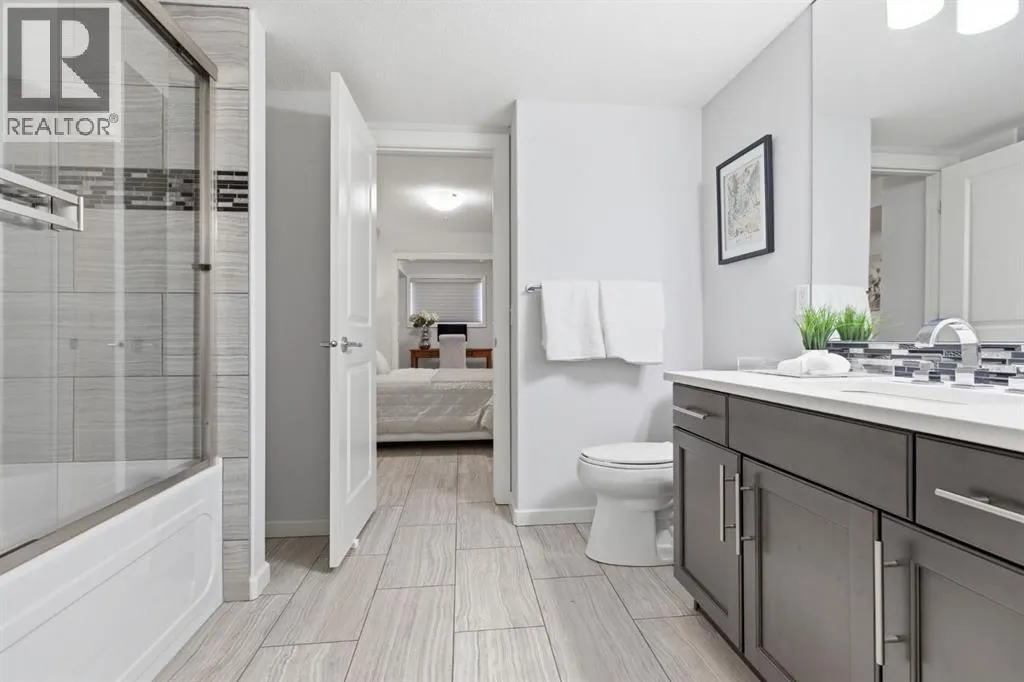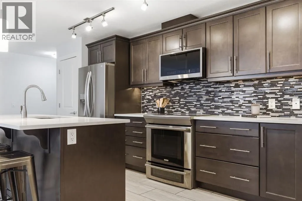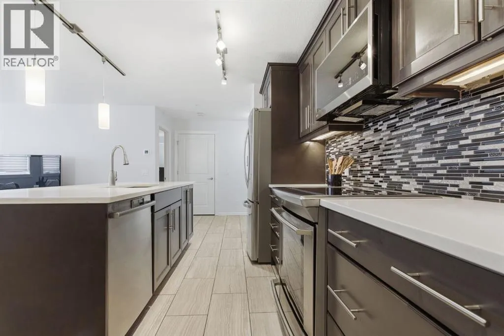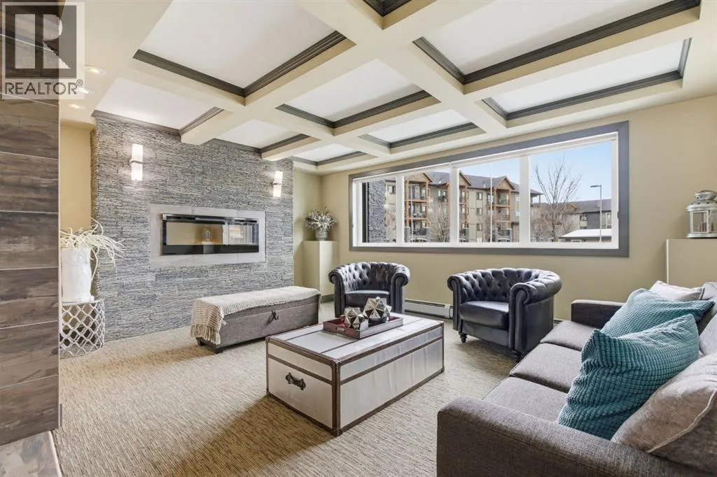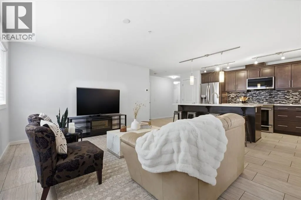 Welcome to this beautifully maintained 2-bedroom, 2-bathroom plus den corner unit in a highly desirable 18+ building in Kincora. Offering 1,153 sq. ft. of bright, open-concept living space, this home is filled with natural light from expansive corner windows and offers a private setting with no immediate neighbours.The modern kitchen features quartz countertops, stainless steel appliances, a pantry, and additional custom-built cabinetry for extra storage, along with custom window coverings. Additional highlights include two titled parking stalls, two storage lockers, and a private balcony with a gas BBQ hookupâperfect for summer evenings. Enjoy year-round comfort with air conditioning.Ideally located just minutes from Beacon Hill Shopping Centre with easy access to Costco, Walmart, restaurants, and major amenities. A perfect blend of comfort, convenience, and low-maintenance living. (id:27476)