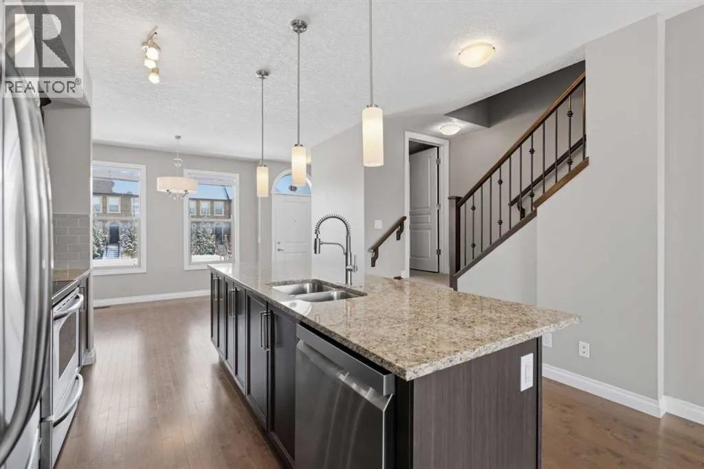 *** NO CONDO FEES *** DOUBLE DETACHED GARAGE *** FULLY FINISHED BASEMENT *** IMMEDIATE POSSESSION *** STEPS TO THE PARK *** Move-in ready and available for immediate possession. Located in the highly desirable Sage Hill community, this spacious 2-storey townhouse offers over 1,700 sq ft of developed living space with major updates already done: fresh paint, new carpet (2026), new roof (2025), and a new dishwasher (2025).The main floor features hardwood flooring, a bright open layout, and a well-appointed kitchen with stainless steel appliances, granite countertops, and a large island â ideal for everyday living and entertaining.Upstairs includes three comfortable bedrooms, while the professionally developed basement adds a fourth bedroom plus a versatile flex room perfect for a home office, gym, or guest space. The rare high basement ceilings create an open, comfortable feel that sets this home apart.Enjoy summer evenings in the southwest-facing backyard with a large deck. Located near Stoney Trail, this home offers excellent access to major routes, nearby shopping at Sage Hill Crossing, and a quiet suburban setting with parks and green spaces just steps away. (id:27476)