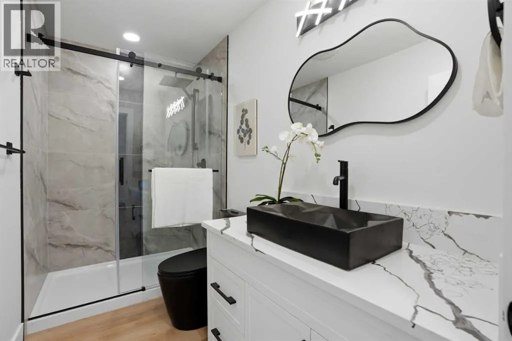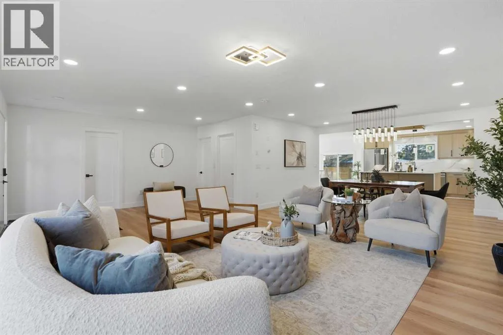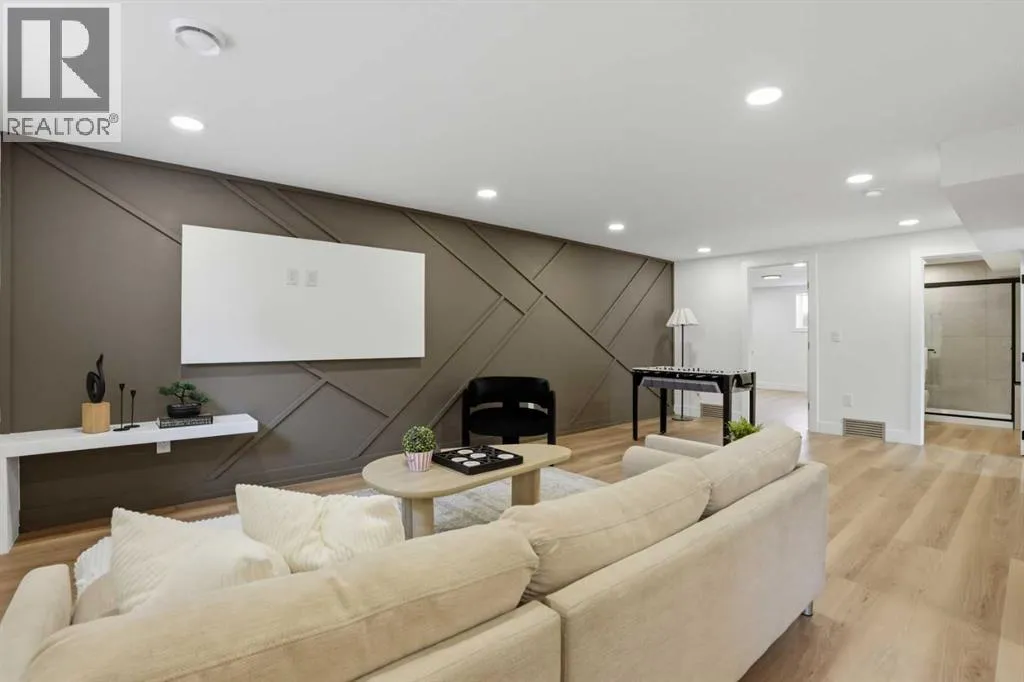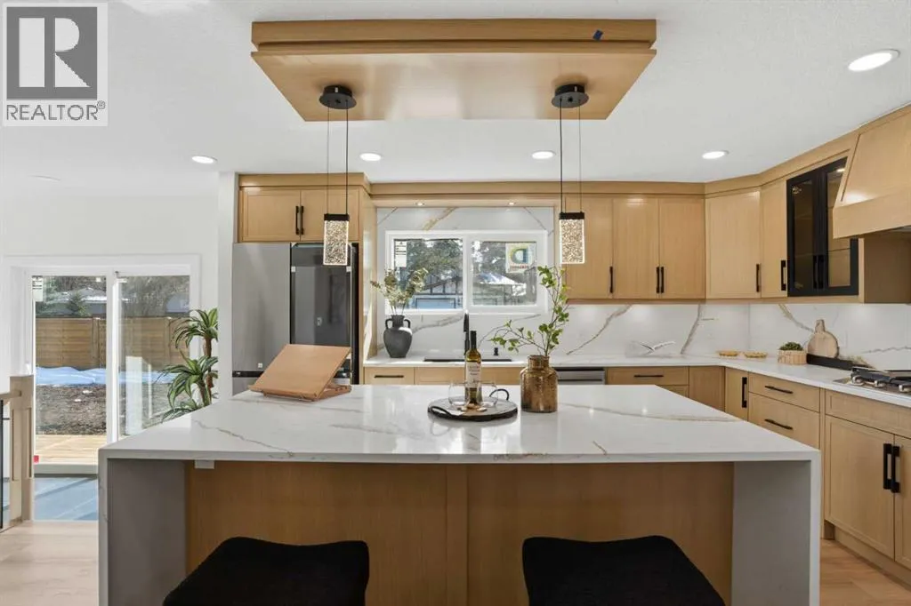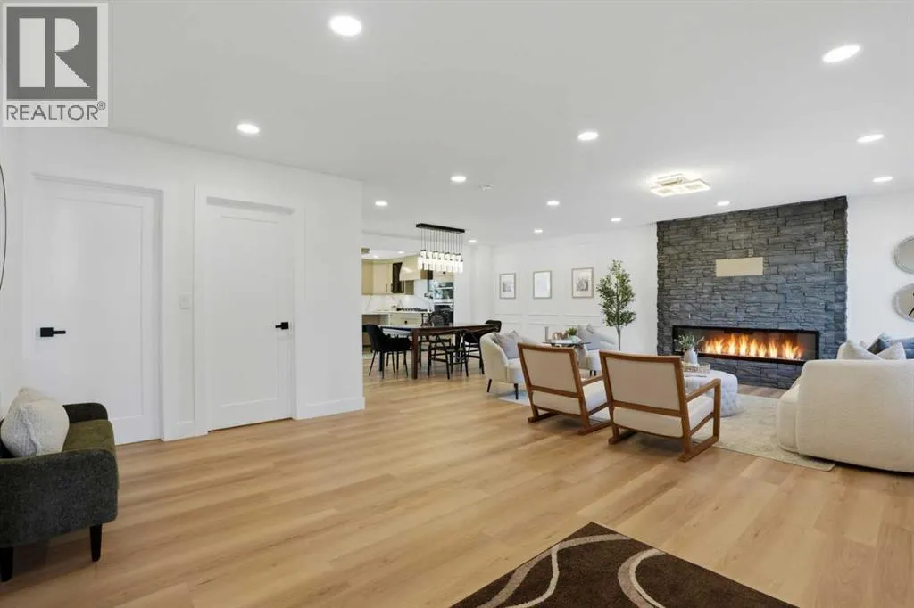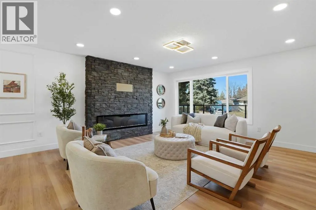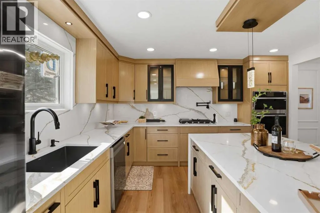 Welcome to this extensively renovated bungalow in the heart of Haysboro, offering over 2,700 sq.ft. of beautifully developed living space. This home has been completely redone down to the studs, showcasing exceptional craftsmanship, and a seamless blend of modern luxury and timeless design.Situated on a quiet, family-friendly street, this property offers unmatched convenience â just minutes from top-rated schools, expansive green spaces, scenic pathways along the Elbow River, and the historic Heritage Park Historical Village. Enjoy premier shopping and dining at Chinook Centre, all just steps away.The main level showcases a gourmet kitchen package featuring high-end cabinetry, quartz countertops, and a premium appliance package. The ENERGY STAR® certified refrigerator includes an internal water dispenser and advanced AI Family Hub+ technology, while the gas stove can be conveniently controlled via smartphone, bringing smart living to your fingertips.The primary bedroom retreat features his & hers closets and a beautifully finished 4-piece ensuite with full tile work extending across both floors and walls, creating a spa-like, luxurious experience. The second bedroom includes custom built-in shelving and a stunning 8-foot window, while the third bedroom offers flexibility as a home office, enhanced by large south-facing windows that flood the space with natural light.Elegant wood moulding in the dining area adds a rich, upscale touch, while the living room is anchored by a full-height stone feature wall with an electric fireplace, creating a warm yet sophisticated atmosphere.The fully developed basement expands your living space with a massive recreation area featuring a stylish accent wall, perfect for entertaining. A wet bar adds both function and flair, while two additional bedrooms provide versatility â one with a walk-in closet and the other with built-in shelving, ideal for guests or extended family.Extensive upgrades include a new furnace, tankless hot w ater system, new electrical wiring, new plumbing, new windows, and new insulation, offering complete peace of mind â truly a turnkey home with everything redone.Step outside to a sun-filled south-facing backyard offering over 2,000 sq.ft. of outdoor space â a rare and highly desirable feature that ensures all-day sunlight, perfect for entertaining, gardening, or creating your dream outdoor oasis. The backyard deck is equipped with a BBQ gas line, ideal for hosting gatherings. At the front, enjoy a stunning 25 ft x 10 ft elevated deck with sleek glass railing, adding both curb appeal and a luxurious outdoor living experience.Completing this exceptional home is an attached oversized garage, uniquely positioned on the right side of the home, enhancing both functionality and curb appeal while giving the property a more estate-style, upscale presence.A rare offering that perfectly blends luxury, location, and lifestyle â this is Hayboro living at its finest. (id:27476)