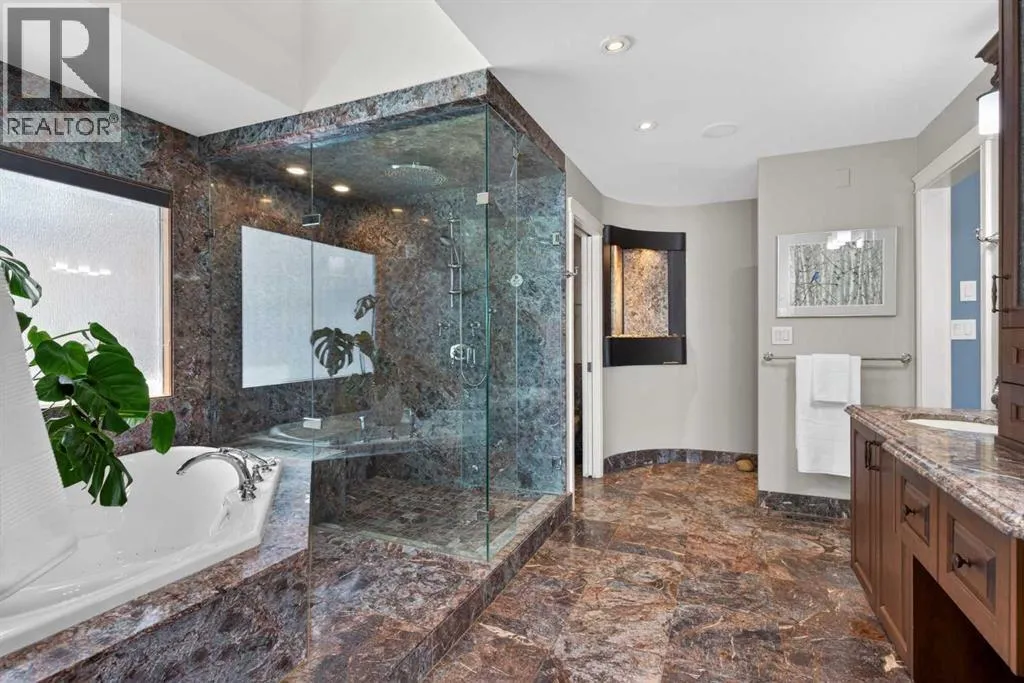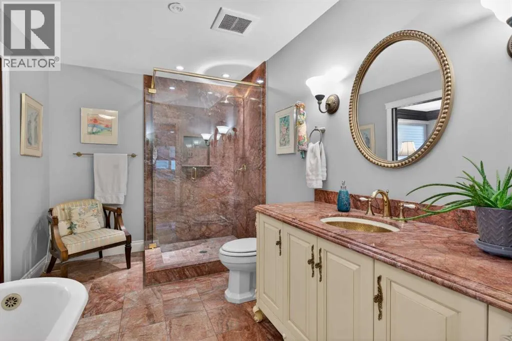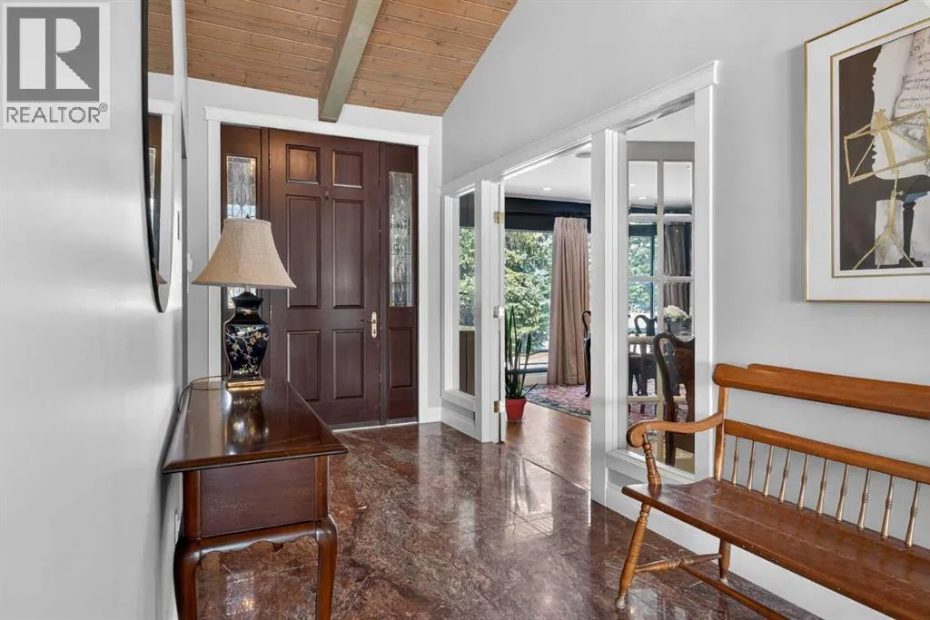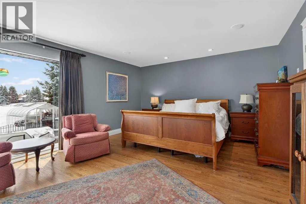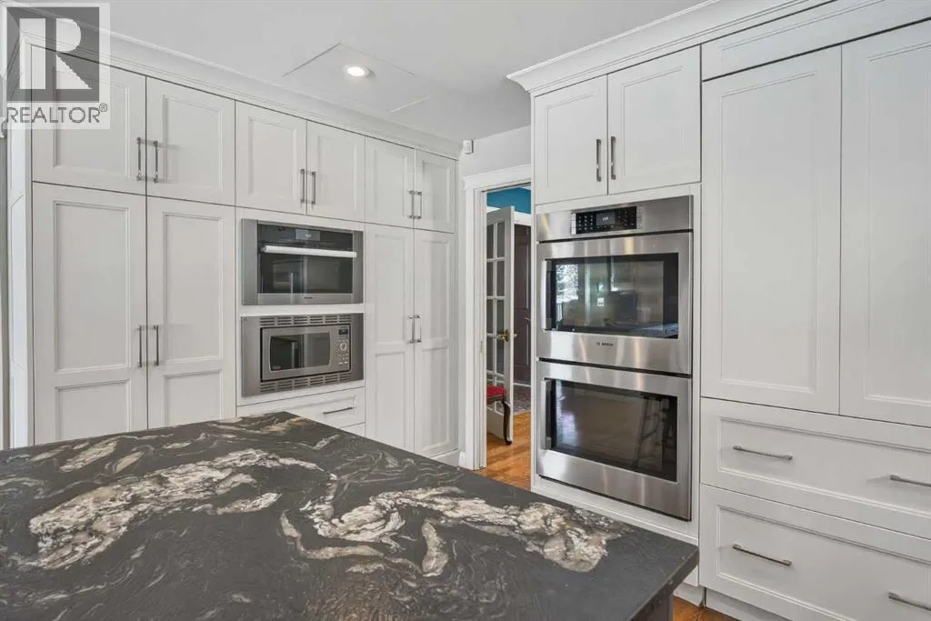 Welcome home! Step inside to a spacious entryway where youâre immediately greeted by heated Nova Scotia marble, soaring vaulted pine ceilings, and site-finished oak hardwood floors that lead you into the inviting and amazing living room with large picturesque windows that showcase beautiful views of the backyard and lake.The fully renovated kitchen is truly stunning and designed to impress. At its heart is a large central island, all counters are leather-finished granite countertops. Youâll find an abundance of gleaming white cabinetry with under-cabinet lighting and soft-close doors, along with high-end stainless steel appliances including three ovensâone being a steam ovenâan induction cooktop with a side gas hob, a hidden dishwasher and a Sub-Zero fridge. A built-in computer nook adds convenience, and the hardwood flooring continues seamlessly throughout the home.Adjacent to the kitchen, the formal dining room overlooks the front yard and includes a built-in buffet, while the sun room offers a cozy gas fireplace and easy access to the outdoorsâperfect for enjoying lake access or summer BBQs.The primary bedroom is an absolute retreat, offering ample space for a king-sized suite, private access to the lake, and another gas fireplace. The custom walk-in closet provides exceptional storage, and the luxurious seven-piece ensuite continues the heated marble flooring and features a jetted tub, dual sinks, steam shower, as well as a bidet and urinal.The main floor also includes two additional generously sized bedrooms and a unique study complete with a minibar and a hidden bookshelf door. A four-piece bathroom with a classic clawfoot tub completes this level.Downstairs, the finished lower level offers a spacious T-shaped recreation room with a wood-burning fireplace, a wine room with a Sub-Zero wine fridge, a fourth bedroom, a cold room, a three-piece bathroom, a workshop area, and plenty of storage.The standout feature of this home is the south-facing backya rd. Designed for both relaxation and recreation, it includes a large deck, hot tub, greenhouse, and plenty of green space for kids or pets. Your private dock lets you fully enjoy lake living year-roundâwhether itâs swimming, skating, fishing, or boating.Additional highlights include a triple attached garage, updated windows, solar panels to help reduce energy costs, durable concrete shingles, a built-in Nuvo speaker system throughout, air conditioning, an irrigation system, all in a location that is quiet, but has easy access to schools, and shopping, and much more.Donât miss your chanceâcall today and move in just in time to enjoy the lake all summer long! (id:27476)