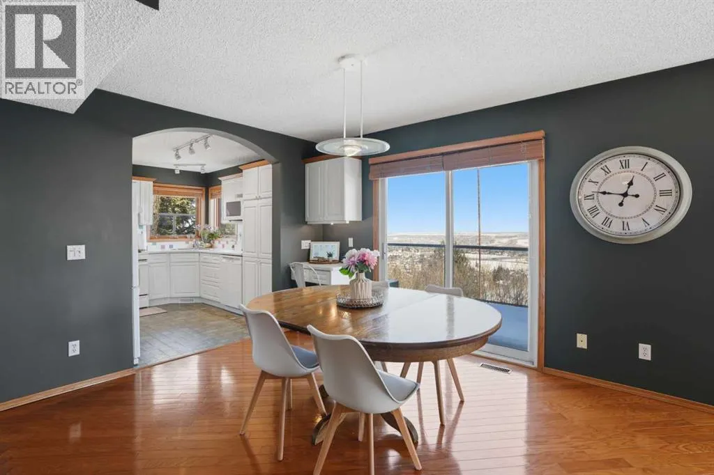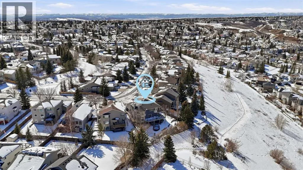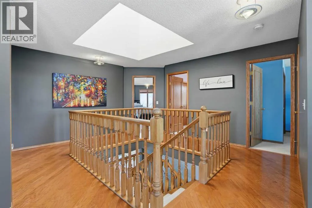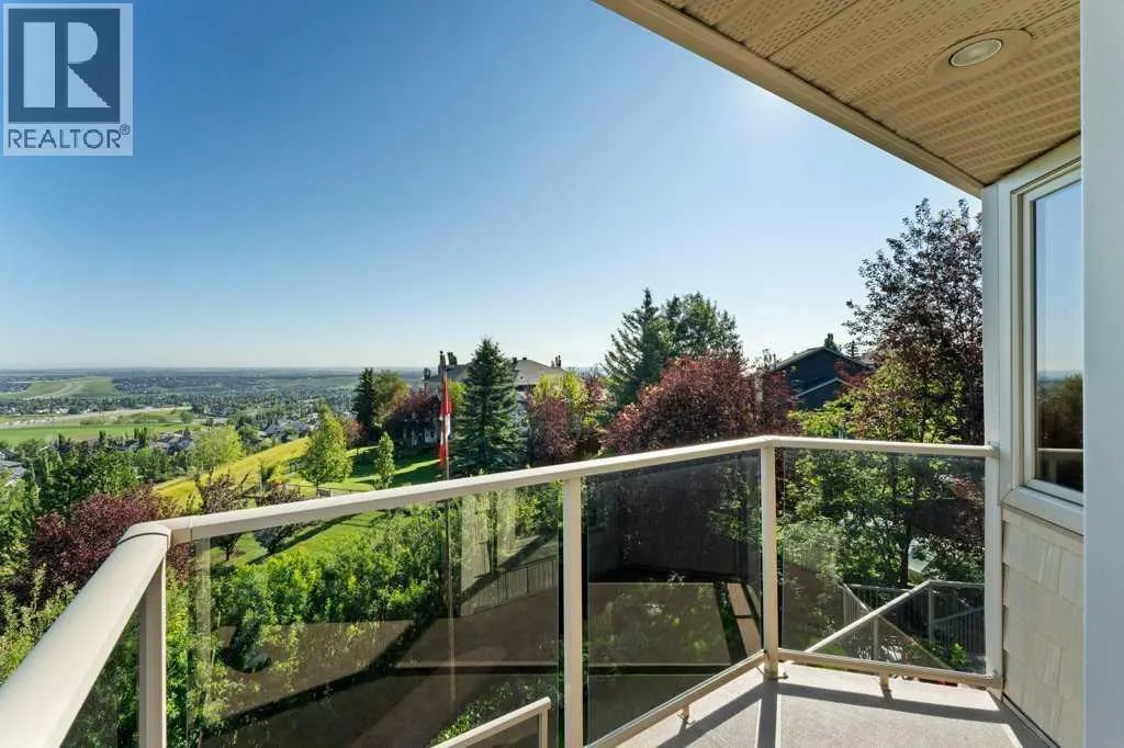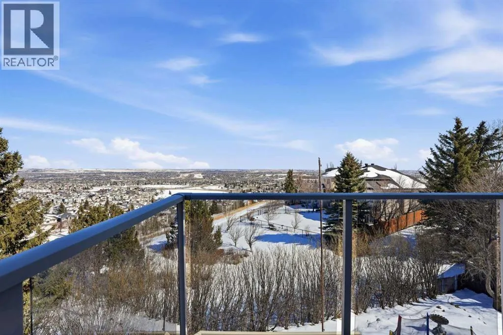 Welcome to this one-of-a-kind, custom-built home situated on a massive pie-shaped lot in Calgaryâs sought-after Edgemont community. Backing onto lush green space with breathtaking, far-reaching views, this is your own private oasis. Enjoy a backyard surrounded by nature, a wraparound dura deck, and a charming Juliette balconyâoffering the best of all worlds! Step inside and feel instantly at home, greeted by soaring ceilings and an abundance of natural light and beautiful hardwood floors. The main floor features a spacious living room, a formal dining area with a pass-through to the bright white kitchen, complete with ample storage, a gas stove, and a corner sink perfectly positioned to take in the view. Off the kitchen, youâll find a cozy breakfast nook and a welcoming family room with a corner gas fireplace, more sunlight, and sweeping city views. Also on the main level are a generous office space, a laundry room with sink, and a full 3-piece bathroom. Head upstairs via the stunning open-tread staircase beneath a massive skylight. Here, youâll discover a 3-piece bathroom, two well-sized bedrooms, the primary suite with a 4-piece ensuite featuring heated floors and a walk-in closet, plus an extra-large fourth bedroom with its own walk-in closet and access to the Juliette balcony overlooking the city. The basement boasts two large bedrooms, a 3-piece bathroom, a computer or exercise area, a spacious rec room, and more storage than youâll know what to do with. Step outside to your private retreat, where thereâs plenty of space to run, play, and enjoy quality family time. Additional features include LED exterior lighting, central air conditioning, and two furnaces. Do not let this opportunity pass you by, book your viewing TODAY! (id:27476)