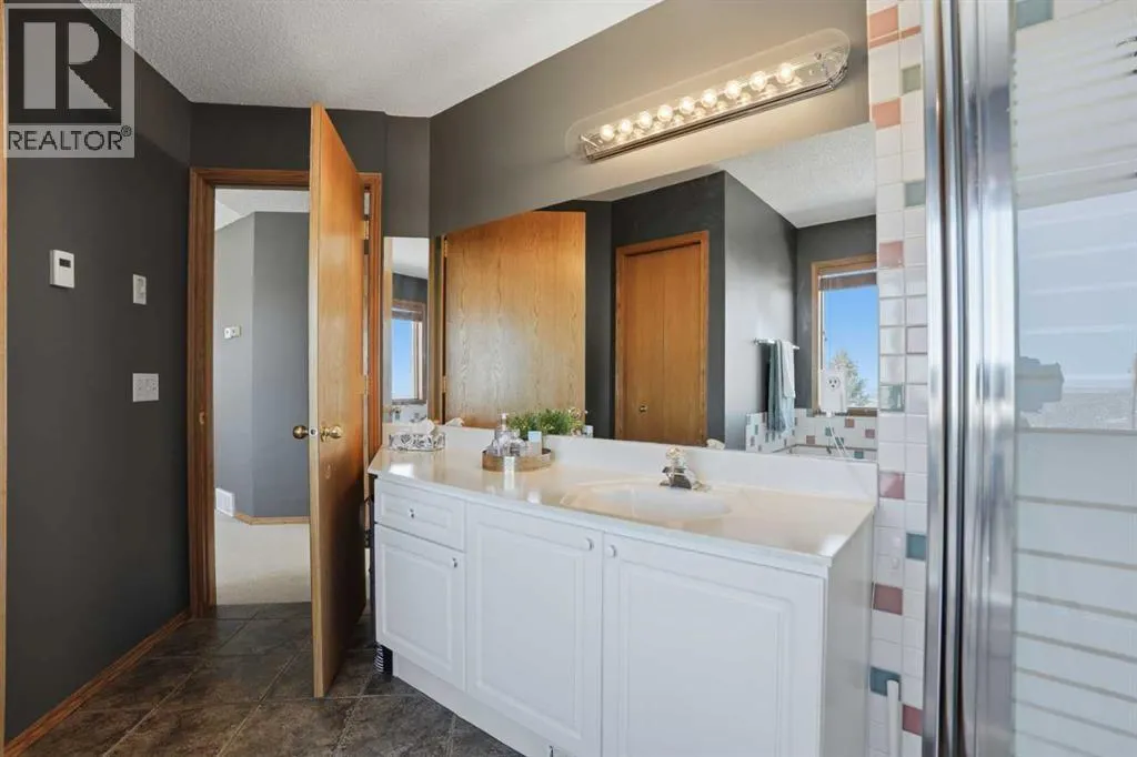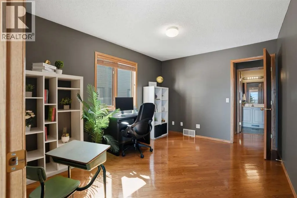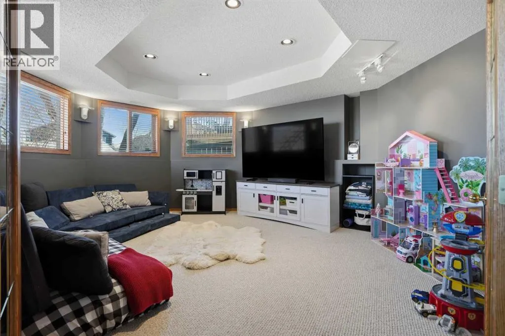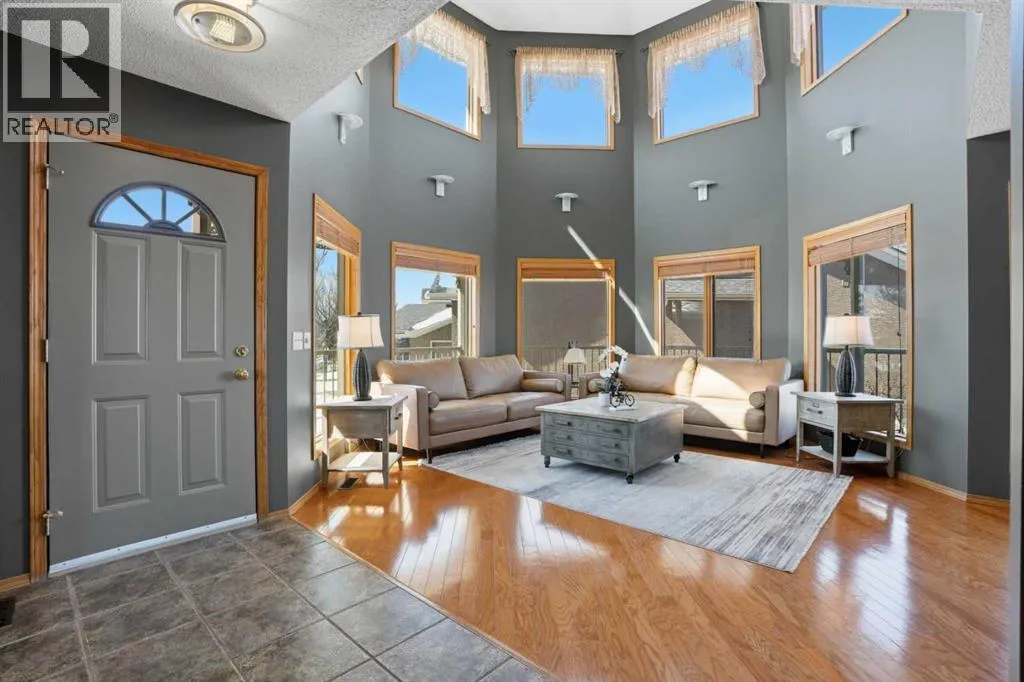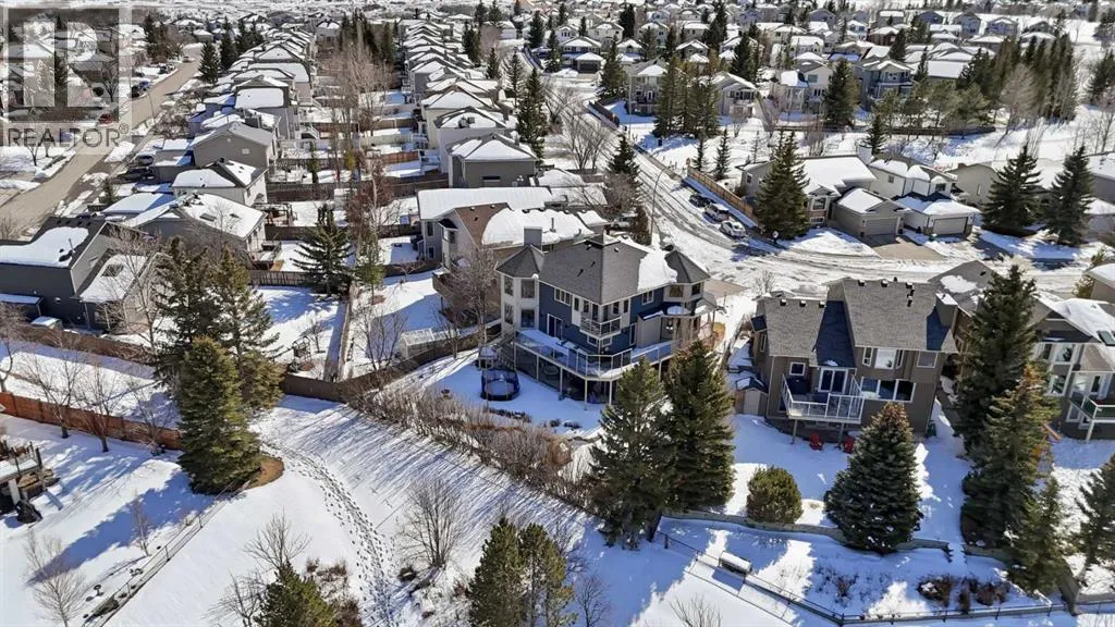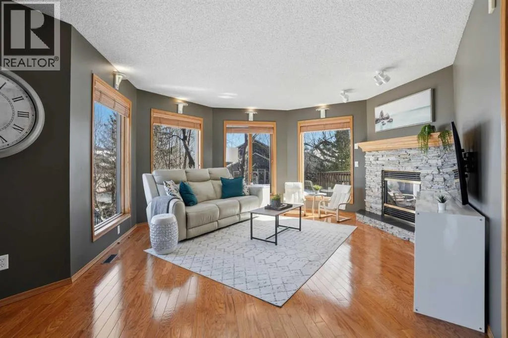 Welcome to this one-of-a-kind, custom-built home situated on a massive pie-shaped lot in Calgaryâs sought-after Edgemont community. Backing onto lush green space with breathtaking, far-reaching views, this is your own private oasis. Enjoy a backyard surrounded by nature, a wraparound dura deck, and a charming Juliette balconyâoffering the best of all worlds! Step inside and feel instantly at home, greeted by soaring ceilings and an abundance of natural light and beautiful hardwood floors. The main floor features a spacious living room, a formal dining area with a pass-through to the bright white kitchen, complete with ample storage, a gas stove, and a corner sink perfectly positioned to take in the view. Off the kitchen, youâll find a cozy breakfast nook and a welcoming family room with a corner gas fireplace, more sunlight, and sweeping city views. Also on the main level are a generous office space, a laundry room with sink, and a full 3-piece bathroom. Head upstairs via the stunning open-tread staircase beneath a massive skylight. Here, youâll discover a 3-piece bathroom, two well-sized bedrooms, the primary suite with a 4-piece ensuite featuring heated floors and a walk-in closet, plus an extra-large fourth bedroom with its own walk-in closet and access to the Juliette balcony overlooking the city. The basement boasts two large bedrooms, a 3-piece bathroom, a computer or exercise area, a spacious rec room, and more storage than youâll know what to do with. Step outside to your private retreat, where thereâs plenty of space to run, play, and enjoy quality family time. Additional features include LED exterior lighting, central air conditioning, and two furnaces. Do not let this opportunity pass you by, book your viewing TODAY! (id:27476)