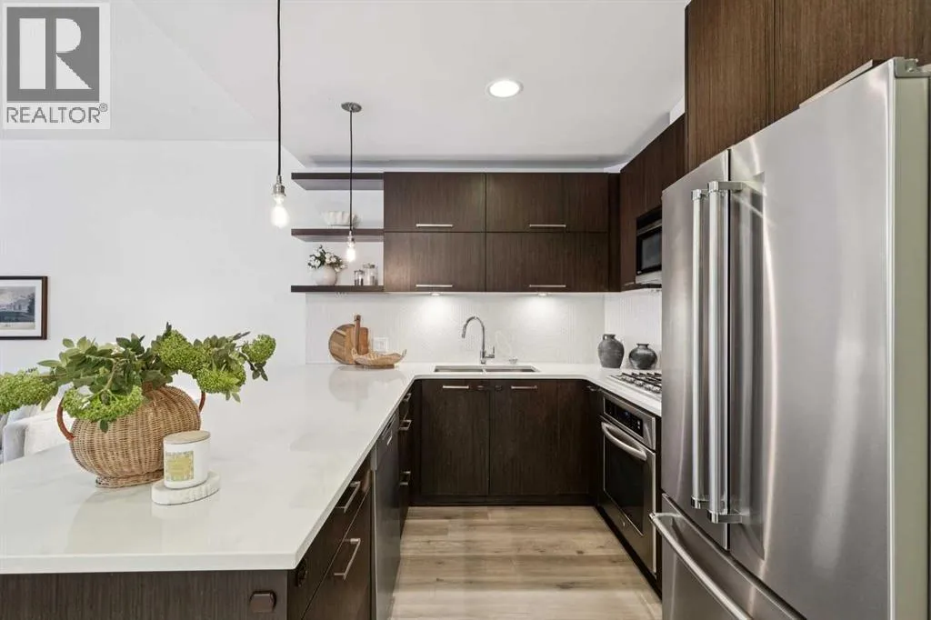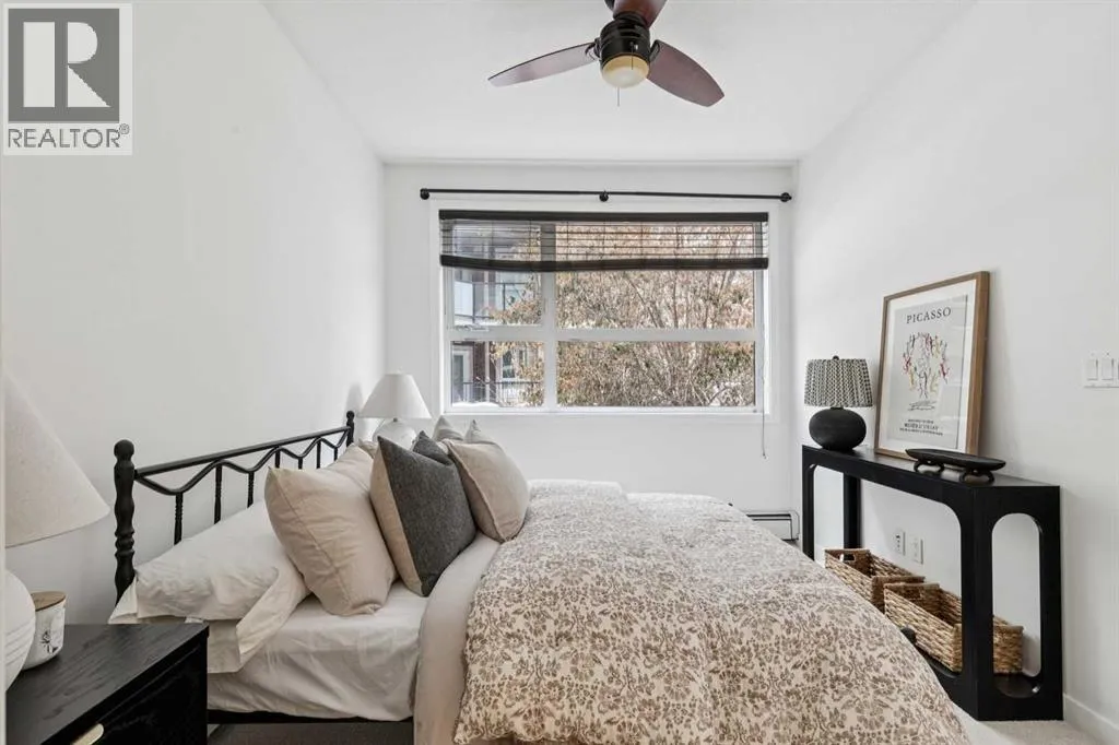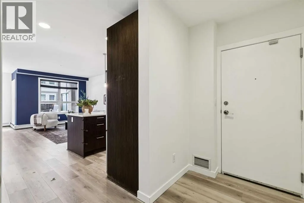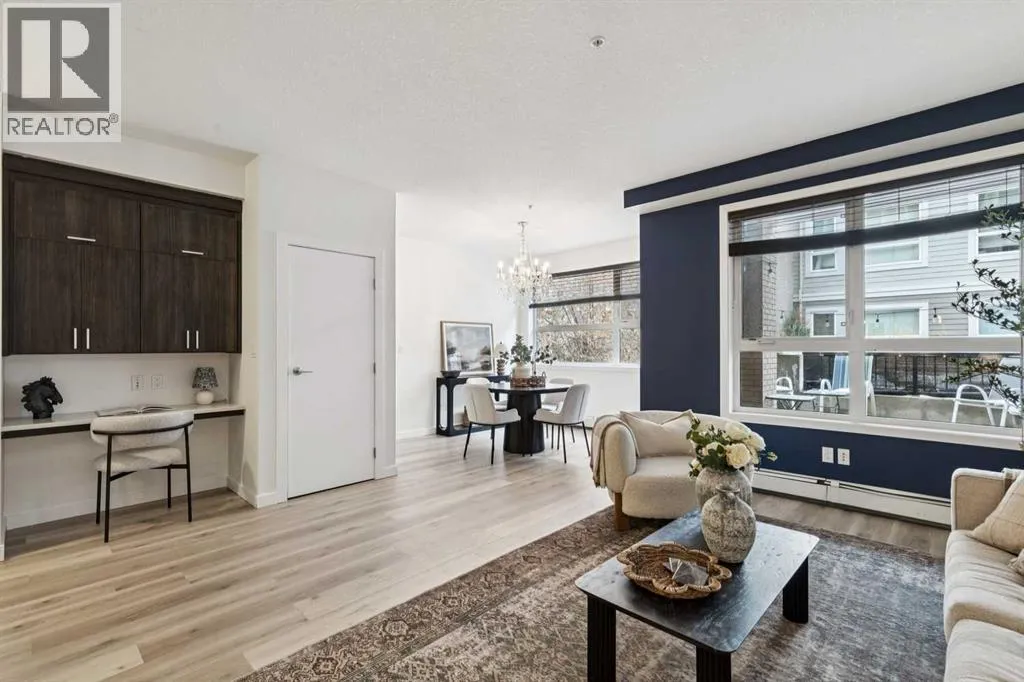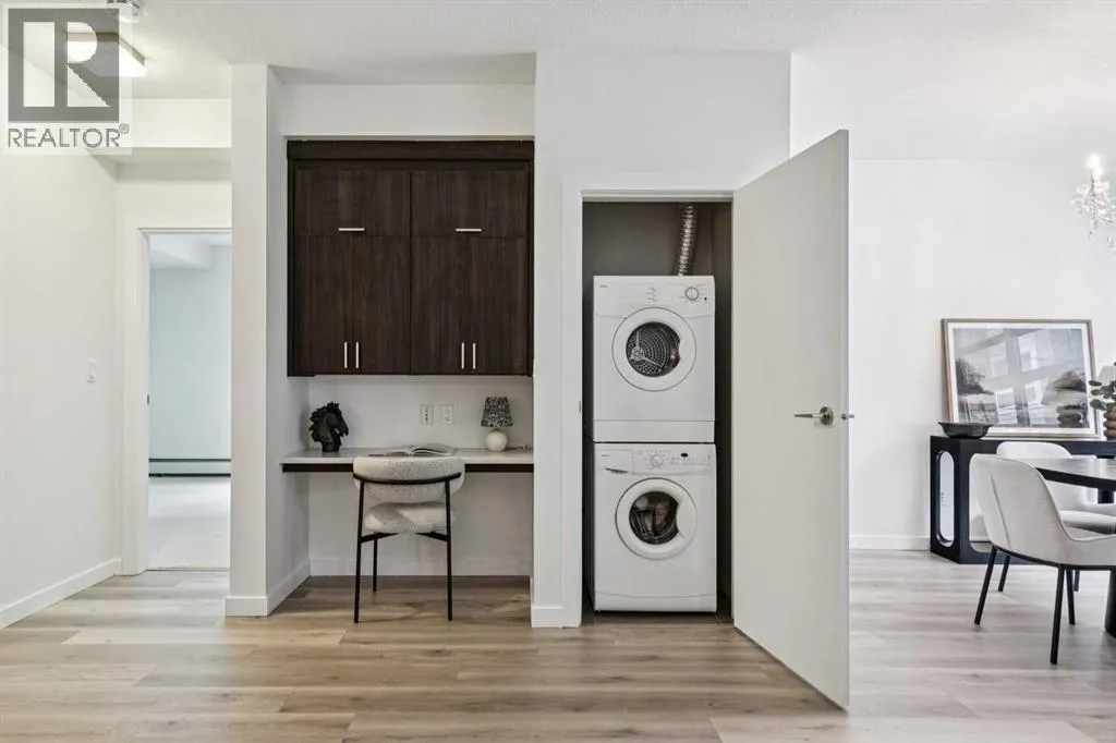 Welcome to this spacious ground-floor condominium in the established community of Renfrew, offering over 900 square feet of well-planned living space. The unit has been refreshed with new paint and brand new flooring throughout, including luxury vinyl plank in the main living areas and plush carpet in both bedrooms. The kitchen features quartz countertops and a high-end appliance package, including an updated refrigerator and dishwasher. The in-suite laundry features a brand new washer and dryer. A custom built-in desk with upper cabinets creates a practical workspace while adding additional storage. The layout also includes a large in-unit storage room, ideal for keeping seasonal items and everyday essentials organized. As a ground-floor unit, the patio is generously sized and opens directly onto the buildingâs courtyard, offering easy outdoor access and a great option for pet owners. Two titled parking stalls are positioned side by side, adding everyday convenience. Residents have access to a fitness room along with underground visitor parking. Renfrew is known for its elevated setting and quick access to the downtown core. From here, you are close to the restaurants and amenities along Edmonton Trail and within walking distance to Bridgeland, offering a wide variety of local shops, cafes, and dining options. This well-maintained unit in a convenient inner-city location is ready for its next owner to move in and enjoy. (id:27476)