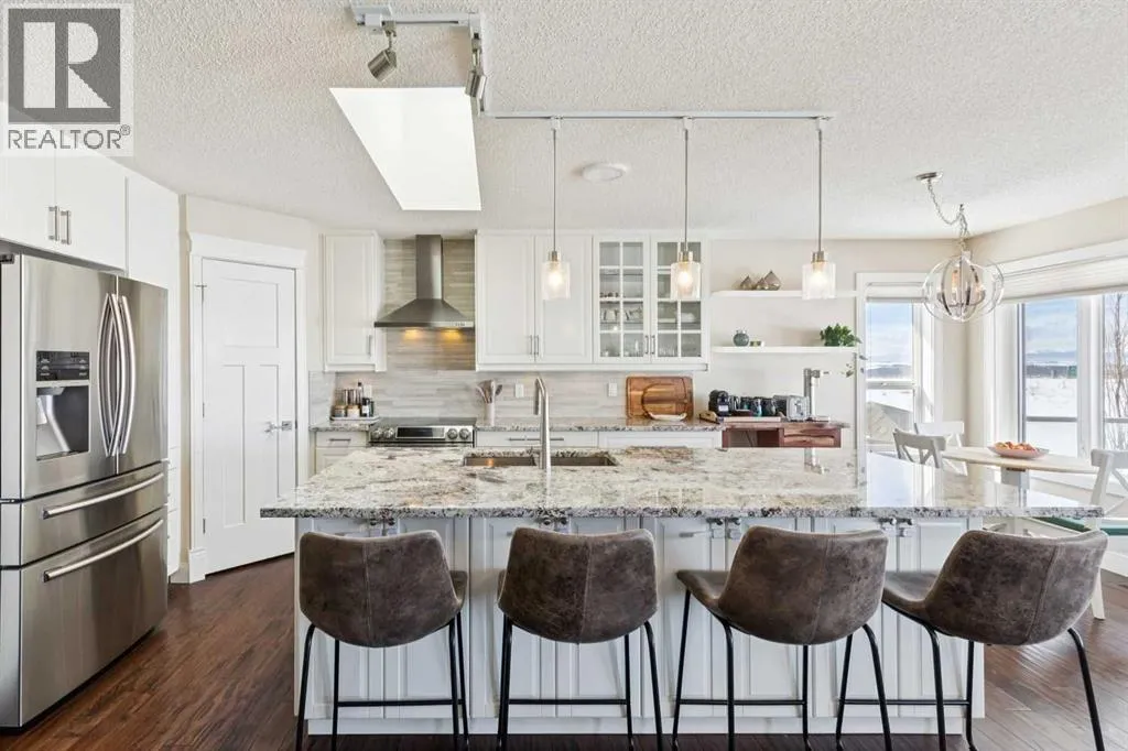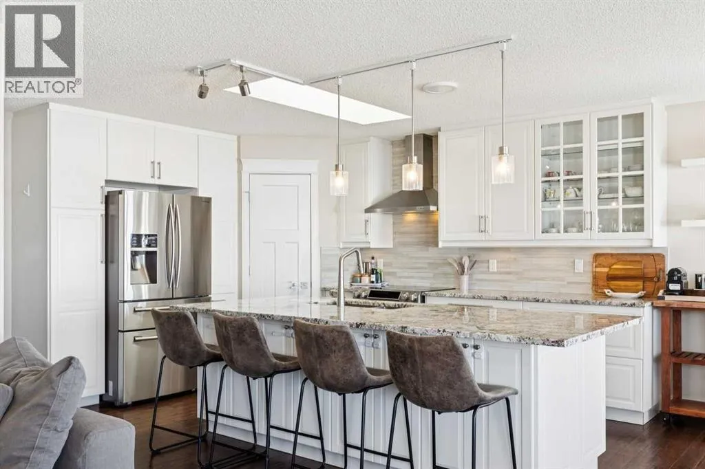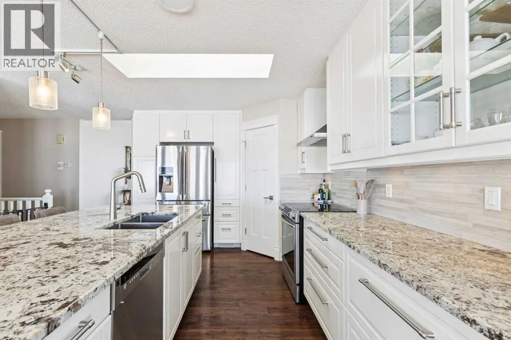 BEAUTIFUL MOUNTAIN VIEWS from this large, UPDATED WALKOUT BUNGALOW on a HUGE OVERSIZED PIE LOT in the desirable community of Scenic Acres!Step inside to a spacious FORMAL LIVING AND DINING ROOM, perfect for entertaining, highlighted by VAULTED CEILINGS and an abundance of natural light. The thoughtfully designed main floor features two living areas, including a rear family room that flows seamlessly into the fully renovated kitchen, where you can enjoy stunning mountain views right from your kitchen and living room windows.The kitchen showcases granite countertops, smooth white cabinetry, stainless steel appliances, a skylight, and large windows that fill the space with natural light. Step out onto the large balcony and take in the PANORAMIC MOUNTAIN VIEWS, perfect for relaxing or entertaining.The primary bedroom offers breathtaking MOUNTAIN VIEWS and features a beautifully updated ensuite bath. The main level also includes a spacious second bedroom, a beautifully renovated full bathroom, a private office with skylight, plus a convenient laundry and mud room area.The NEWLY RENOVATED WALKOUT BASEMENT offers exceptional additional living space, including a large recreation room, bar with refrigerator and sink, two generously sized bedrooms, a fitness area, and a stylish full bathroomâperfect for guests. Even with all this finished space, there is still ample storage. With almost 3,400 SQUARE FEET OF DEVELOPED, USABLE SPACE, this home offers incredible flexibility for families of all sizes.Additional updates include a recent roof, two newer furnaces, a new hot water tank, central A/C, vacuum system, fresh paint, updated baseboards and doors, and BIRCH HARDWOOD flooring on the main level. The double attached garage offers ample storage and includes a conveniently installed EV outlet.Nestled on a friendly cul-de-sac, this home offers access to walking paths and is conveniently close to schools, transportation, shopping, and amenities. Added convenience includ es timed underground sprinklers, plus a private backyard complete with a shed and gazebo. Outside, youâll truly appreciate the privacy of having no neighbors behind, along with a massive fenced backyard, perfect for enjoying daily sunsets over the mountains. Book your private showing today! (id:27476)