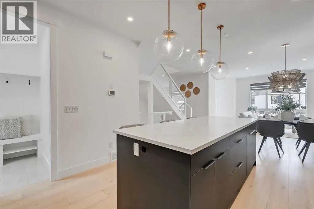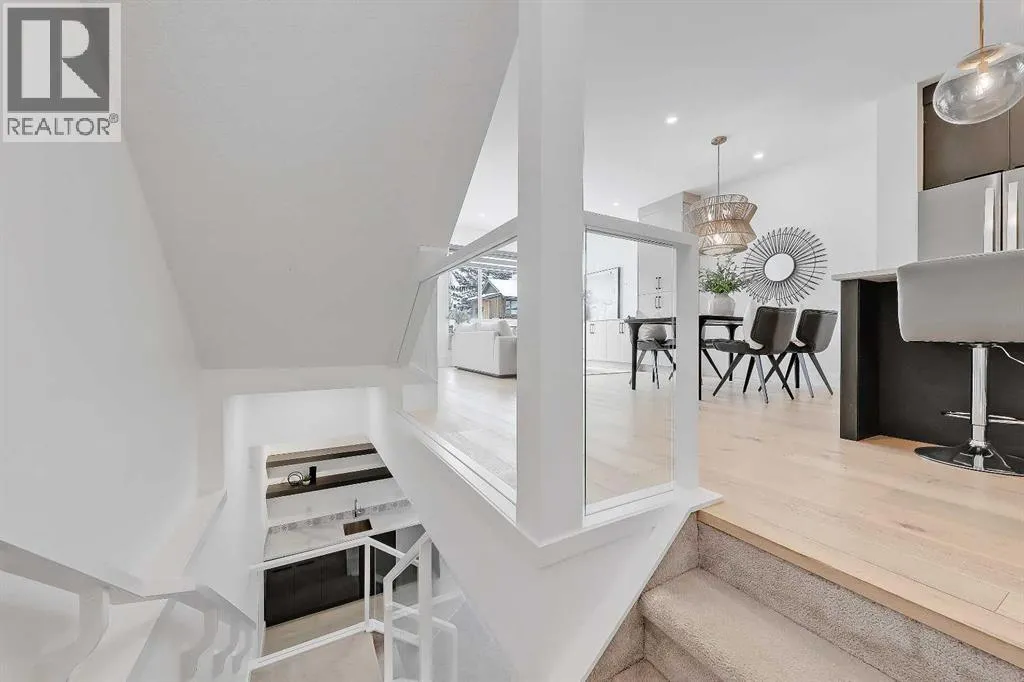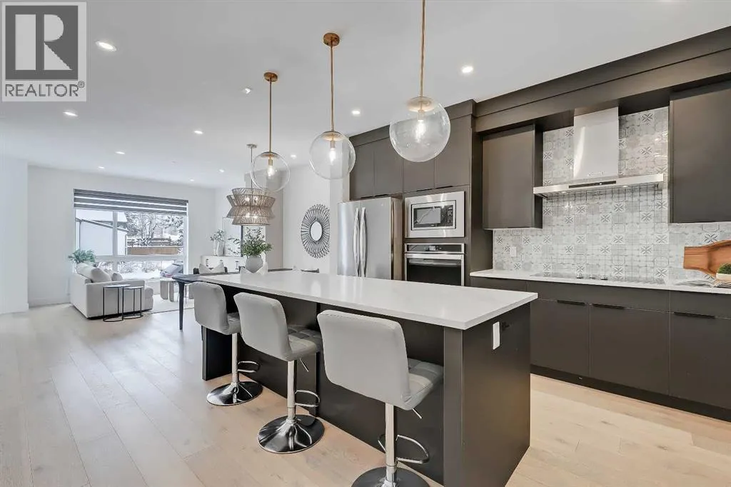 Clean lines, thoughtful updates, and a layout that truly delivers, this well-maintained inner-city home in sought-after West Hillhurst offers a refined take on everyday living across all three levels. Recent enhancements include fresh designer paint, updated lighting, and a new custom-built entertainment unit, while the timeless hardwood flooring adds warmth and character to the space.Step inside to a bright, welcoming foyer that opens into a spacious living room. The proportions are ideal, open, comfortable, and effortlessly functional for both entertaining and everyday life. The newly added custom-built entertainment unit serves as a striking focal point, offering both style and practical storage, while large windows invite in natural light to create an inviting, airy atmosphere.At the rear of the home, the kitchen is thoughtfully designed for both function and flow. A generous island provides ample prep space, storage, and seating, perfect as a central gathering place. Clean-lined cabinetry and a practical layout keep everything within easy reach, while seamless access to the private backyard makes indoor-outdoor living feel natural, whether you're enjoying summer evenings outside or a quiet morning coffee.Upstairs, the primary suite feels elevated and serene, featuring vaulted ceilings that enhance the sense of space and light. A walk-in closet offers excellent storage, while the ensuite includes a double vanity and a spacious tiled shower with bench seating. A second bedroom and full bathroom complete the level, along with the added convenience of second-floor laundry, making everyday living that much easier.The fully developed basement adds another layer of versatility, featuring a spacious rec room with a stylish wet bar, perfect for entertaining or unwinding, along with an additional bedroom and full bathroom. Whether hosting guests, working from home, or creating a separate retreat, this level offers flexible, functional living. Mechanical is effici ently tucked away to maximize usable space.Additional highlights include AIR CONDITIONING, a PRIVATE BACKYARD, and a SINGLE DETACHED GARAGE, ensuring comfort and convenience throughout the year.Located in the highly desirable community of West Hillhurst, this home offers exceptional walkability. Youâre just minutes from the shops, restaurants, and cafés of Kensington, along with all the amenities and local shopping along 19 Street. Enjoy easy access to parks, river pathways, transit, and downtown, making it effortless to embrace a connected, inner-city lifestyle.A smart layout, thoughtful updates, and an unbeatable locationâthis is inner-city living at its best. (id:27476)