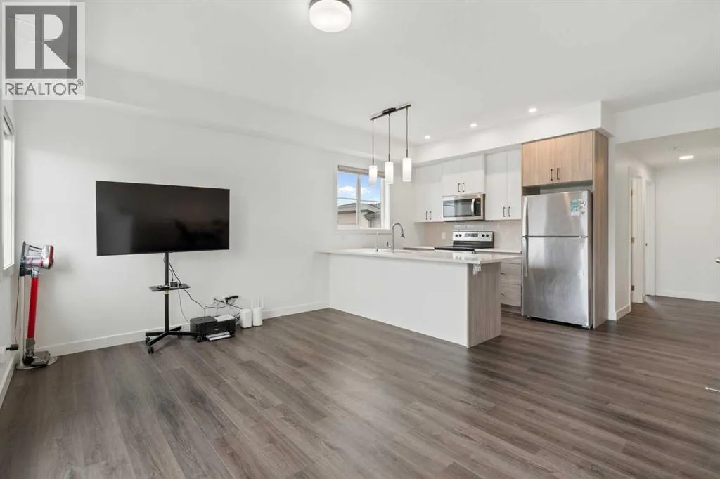 Welcome to this beautifully maintained top-floor corner unit in the highly sought-after community of Springbank Hill. This thoughtfully designed home offers a bright and functional layout, perfect for modern living. The unique top-floor design features a spacious, separate dining area rarely found in similar units, along with a versatile entry-level office/denâideal for working from home. Upstairs, the open-concept living area is filled with natural light and flows seamlessly to a large balcony with a gas hookup, perfect for outdoor entertaining. The upper level includes two spacious bedrooms, including a private primary retreat with a walk-in closet and ensuite, along with a second bedroom, full bathroom, and convenient in-suite laundry. Additional highlights include a private attached garage and gas BBQ line. Enjoy nearby shopping and dining at Aspen Landing Shopping Centre, plus close proximity to top schools such as Webber Academy, Calgary Academy, and Rundle College. Commuting is easy with quick access to Stoney Trail and the nearby 69 Street CTrain Station. Move-in ready and ideally located, this home is perfect for families, professionals, or investors. (id:27476)