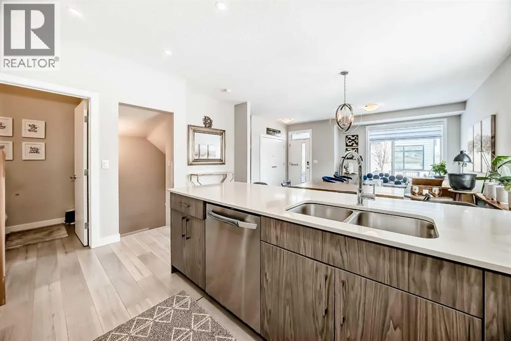 | CORNER LOT | 4 BEDS | 3.5 BATHS | PRIME LOCATION! | Welcome to this beautifully designed townhome in the community of Sage Meadows, offering a modern layout with the kind of functionality that makes everyday living simple. The main floor is bright and welcoming, with natural light flowing through the open living and dining areas. The kitchen features plenty of cabinetry, a practical layout, and newer appliances including a stove and dishwasher (2023), making it ideal for both daily living and hosting. A 2-piece bathroom completes this level. Upstairs features three bedrooms, including a spacious primary bedroom with tall vaulted ceilings, a walk-in closet, and a double vanity ensuite. You will also find the convenience of upper floor laundry with newer washer and dryer (2023). An additional 3-piece bathroom completes the upper floor. The fully finished basement adds extra flexibility with a fourth bedroom that includes its own walk-in closet, a full bathroom, and a versatile flex area that can easily adapt to your needs, whether it is a home office, gym, or entertaining space. Additional features include a tankless hot water system for added efficiency and convenience. Located close to schools, playgrounds, fitness centres, grocery stores, Creekside Shopping Centre and Beacon Hill Shopping Centre, you will have easy access to a wide range of shopping, dining, and everyday essentials. Outdoor spaces like Nose Hill Park are just under a 15-minute drive away, offering walking trails, biking paths, and open green space. Public transit is easily accessible, and there is convenient access to major roads including Stoney Trail and Shaganappi Trail. This home truly checks all the boxes, delivering comfort, flexibility, and convenience in one well-rounded package. Call your favourite agent for a showing today! (id:27476)