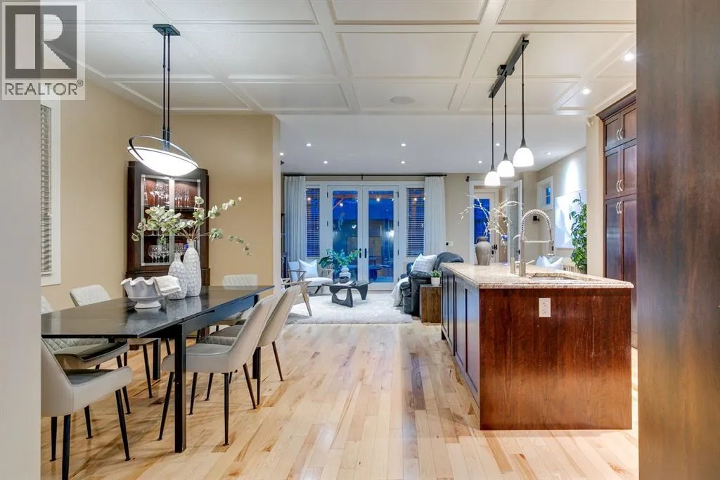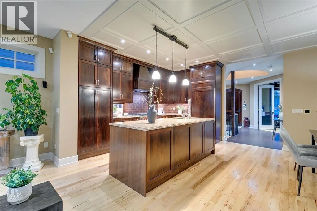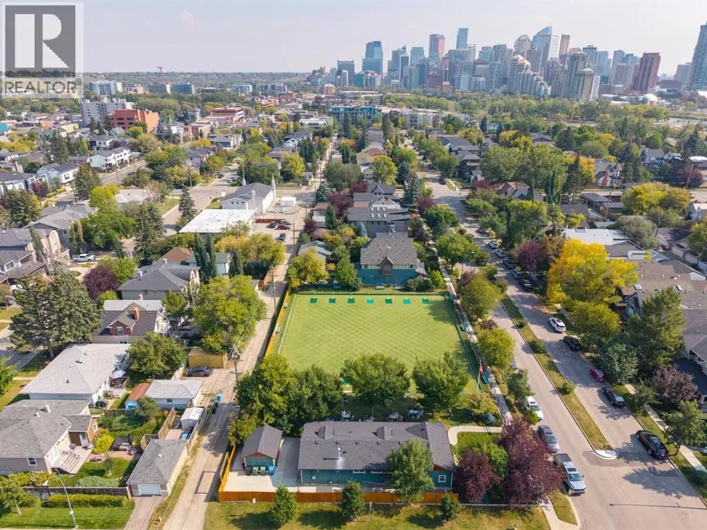 A true inner city gem in the heart of Hillhurst. This exceptional home offers a rare blend of timeless elegance, quality craftsmanship, and standout curb appeal, just steps from Kensington Village, Freshco, the Bow River pathways & downtown. From the moment you enter, this home makes an impression with its grand foyer featuring a curved wooden staircase, skylight, and expansive windows that fill the space with natural light, all enhanced by its charming location across from the lawn bowling park. Located just off the homes' entrance, you'll find a private office with French glass doors, coffered ceilings, and custom built-ins that overlook the peaceful green space, ideal for those working from home. The main living area is designed for both entertaining and daily living. Rich and timeless hardwood floors lead into a stunning chefâs kitchen featuring high end panelled appliances, including a Wolf 6 burner gas range, Sub-Zero refrigerator, custom built cabinetry, and a large island ideal for gatherings. The adjoining dining area offers an elegant space to host, while the living room centres around a beautiful stone fireplace and opens seamlessly to the sunny south facing backyard. An enclosed mudroom with built-ins offers both style and practicality, making it easy to come and go from the garage while keeping everything organized. Upstairs, youâll find three spacious bedrooms and a well appointed laundry room. The primary suite is a true retreat, complete with downtown views, a two way fireplace, and a spa-inspired ensuite featuring a deep soaker tub, steam shower, dual vanities, and a custom walk-in closet. The fully developed lower level adds even more versatility, with a cozy family room, games area, wet bar, and a beautifully designed wine room. A fourth bedroom, full bathroom, and dedicated home gym complete this level, offering space for guests, relaxation, and wellness. Outside, enjoy a private, south exposed yard with a pergola-covered deck, two gas lines for outdoor entertaining, and low-maintenance landscaping, all set against an exterior finished entirely in aggregate. Additional features include air conditioning, in-floor heating in the basement, foyer, and bathrooms, a gym-sized steam shower in the basement, a new washer and dryer, custom millwork, 9ft doors, vaulted ceilings, hidden safe room, and an oversized heated garage. Located in one of Calgaryâs most sought after communities, this home offers unmatched walkability and lifestyle, just moments from shops, restaurants, boutiques, schools, hospitals, and the river pathways. A rare opportunity to own a truly exceptional home in Hillhurst. (id:27476)