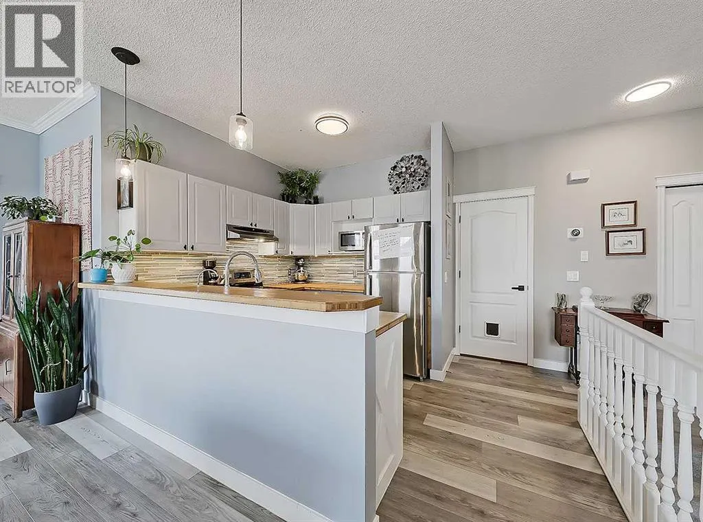 **OPEN HOUSE SUNDAY APRIL 12, 1:00-3:00pm** Welcome to Highcastle in Prestwick! A CORNER END-UNIT featuring 2 bedrooms, 2 bathrooms, 2 balconies and parking for 2 vehicles, this beautifully updated stacked townhouse offers the perfect balance of living space and affordability all in the very heart of sought-after McKenzie Towne. Take the stairs to this upper level unit and youâll be pleasantly surprised by the open concept layout, completely filled with natural light and soothing neutral colour tones. The kitchen invites with custom bamboo countertops, under cabinet lighting, tiled backsplash and a suite of stainless steel appliances, looking out to the living room. Here a cozy gas fireplace greets, framed by windows around it, the perfect place to kick back and relax along with access to the first balcony just to the left. To the right, a dedicated dining space offers enough room for large gatherings, and a second corner balcony offers even more outdoor space along with a dedicated gas line for a BBQ. Important to note how both bedrooms are situated on opposite ends of the townhouse giving the utmost privacy. The primary Bedroom is located furthest from the front entry, and thanks to its corner location, benefits from even more of that wonderful natural light with windows facing two directions! A 4-pc ensuite bathroom completes this private space. The second bedroom, located closer to the front entrance and just beside the shared 4-pc bathroom, features an incredible opening to the upper window over 12â above, allowing even more light into the room. A utility and storage room complete the level along with a stacked washer and dryer making. Take the steps back down and have a close look at the garage. This OVERSIZED single has enough room to fit a regular full sized pickup truck and even offers additional room to the side for extra storage. If you have a second car like so many in Calgary do, the driveway in front of the garage is long enough to fit another vehic le, ensuring you wonât have to park out on the public road! Ideally located across the street from the very heart of McKenzie Towneâs shopping square, you can walk to grab groceries, go to the gym, grab a Tim Hortonâs coffee or meet friends at one of the many restaurants here. This unit must be seen in person to be appreciated. We canât wait for you to visit! (id:27476)