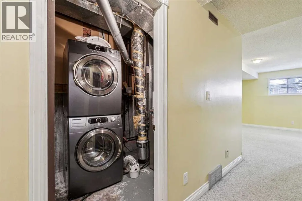 Welcome to this well-maintained half duplex in the desirable community of Woodbine. Freshly painted and featuring new bedroom flooring, this home offers a clean, move-in-ready feel. Enjoy added convenience with a newer furnace (2016), central vacuum (Vacuflo), a new roof (2019), updated siding, gutter guards, bars on basement windows and Telus security system ready to be activated. And for dog lovers a generous back deck is complete with a ramp to the fenced in yard.The property is surrounded by mature trees, a beautiful apple tree in the front, and backs onto a paved alley, adding both privacy and accessibility. While the yard is very low maintenance the parking pad could be reclaimed for a perfect manageable yard. Ideally located close to beautiful Fish Creek Park and bike paths, shopping, Costco, schools, and with easy access to Stoney Trail, this home is perfect for comfortable, connected living. (id:27476)