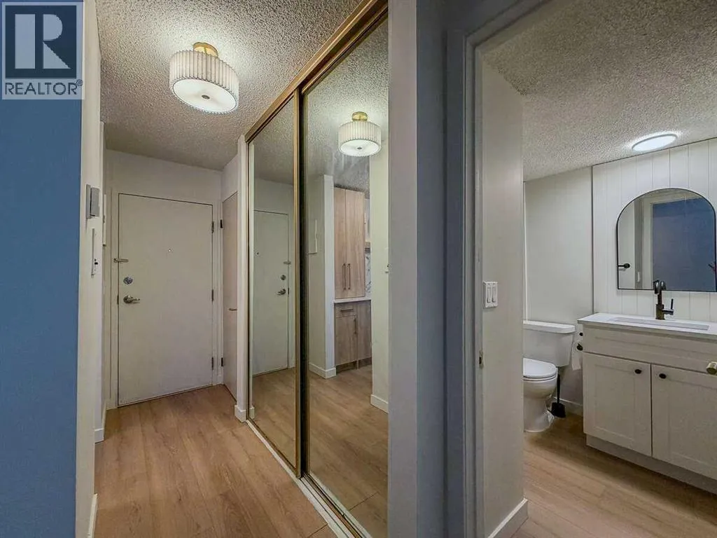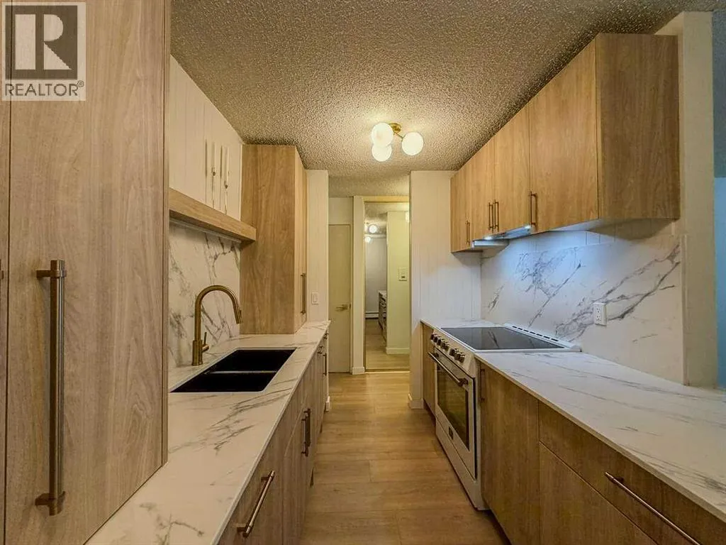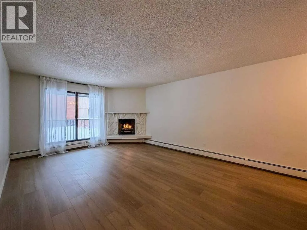 For more information, please click the "More Information" button. Location, Location, Location! Welcome to Varsity Villas. A gem in the heart of Calgaryâs highly sought-after community of Varsity. This beautifully designed unit has been recently refreshed with a stunning new kitchen including custom honey oak cabinetry, new white and gold stainless appliances with an integrated dishwasher, striking Arabescato quartz countertops alongside matching slab backsplash paired with elegant champagne hardware. Wide plank white oak lvp flooring throughout the unit, fresh paint, gold fixtures and hand crafted artisan tile imported from Spain. This main-floor corner unit offers a spacious layout featuring a private entry with a large storage room, 4-piece bathroom with in-suite laundry, an oversized primary bedroom, expansive living room with a gas fireplace, large windows and balcony that flood the space with natural light. This move-in-ready space is turn-key and incredibly designed with comfort and functionality in mind. Perfectly located across from Market Mall, youâll enjoy unmatched convenience with shopping, dining, and services just steps away. Inside Varsity Villas, youâll find thoughtful amenities including a secure entry system, well-maintained elevators, heated underground parking, and assigned covered stalls. This is a very well run complex with a healthy reserve fund, all utilities covered excluding electricity. Adult only complex: 25 and over. Post tension parkade. No pets allowed. (id:27476)