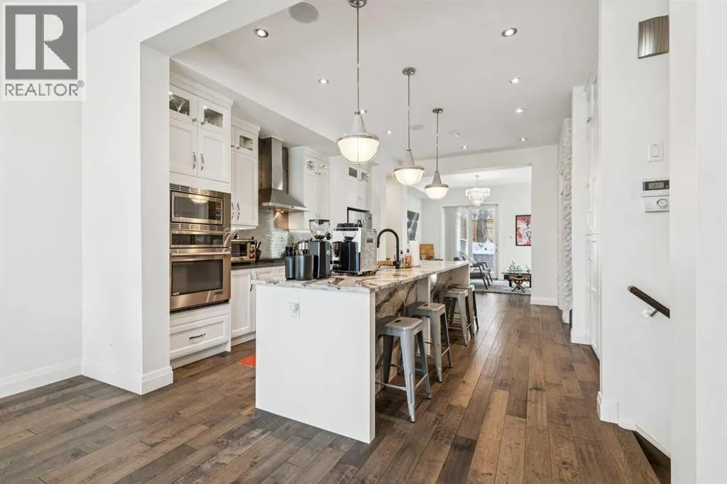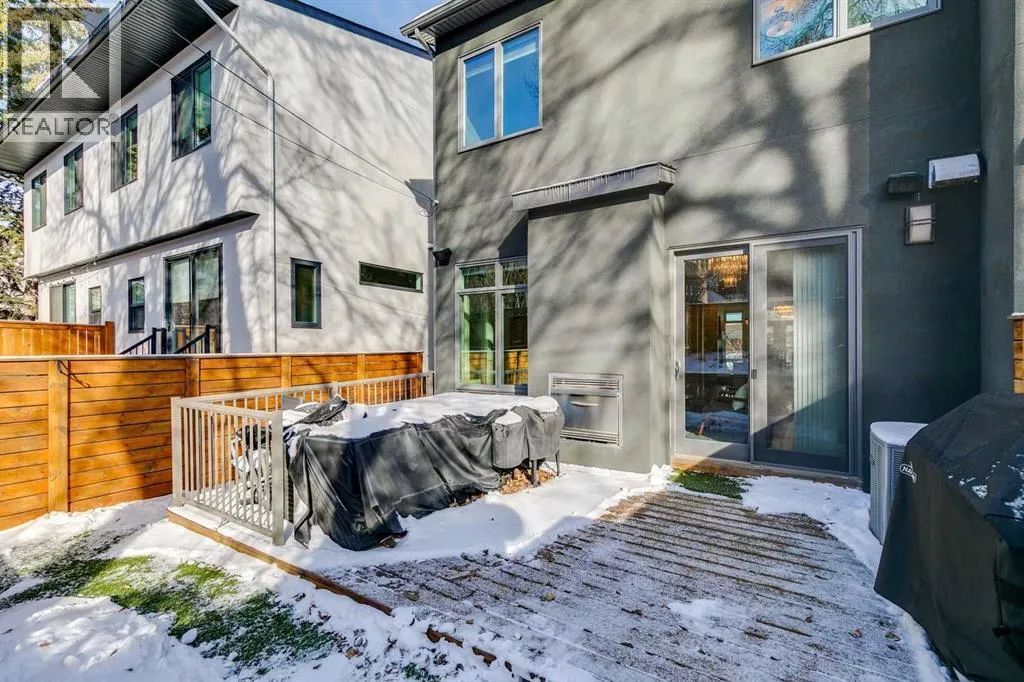 Front attached garage in the inner City!! Rare find. Best value modern infill in Richmond/South Calgary! This high end custom executive home features; Kohler sinks and toilets , Riobel faucets , granite in all bathrooms and laundry room, flat ceiling throughout, locker system in the front hall, feature stone wall in the living room and stairwell, built in sound system, frosted privacy windows in the living room, 6 burner gas stove, wine fridge, shadow boxes in the kitchen, walk in closets with wood builtins in all bedrooms, central air conditioning, epoxy flooring in the garage, exposed aggregate driveway and walkways, gas fireplace on the well treed private rear deck, rooftop deck with all day sun and views of downtown.........Wow. The floorplan is open and bright with floor to ceiling windows. The dining room and living room areas could be reversed depending on the buyers preference. Large gourmet kitchen with a huge island and feature backsplash and hoodfan. Three large bedrooms upstairs all with walkin closets with wood built in organizers. The basement offers a 13x18 flex room with a 3pc bath and walkin closet. Ideal for a home gym, gear room or dream teenager bedroom. Two outdoor living spaces, one in the rear yard and the other is a rooftop deck. Great access to downtown, Marda Loop, river pathway system, parks and the mountains. (id:27476)