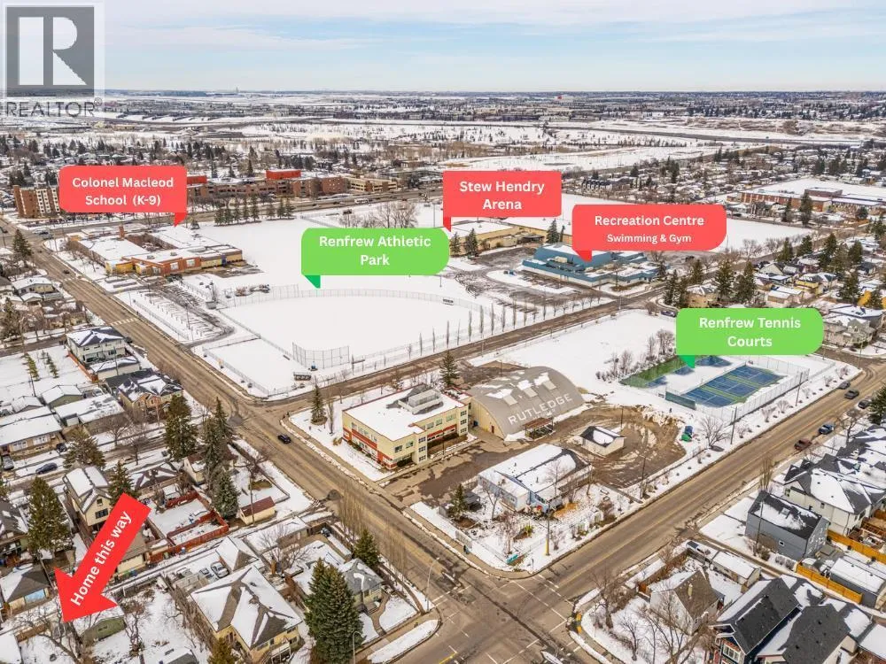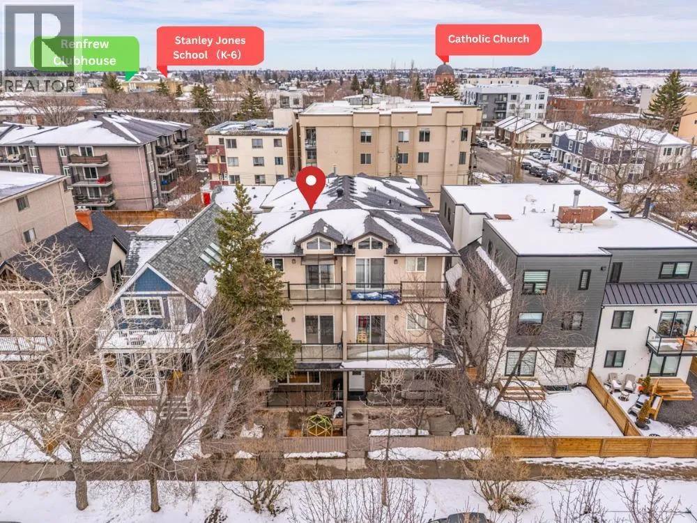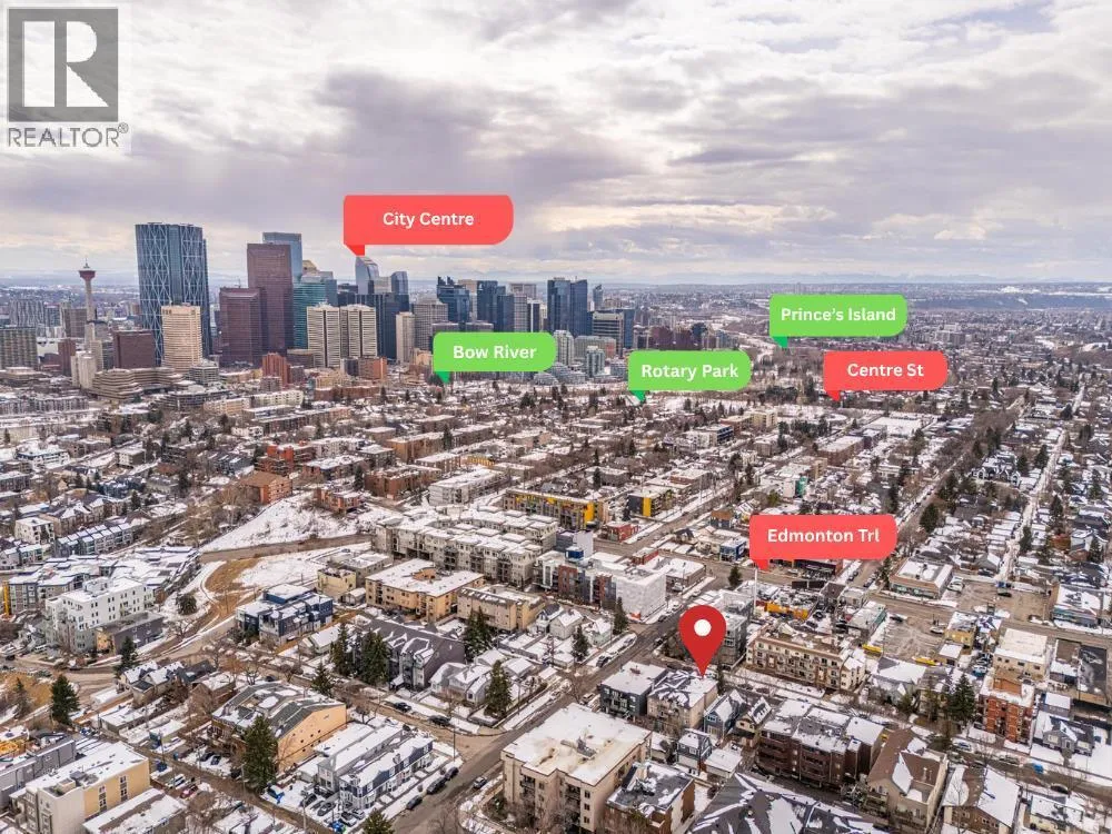 Location! Location! Location! Ideally situated within walking distance to Downtown Calgary, this property offers unbeatable convenience. Just one block away from a medical centre, cafés, restaurants, and everyday amenities, making urban living effortless and enjoyable. Designed with comfort and space in mind, the home features 9-foot ceilings from the basement through the second floor, creating an airy and open feel throughout. Both the second and third floors offer private balconiesâperfect for enjoying your morning coffee with city views or unwinding in the evening with a glass of wine. This rare layout features 4 bedrooms and 3 full bathrooms above grade, ideal for growing families or flexible living arrangements. The main floor includes a versatile office/den that can easily function as a fourth bedroom, conveniently located beside a full bathroom. The spacious living room is highlighted by a cozy gas fireplace and large west-facing windows that fill the space with warm natural light. A front yard adds additional outdoor space for kids or relaxation. The second floor offers a bright and functional layout with a generous bonus room that connects to a glass-enclosed balcony, creating a perfect indoor-outdoor retreat. Two spacious bedrooms, a full bathroom, and a conveniently located laundry area complete this level. The entire third floor is dedicated to a luxurious primary retreat. Featuring vaulted ceilings, a private balcony, and a gas fireplace, this space is designed for comfort and privacy. It also includes a large walk-in closet and an impressive 6-piece ensuite with double vanity, soaker tub, and separate shower. Located in the desirable Renfrew community, this home is surrounded by fantastic amenities for families and active lifestyles. Enjoy easy access to the Renfrew Community Centre and nearby recreation facilities featuring swimming and fitness options, along with multiple parks, playgrounds, and green spaces. The area is well-served by excellen t schools, including Stanley Jones School (Kâ6), Colonel Macleod School (Kâ9, TLC program), and Crescent Heights High School (10â12), making it a great choice for families. Recent upgrades include a new hot water tank, microwave hood fan, radon mitigation system, as well as improved attic insulation and ventilation. (id:27476)