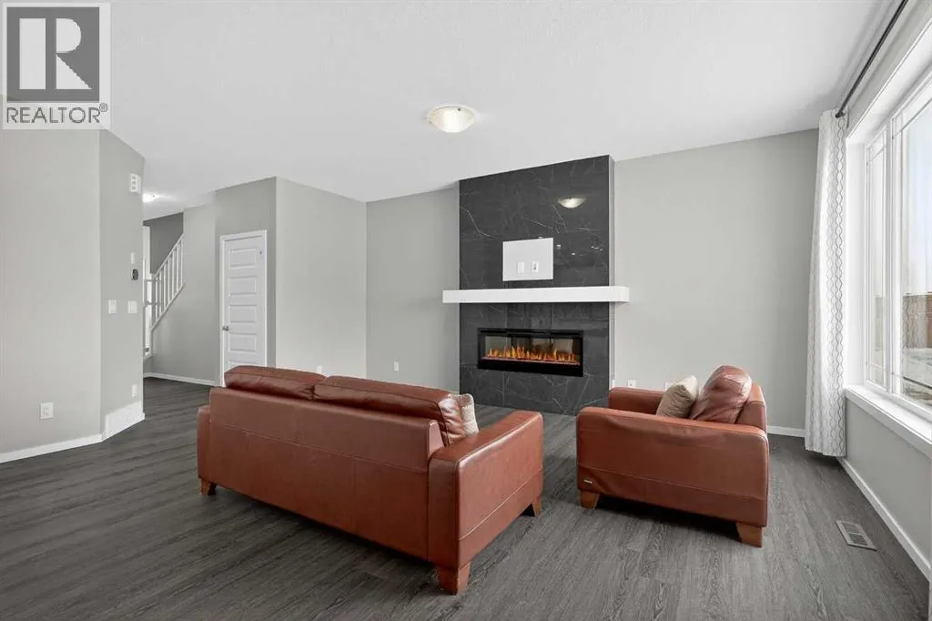 ** Welcome to this exceptional 2022 built Mattamy Home located in Yorkville, one of South Calgaryâs most exciting and up-and-coming communities. Offering over 2800 sqft of thoughtfully finished living space, this beautifully maintained home is move-in ready and loaded with upgrades. The bright, open-concept main floor showcases high ceilings, expansive windows, and a seamless layout ideal for both everyday living and entertaining. LVP flooring runs throughout the entire main level, combining durability with modern style. The living room is adorned by an elegant electric fireplace with a ceramic tile surround, creating a warm and contemporary focal point. The chef-inspired kitchen is a true standout, featuring white cabinetry, stainless steel appliances including a gas stove, and an oversized pantry, all complemented by generous prep space overlooking the living and dining areas. A functional mudroom with a convenient walkthrough to the kitchen enhances daily practicality and organization. Upstairs, youâll find three well-appointed bedrooms, a spacious bonus room, and the added convenience of upper-floor laundry, brilliantly designed for todayâs busy households. The primary bedroom retreat offers a walk-in closet and a private 4-piece ensuite, while the additional bedrooms are serviced by a well-appointed 5-piece main bath. The recently finished basement adds significant additional living space, complete with durable laminate flooring, a large bedroom, full bathroom, and an inviting recreation area. Oversized windows bring in an abundance of natural light, creating a bright and comfortable lower level that feels far from typical basement living. The lower level also offers plenty of additional storage space to keep everything neatly tucked away. Additional highlights include a double attached garage, quality craftsmanship, and a desirable lot featuring no rear neighbours. Situated in the growing community of Yorkville, residents enjoy a peaceful suburban setting with convenient access to schools, parks, shopping, and major commuter routes including Deerfoot Trail, Stoney Trail, and Macleod Trail. An excellent opportunity to own a newer construction home with a finished basement in one of South Calgaryâs most sought-after locations! (id:27476)