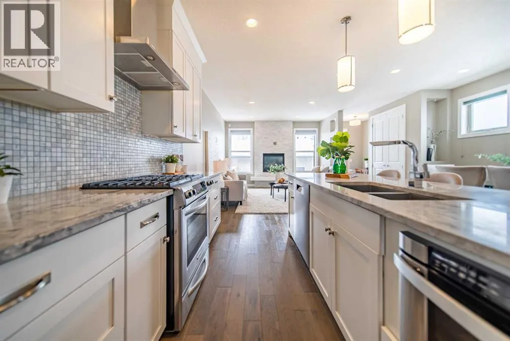 Welcome to this beautifully designed Cardel home in the heart of Glenbrook, one of Calgaryâs most charming and established communities. With its mature tree-lined streets, easy access to parks, schools, shopping, and quick downtown routes, Glenbrook offers a vibrant, convenient lifestyle where neighbours genuinely connect, appealing to families and professionals alike. This is not an everyday infill, this property reflects thoughtful design, quality construction, & a floor plan that truly works for real life. From curb appeal to interior finishes, you can feel the difference. As you step inside, youâre welcomed by a generous foyer with a spacious front closet that sets a warm, organized tone for the rest of the home. Just off the entrance, a bright front room overlooks the lovely tree-lined street, making it an ideal home office, reading room, or creative studio. The heart of the home is the sun-drenched open concept kitchen, dining, & living area. Large windows flood the space with natural light, creating an inviting atmosphere for both everyday living & entertaining. The kitchen offers abundant cabinetry & generous prep space, giving home cooks room to spread out while still feeling connected to guests or family in the adjoining dining & living areas. Upstairs, the thoughtfully planned upper level is designed for comfort & practicality. A well sized laundry room keeps the chore zone conveniently close to the bedrooms. Two secondary bedrooms offer great space for kids, guests, or a second office, while the stunning primary retreat anchors the floor. The primary suite features dual closets & a luxurious five piece ensuite with double vanities, a relaxing soaker tub, & a separate glass shower, creating a private, spa like escape to start & end your day. The fully developed basement, youâll find a comfortable guest bedroom & full bathroom, ideal for guests. A large recreation area offers endless possibilities. With the basement already roughed in for a wet bar, you h ave the option to further elevate the space. Outside, the backyard is designed for maximum enjoyment with minimal upkeep. Youâll appreciate sun throughout the day, a cozy sitting area perfect for morning coffee or evening drinks, and low-maintenance turf grass. Practical upgrades complete the picture. Central air conditioning keeps the home comfortable through Calgaryâs warmer months, while the tankless water heater helps provide efficient, on-demand hot water. A front irrigation system helps maintain the exterior with ease, & the large double garage offers secure parking for two vehicles along with ample room for bikes, tools, & seasonal gear. From sunrise in the east yard to cozy evenings in the living room, every inch of this Cardel built Glenbrook home has been designed to make daily life feel just a little more exceptional. (id:27476)