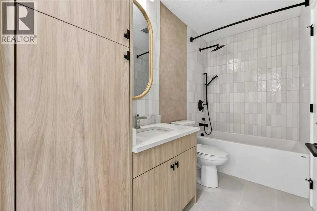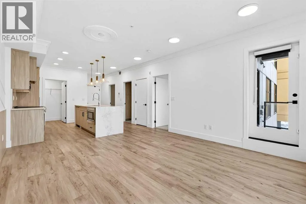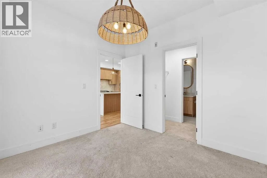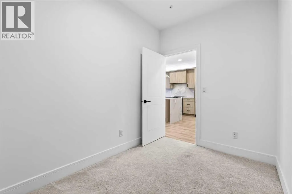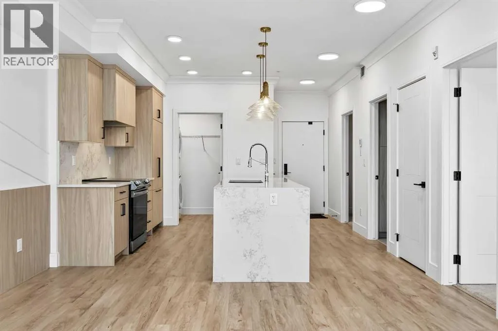 Welcome to this beautifully designed 1-bedroom + office/flex space condo offering nearly 689 sq. ft. of functional living in the highly sought-after community of Currie Barracks. Built by Rohit Communities, this unit stands out with its smart layout, modern finishes, and exceptional use of spaceâperfect for professionals, remote workers, or investors. The thoughtfully designed kitchen maximizes efficiency using the work triangle concept, while the oversized waterfall quartz island serves as the true centerpieceâideal for cooking, dining, and entertaining. The open-concept layout flows seamlessly into the bright living area, enhanced by large windows that flood the space with natural light. A key highlight of this home is the dedicated office/flex space, offering the perfect work-from-home setup or additional storageâan increasingly rare and valuable feature in condo living. The spacious primary bedroom comfortably fits a queen-sized bed with room for nightstands, while the modern bathroom and in-suite stacked washer/dryer add everyday convenience. Step outside to your private deck, perfect for summer BBQs or relaxing evenings. This unit also includes one titled underground parking, providing security and comfort year-round, and a storage locker. Ideally located just 7â10 minutes to downtown, Mount Royal University, Marda Loop, CF Chinook Centre, and Glenmore Park, this home offers the perfect balance of urban access and community charm. With its generous size, functional layout, and added flex space, this is a standout opportunity in one of Calgaryâs most desirable inner-city communities.The spacious primary bedroom comfortably accommodates a queen-sized bed with room for additional furnishings, while the modern bathroom and in-suite stacked washer and dryer add everyday convenience.Ideally located, youâre just a short 7â10 minute drive to downtown, Mount Royal University, Marda Loop, CF Chinook Centre, and Glenmore Park, offering the perfect balance of urban liv ing and community charm.An excellent opportunity for first-time buyers, professionals, or investors in one of Calgaryâs most sought-after communities. (id:27476)