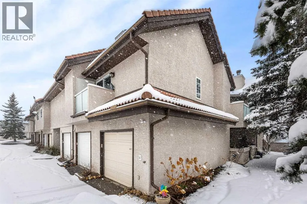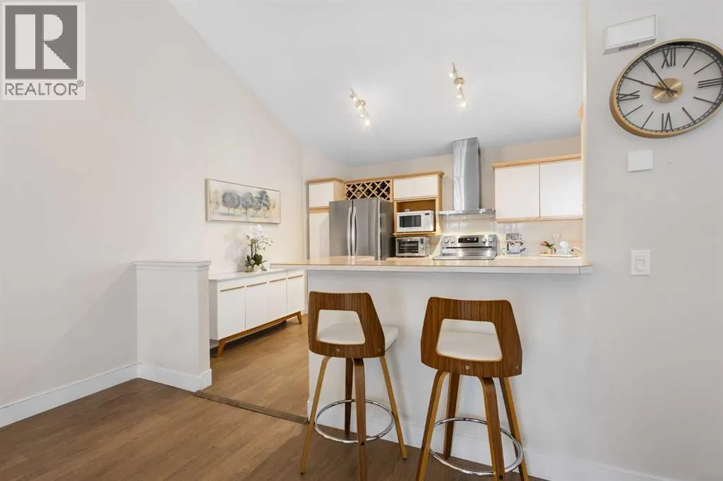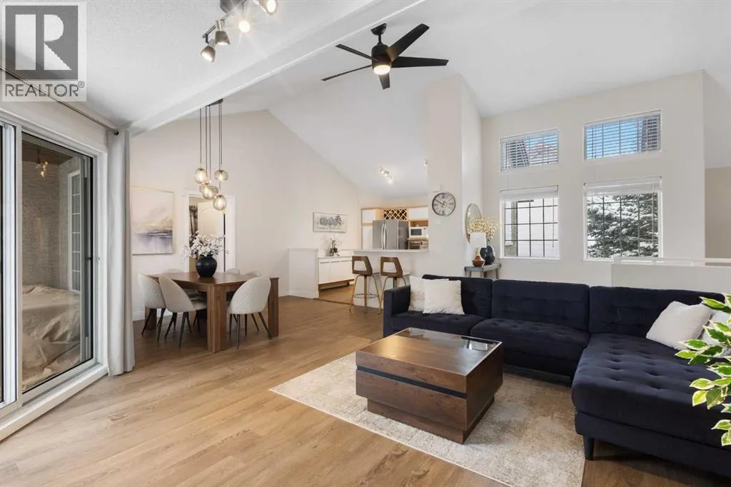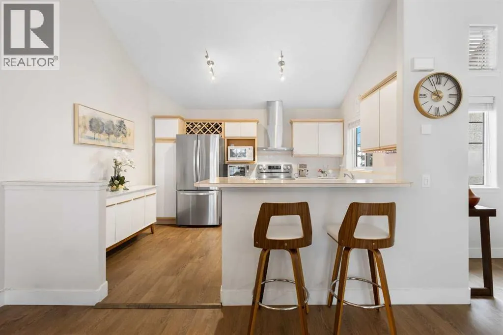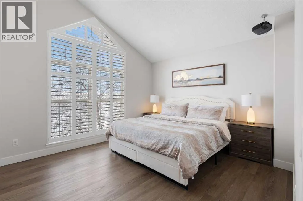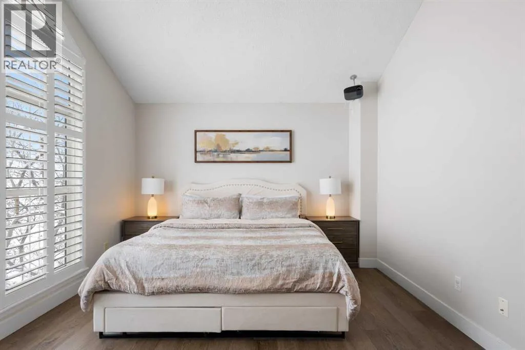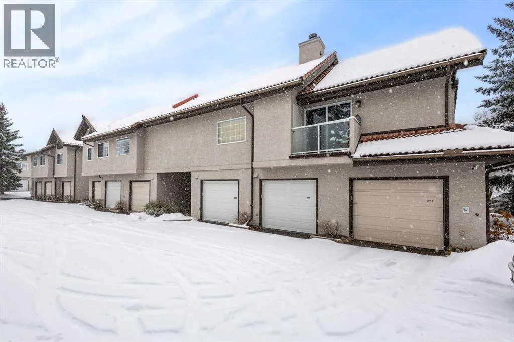 Welcome to Cactus Ridge in Signal Hill, an exclusive enclave tailored for executive living with mature landscaping and unbeatable west-side convenience. This premier upper-level stacked townhouse is defined by open spaces and sophisticated natural light. Vaulted ceilings and expansive windows draw the outdoors in, creating an airy, open atmosphere perfect for both relaxation and entertaining. The living room serves as a refined focal point, anchored by a classic wood-burning fireplace and easy access to your private balcony.The thoughtful floor plan provides two generous bedrooms and two full bathrooms, offering the ideal separation for a sophisticated home office or guest accommodations. Modernized with executive comfort in mind, the home features stylish new wardrobe hardware, a custom mirrored entrance panel with integrated shelving, as well as designer blinds on all windows. The kitchen is equipped with a suite of new appliances, while the master suite has been upgraded with new electrical outlets and custom closet shelving.Luxurious comfort is provided by underfloor heating that extends from the living areas to the private attached garage, ensuring a dust-free environment and warm transitions during Calgary seasonal changes. Smart home security enhancements include a numeric code entry and a comprehensive camera system at the front door, balcony, and garage. For added convenience, you assigned stall is directly beside the unit, and ample visitor parking makes hosting your guests even easier. Beyond the interior, a private rear balcony overlooks a meticulously maintained seasonal garden and provides access to a 25-square-foot private storage room. Residents also enjoy the amenities of a private clubhouse, ideal for hosting private events. Located just a five-minute stroll from Sunterra Market and West Market Square, and minutes from the paths of the Bow River, this home offers a low-maintenance, executive lifestyle in one of the city's most established commun ities. All premium furniture and décor are available for separate purchase to ensure a seamless move-in experience. (id:27476)