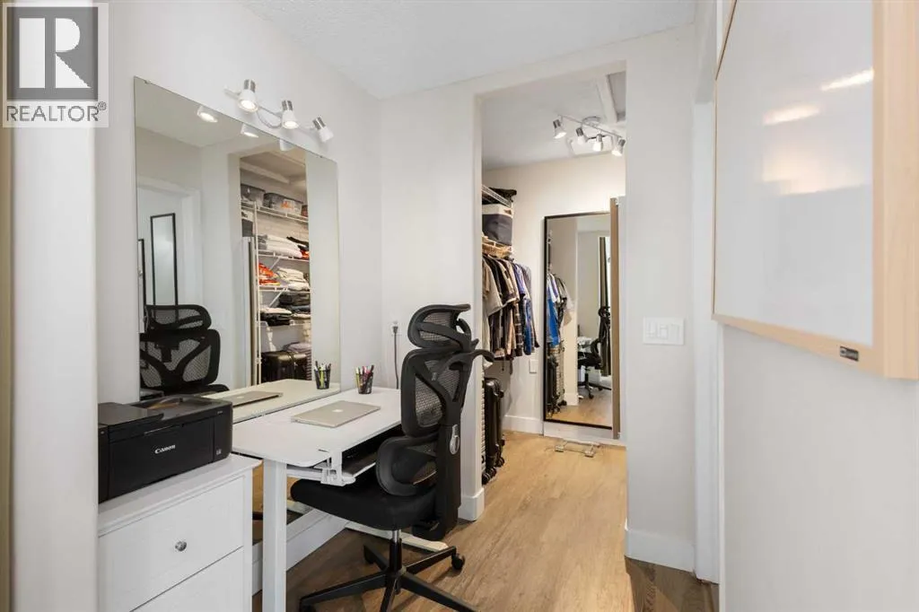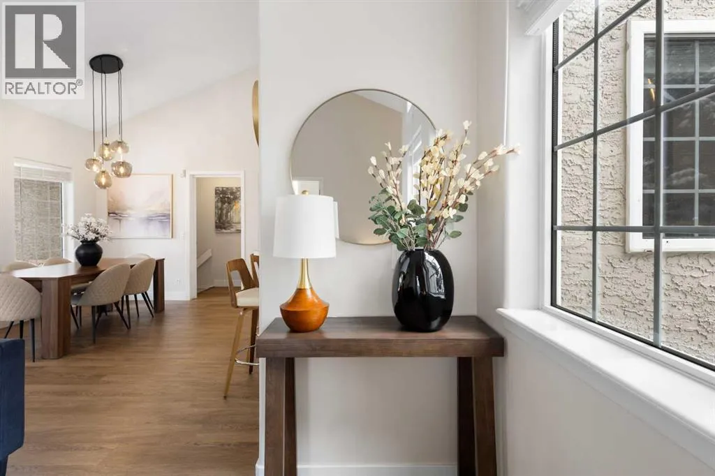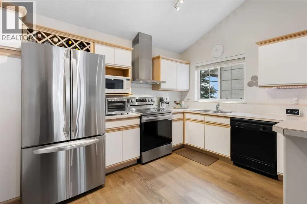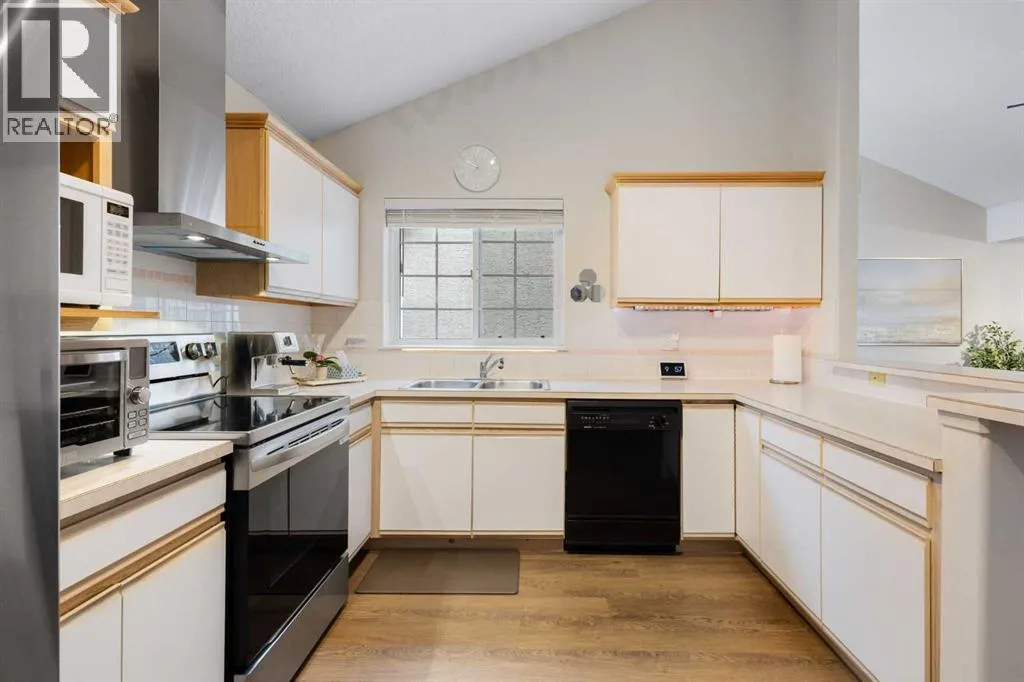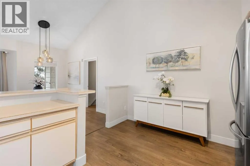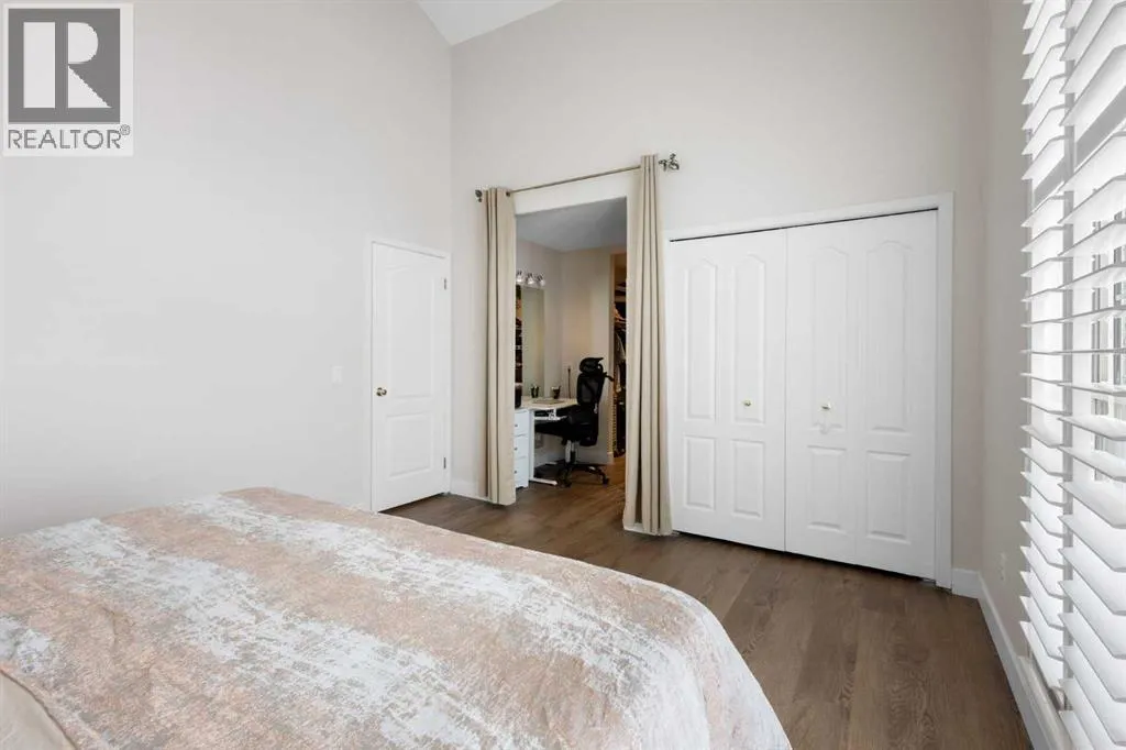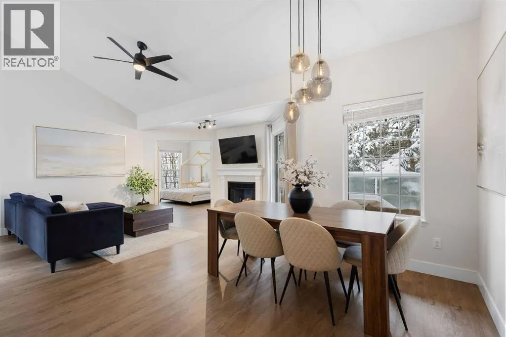 Welcome to Cactus Ridge in Signal Hill, an exclusive enclave tailored for executive living with mature landscaping and unbeatable west-side convenience. This premier upper-level stacked townhouse is defined by open spaces and sophisticated natural light. Vaulted ceilings and expansive windows draw the outdoors in, creating an airy, open atmosphere perfect for both relaxation and entertaining. The living room serves as a refined focal point, anchored by a classic wood-burning fireplace and easy access to your private balcony.The thoughtful floor plan provides two generous bedrooms and two full bathrooms, offering the ideal separation for a sophisticated home office or guest accommodations. Modernized with executive comfort in mind, the home features stylish new wardrobe hardware, a custom mirrored entrance panel with integrated shelving, as well as designer blinds on all windows. The kitchen is equipped with a suite of new appliances, while the master suite has been upgraded with new electrical outlets and custom closet shelving.Luxurious comfort is provided by underfloor heating that extends from the living areas to the private attached garage, ensuring a dust-free environment and warm transitions during Calgary seasonal changes. Smart home security enhancements include a numeric code entry and a comprehensive camera system at the front door, balcony, and garage. For added convenience, you assigned stall is directly beside the unit, and ample visitor parking makes hosting your guests even easier. Beyond the interior, a private rear balcony overlooks a meticulously maintained seasonal garden and provides access to a 25-square-foot private storage room. Residents also enjoy the amenities of a private clubhouse, ideal for hosting private events. Located just a five-minute stroll from Sunterra Market and West Market Square, and minutes from the paths of the Bow River, this home offers a low-maintenance, executive lifestyle in one of the city's most established commun ities. All premium furniture and décor are available for separate purchase to ensure a seamless move-in experience. (id:27476)