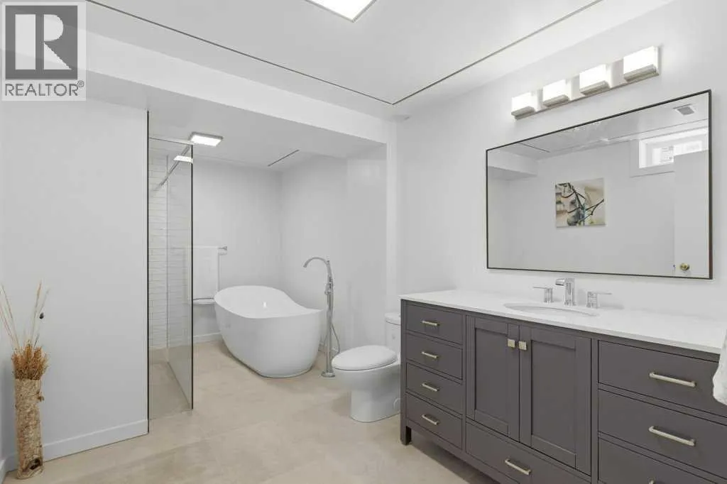 Welcome to 536 Woodhill Place SW - an exceptional bungalow nestled on a spacious pie shaped lot in a serene cul-de-sac, right in the heart of Calgaryâs sought after Woodlands community. This home stands out with its larger than average footprint, offering over 1,447 sq ft on the main floor plus a fully finished basement, giving you plenty of room to stretch out and grow. Step inside and enjoy the warmth of natural sunlight streaming into the expansive front living room, highlighted by a stunning full height stone fireplace. The open layout effortlessly connects the living room, breakfast nook, and deck through bright glass sliding doors, making entertaining and family time a breeze. The kitchen and dining area are truly impressive spacious and thoughtfully designed, featuring a unique double sided stone fireplace that adds charm and comfort. The primary bedroom is generously sized, complete with ample closet space and a full three piece ensuite for your convenience. Two additional well proportioned bedrooms and a four piece main bathroom offer flexibility for families or guests. Downstairs, youâll find a fully finished basement with a large family room that can easily be divided into a cozy lounge and recreation space using strategic furniture placement. Thereâs a sizeable extra bedroom with a full size egress window, plus a beautifully upgraded four piece bathroom featuring a tiled shower, standalone soaker tub, heated tile floors, and a stylish vanity. Enjoy the privacy and practicality of alley access to your oversized, heated double detached garage, a rare find thatâs perfect for Calgary winters and extra storage needs. The location is unbeatable. Tucked inside a quiet cul-de-sac, youâre within walking distance or a short bike ride from Fish Creek Provincial Park, Woodlands School, neighbourhood ball diamonds, shopping, and everyday amenities. With major routes like Macleod Trail, 14 Street, Elbow Drive, and Stoney Trail nearby, commuting and exploring the city is effortless. This welcoming bungalow combines spacious living, modern upgrades, and a prime location, making it an outstanding opportunity for buyers seeking comfort, convenience, and community in Calgaryâs Woodlands. Donât miss your chance to call 536 Woodhill Place home! (id:27476)