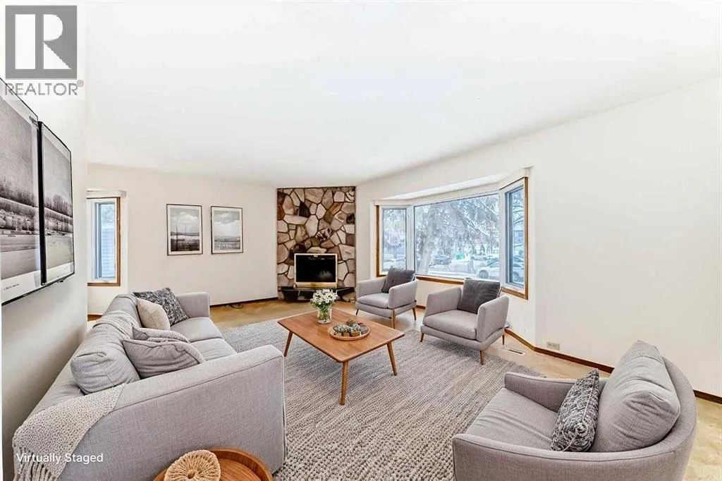 WELCOME to this charming 4 bed/1.5 bath bungalow ideally located across from the community center, community garden, outdoor rink & playground, perfect for a family starter home or investor, n the mature sought after community of Brentwood! Situated on a quiet tree lined street, this well loved bungalow has charm to spare. The main level features a generous living room featuring a large bay window and corner fireplace, with stone facing facade. This flows into the separate dining room with another large bow window & plenty of room for a 6-8 person dining table, ideal for hosting family gatherings. The large kitchen has lots of counter space and an additional eat in area. The good sized primary features bright wide windows and a 2 pc ensuite for privacy. Two additional bedrooms & 4 pc bath complete the main floor. Downstairs you'll find a cozy 4th bedroom or den (non-egress), and a large recreation room for family movie nights & space for kids to play. Finishing the lower level is a cold room and large utility/laundry room with plenty of storage shelving & workbench area for tinkering. In the backyard you'll find a good sized deck and green space for kids & fur babies alike to play. As well, there is an oversized double detached garage for parking on cold winter days. The property is ideally located within a quick walk to 4 schools for kids of all ages, as well as an easy walk to shops, restaurants, services and fitness & aquatic center. Close to University of Calgary, Crowchild Trail, the University C Train, this perfect location makes commuting in any way simple & easy. Don't miss out! (id:27476)