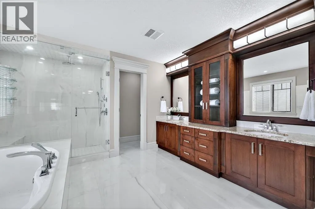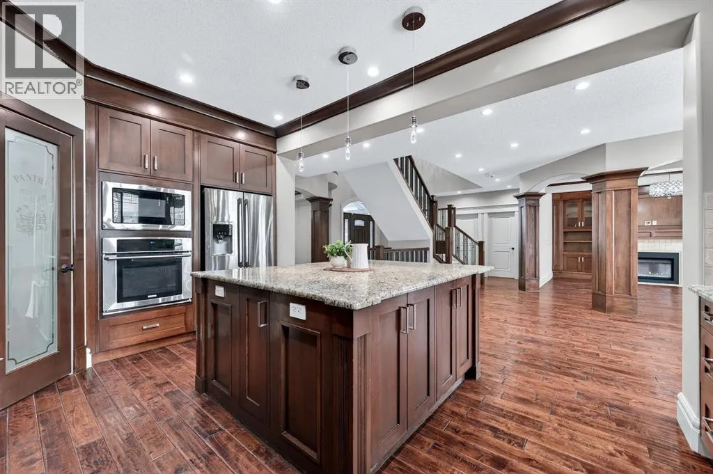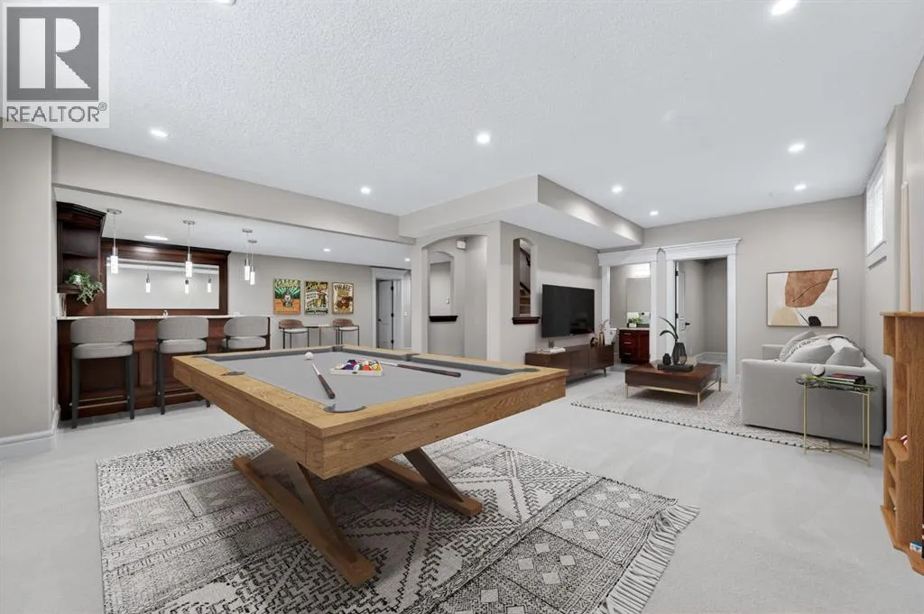 On a quiet street in Wexford Estates, this is the perfect home for those looking for a little more space and room for everyone, and everything! Offers more than 4900 sqft of thoughtful and practical design. Freshly painted throughout with a very smart floorplan and family friendly layoutâthe perfect balance between style and function to accommodate family and guests in true comfort. The main level has a practical and open kitchen with huge center island, walk through pantry and eating area, a formal dining room, separate home office/den, laundry/mud room, and a window lined family room with custom built-ins and cozy fireplace. The bright and open upper level features a spacious bonus room wired for surround sound, a loft area that is perfect for a homework or reading area, and 3 bedrooms including an amazing primary complete with walk-in closet, fireplace, dual sinks, air jetted tub and separate steam shower. The lower level has heated floors, full wet bar, recreation and games area, a 4th bedroom, full bath, exercise/playroom PLUS a theatre room. There is central AC, a Tesla EV car charger in the garage, and a landscaped and fenced back yard. Walking distance to elementary and junior high school and all amenities. Every element in every space must be viewed to be appreciated! Tour your new home, today! (id:27476)