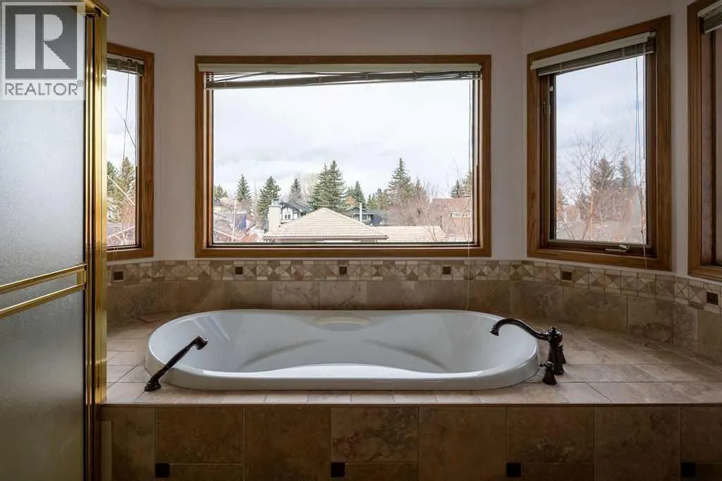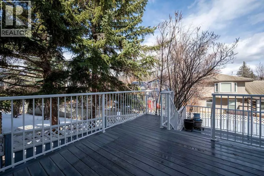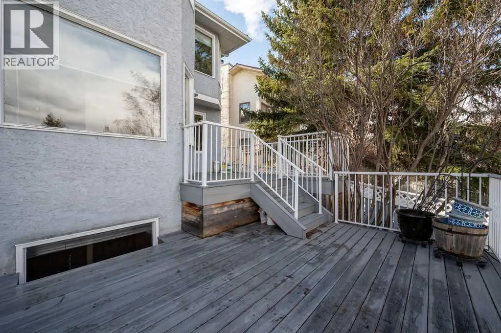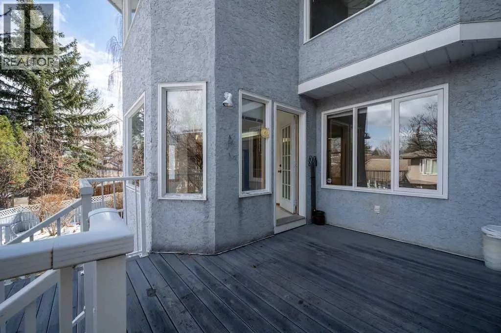 Welcome home to Shawnee Slopes. Tucked away in a quiet cul-de-sac, this impressive 5-bedroom residence offers over 3,500 sq. ft. of thoughtfully developed living space. The grand foyer welcomes you with soaring ceilings, leading into an elegant floor plan that features formal living and dining area, and a cozy family room anchored by a gas ignite wood fireplace. The kitchen, complete with ample cabinetry and a bright breakfast nook, opens onto a maintenance-free, two-tiered composite deckâperfect for indoor-outdoor hosting. A rare main-floor bedroom and 2-piece bath add incredible versatility.The upper level boasts three spacious bedrooms, including a massive primary retreat with its own fireplace, walk-in closet, and private 4-piece ensuite. The walk-up basement expands your living area with a huge recreation room, a third fireplace, an additional bedroom, and a 3-piece bath. Step outside to a private, treed backyard featuring mature landscaping and an interlocking brick patio. Located just steps from Fish Creek Park, St. Maryâs University, and the C-Train, with effortless access to Macleod and Stoney Trails. This home combines a prime location with endless potential. (id:27476)