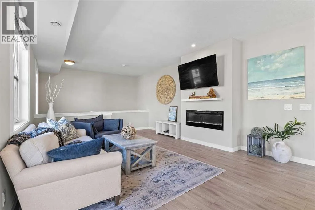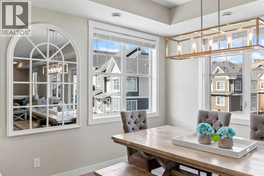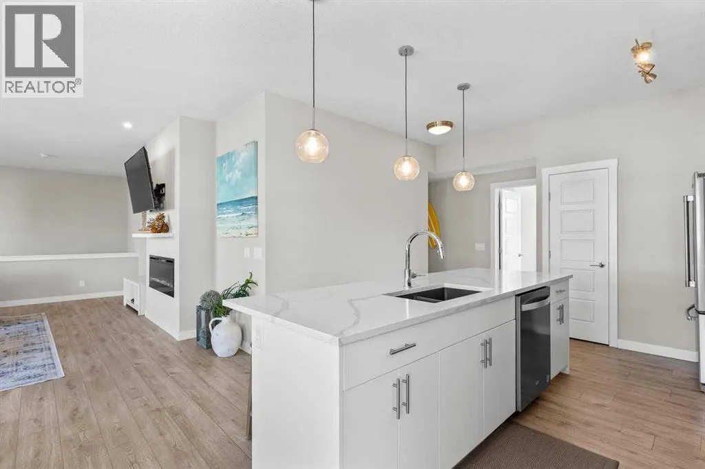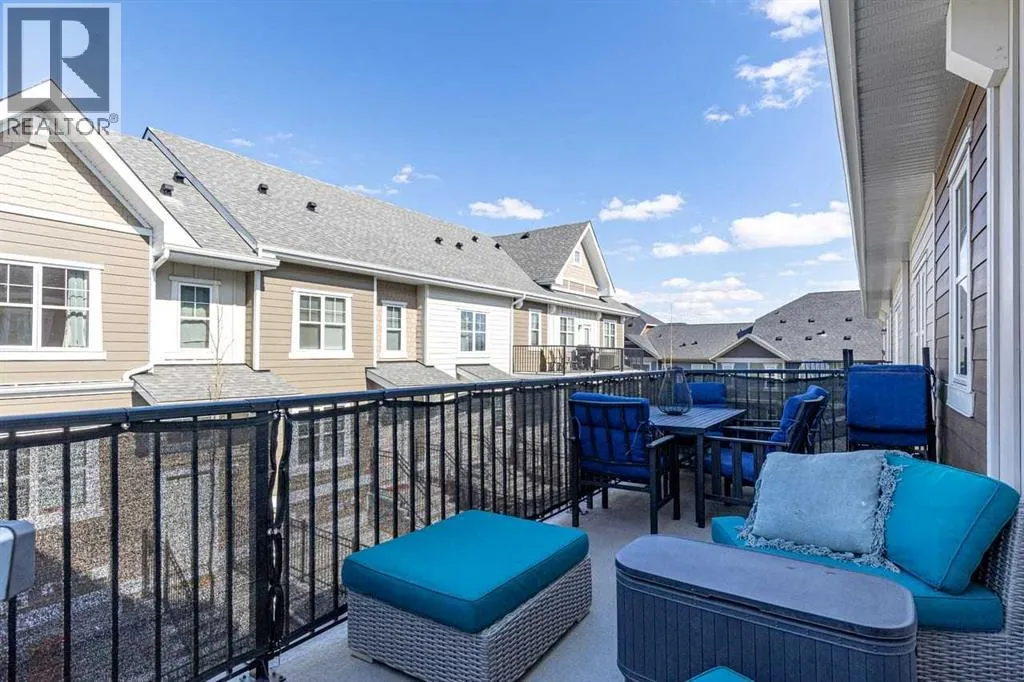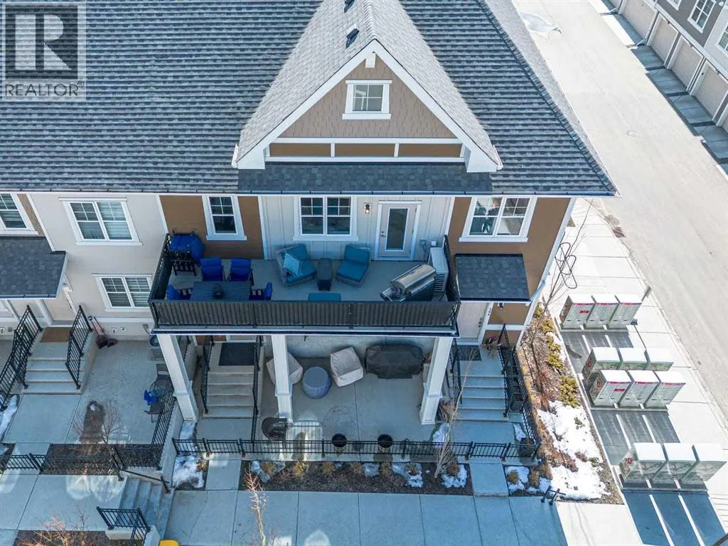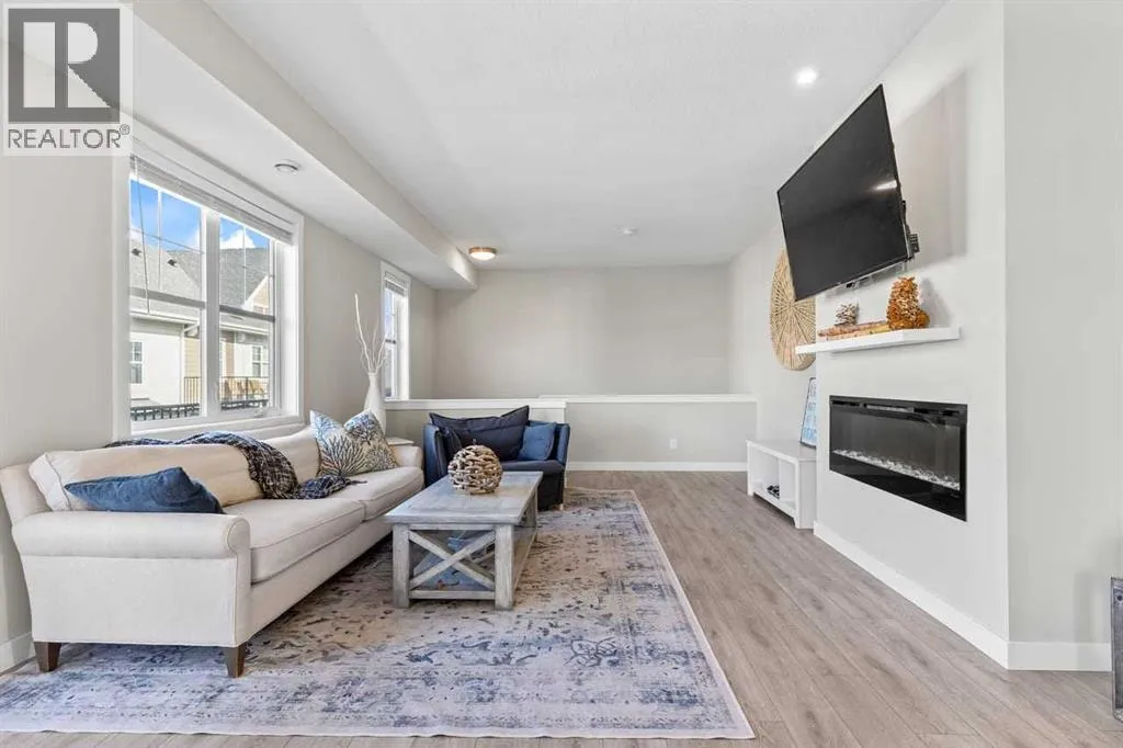 Tucked into the coveted natural enclave of Riverstone of Cranston, this rare corner end-unit offers the kind of lifestyle people move here for â Fish Creek Park, the Bow River, and miles of serene pathways literally at your doorstep. Sunlight pours through the triple-pane windows on three sides, filling every room with warmth and showcasing the homeâs modern design. The main floor is an entertainerâs dream, featuring a bright living room with an electric fireplace, a spacious dining area, and a sleek, modern kitchen with quartz counters, breakfast bar seating, and clean contemporary finishes. Step outside to the oversized balcony, complete with gas and water hookups, creating a true outdoor living space overlooking the beauty of Riverstone.The main floor layout offers three full bedrooms, a rarity in this style of home, plus a true laundry room with a door, not a hallway closet. The primary suite offers its own full ensuite, while the additional bedrooms provide flexibility for family, guests, or a dedicated office. The fully developed basement adds valuable extra space, perfect for a gym, studio, or media area, and the double attached garage adds everyday convenience. Built in 2022 with Hardi board exterior, modern flooring (vinyl plank, tile, and carpet), and central air, this home blends comfort, efficiency, and style. With nature as your neighbour and a community designed for those who crave tranquility without sacrificing modern living, this Riverstone property is truly unique and hard to find. (id:27476)