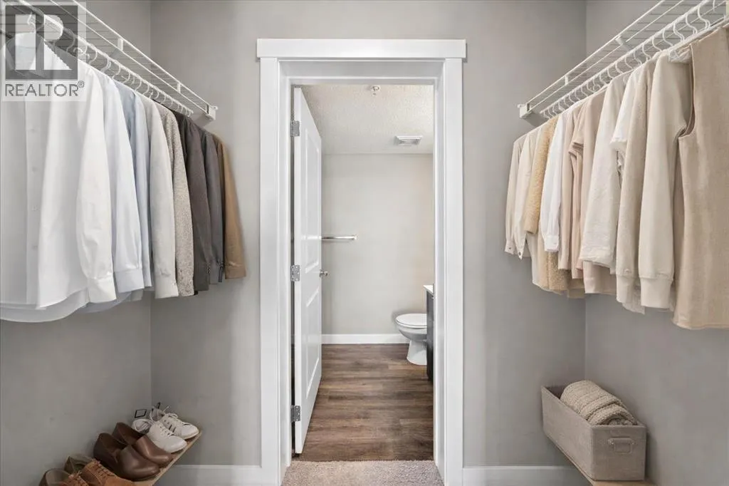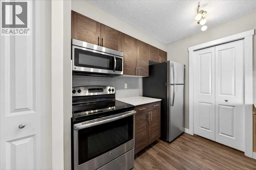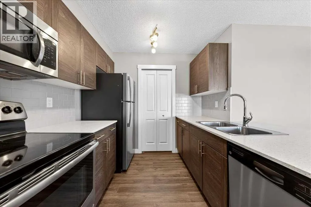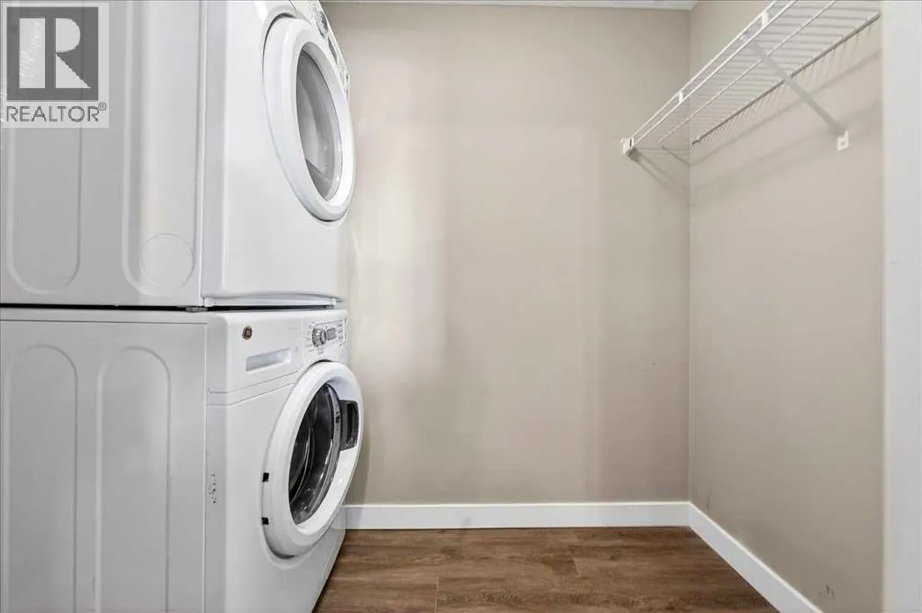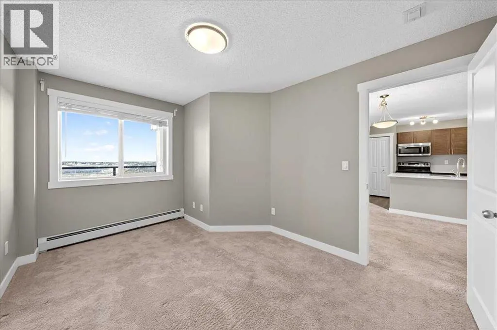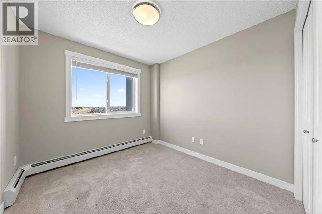 Is there a 2 bed condo in NW Calgary with privacy, natural light, and concrete construction? This unit delivers with bedrooms on opposite sides, east-facing unobstructed skyline views, and titled heated underground parking, offering flexibility for roommates, guests, or work from home needs.Welcome to this 2 bed, 2 full bath condo in a well connected NW community. The layout places bedrooms on opposite sides of the unit, creating ideal separation for privacy and flexible living. The east facing exposure brings in consistent morning light along with open views of city rooftops and skyline, enhancing the main living space. The kitchen features updated white granite countertops and stainless steel appliances, flowing into a comfortable living area suited for everyday use.The primary bedroom includes a walk through closet leading to a private 3 piece ensuite, while the second bedroom is positioned for separation and versatility. An in unit laundry room with built-in storage adds everyday functionality. Constructed with concrete, the building has strong sound insulation between units, supporting a quieter living experience.Additional features include titled heated underground parking located just a few stalls from the elevator, visitor parking, exterior garbage access, an exclusive east facing rooftop terrace on the 7th floor and is a pet friendly building. Located minutes from Walmart, coffee shops, day care, and transit, with quick access to Stoney Trail, Deerfoot Trail, and YYC Airport, this home offers efficient, low maintenance living in a convenient NW Calgary location. (id:27476)
