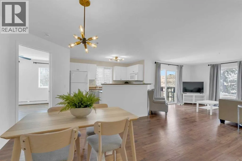 *SELLER WILL PAY FIRST 3 MONTHS OF CONDO FEES* Welcome to this beautifully appointed 2-bedroom, 2-bathroom end-unit condo, where refined style meets thoughtful functionality. Carefully curated detailsâsuch as modern West Elm lighting, elegant Pottery Barn curtain rods, and a timeless Benjamin Moore colour paletteâcreate a warm, cohesive, and sophisticated living space filled with natural light. The open-concept design is ideal for both entertaining and everyday living, while a well-planned layout places the bedrooms in their own private âwing,â each with access to its own bathroom for added comfort and privacy. The second bedroom is perfect for guests or a roommate, offering a great opportunity to offset ownership costs without compromising ease of living. Practical features include condo fees that cover all utilities (even electricity!), custom closet organizers, flat ceilings, a new dishwasher, a portable air conditioner, and in-suite laundry. The storage is exceptional, with dedicated indoor and outdoor spaces, plus entryway and linen closets. The large west-facing balcony overlooks green space, where mature trees provide a peaceful, private settingâespecially when in full leaf. Itâs the perfect spot to enjoy your morning coffee, unwind in the evening, or relax with friends and family. Located in a well-maintained, low-rise building with elevator access, this home also includes titled underground parking. Commuting is effortless with quick access to the Ring Road and Macleod Trail, while the nearby highway offers an easy escape to the mountains. Transit is close by, with the SomersetâBridlewood LRT station just a 3 minute walk away, and nearby shopping provides a wide range of convenient options. A YMCA is also just a short walk away. A seamless blend of style, comfort, and smart design; this is a home that truly elevates everyday living. (id:27476)