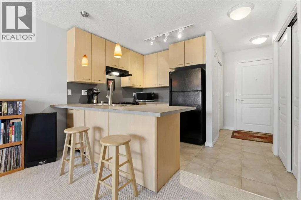 Welcome to Trafalgar House in this beautifully maintained, west-facing top-floor unit. Offering 1 bedroom, 1 bathroom, and a thoughtfully designed open-concept layout, this home is filled with natural light thanks to expansive windows that create an inviting and airy atmosphere.The contemporary kitchen flows seamlessly into a cozy dining nook and a spacious living room, where a charming gas fireplace becomes the perfect focal pointâideal for relaxing evenings or entertaining guests. Step outside to your private west-facing balcony, complete with a gas line, making summer BBQs effortless while enjoying the quiet atmosphere.The bright and generously sized primary bedroom features dual closets and easy access to a well-appointed 4-piece bathroom. Additional conveniences include in-suite laundry with a newer washer & dryer, a titled underground parking stall, and an assigned storage space.As an original Owner of Trafalgar House, the Seller enjoys an impressive array of amenities, including a fully equipped fitness centre, an inviting social/party room, secure bicycle storage, a beautifully landscaped courtyard with gazebo, car wash bay, and ample underground visitor parkingâall within a well-managed and desirable complexIdeally located within walking distance to Mount Royal University, close to public transit, and surrounded by an excellent selection of restaurants, cafés, and everyday amenities, this move-in-ready home is perfect for students, young professionals, investors, or anyone seeking a low-maintenance home in a well-managed building. (id:27476)