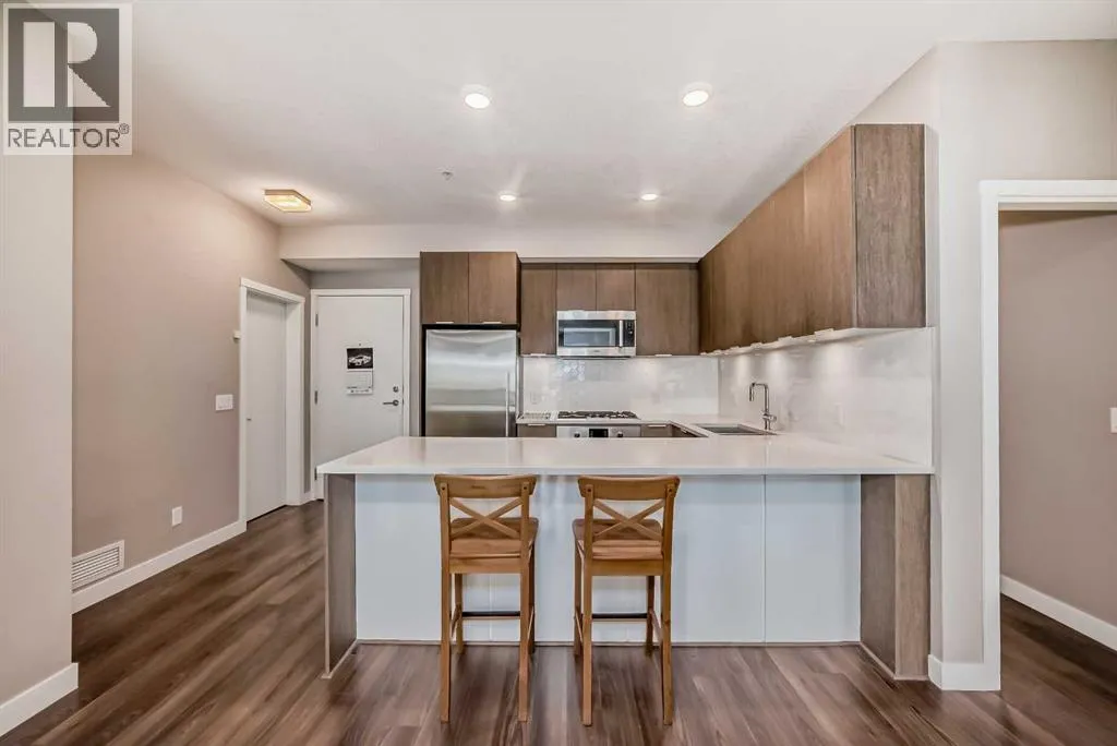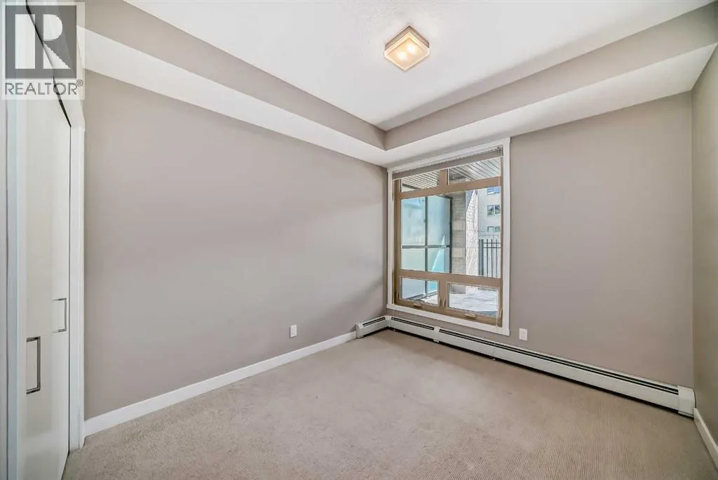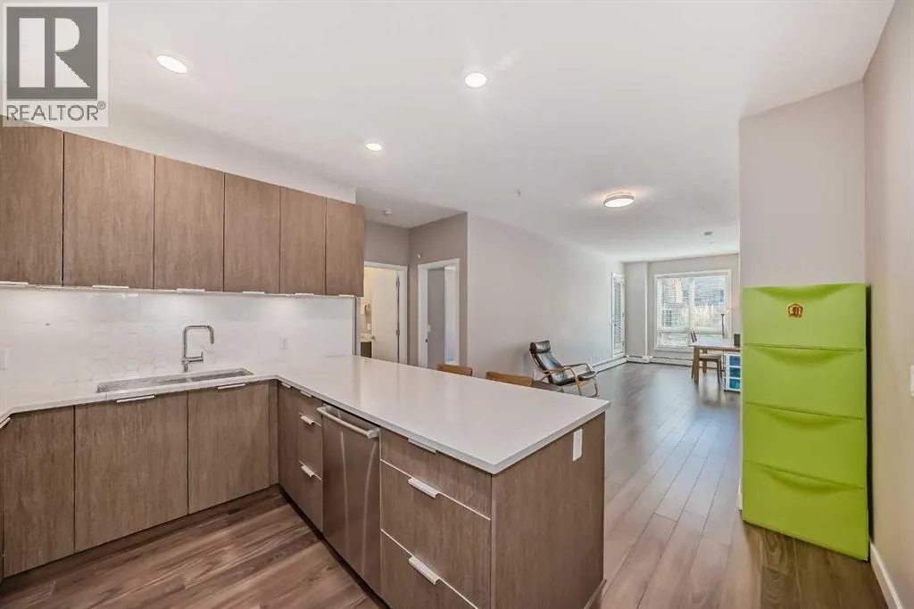 Discover urban living in the vibrant Sunnyside neighborhood with this stunning south-facing unit. Upon entering the secured building, you're greeted by an impressive green living wall that creates a welcoming atmosphere. This spacious 2-bedroom + den unit is on the main floor, offering modern features throughout. The kitchen boasts sleek stainless steel appliances, ample counter space, modern cabinetry, quartz countertops, a gas stovetop, and a built-in oven, all set against beautiful laminate flooring. The living room is bright and inviting, with a large window that fills the space with natural light. Near the entrance, a spacious laundry room provides additional storage. The den is perfect for a home office, ideal for remote work. The unit includes a 4-piece bath near the secondary bedroom, and the master bedroom offers a walk-through closet leading to a 3-piece ensuite with a large shower and tiled floors. A titled tandem parking stall in the heated underground garage is also included. Located within a 5-minute walk to LRT stations, Safeway, and the trendy Kensington area with its cafes and restaurants, this unit provides easy access to the Bow River pathways for walking or biking with beautiful downtown views. SAIT is just two blocks away, and the University of Calgary is a short drive. The building amenities, including a car wash, workshop, storage rooms, and secure bike storage, ensure every need is met. Donât miss this opportunity for luxury, convenience, and a fantastic lifestyle in a highly desirable location. Call for a viewing today! (id:27476)