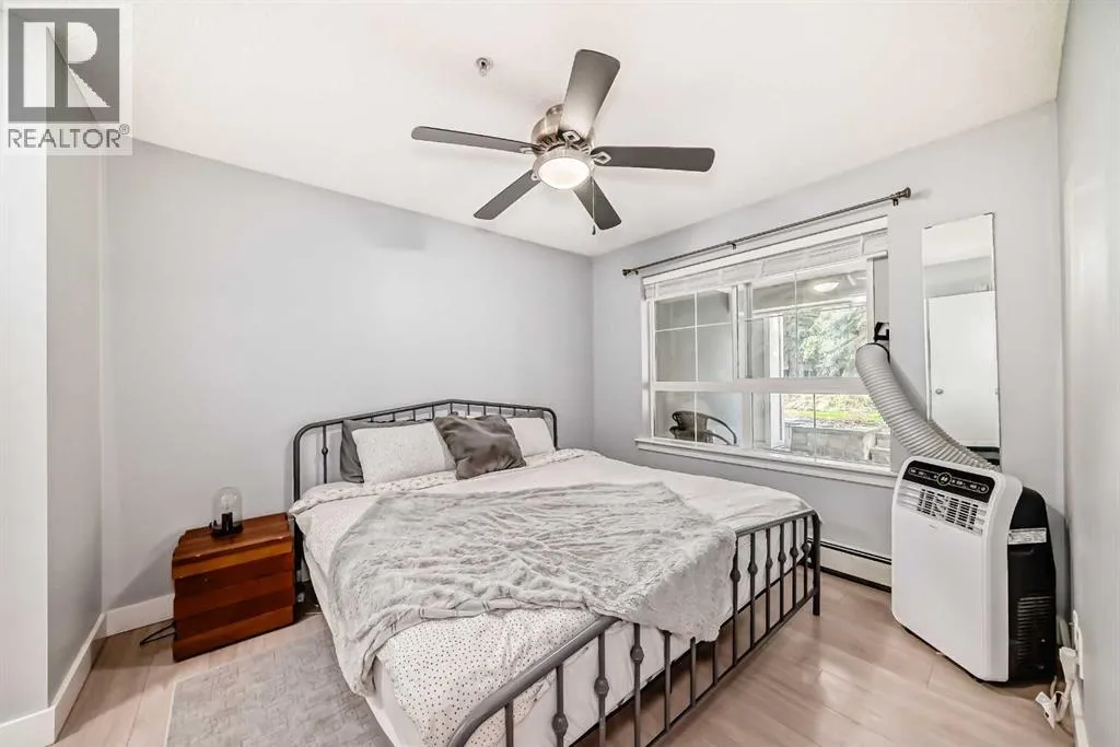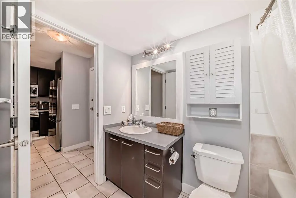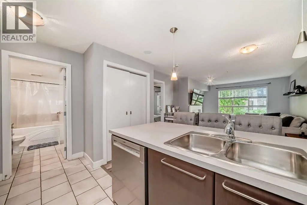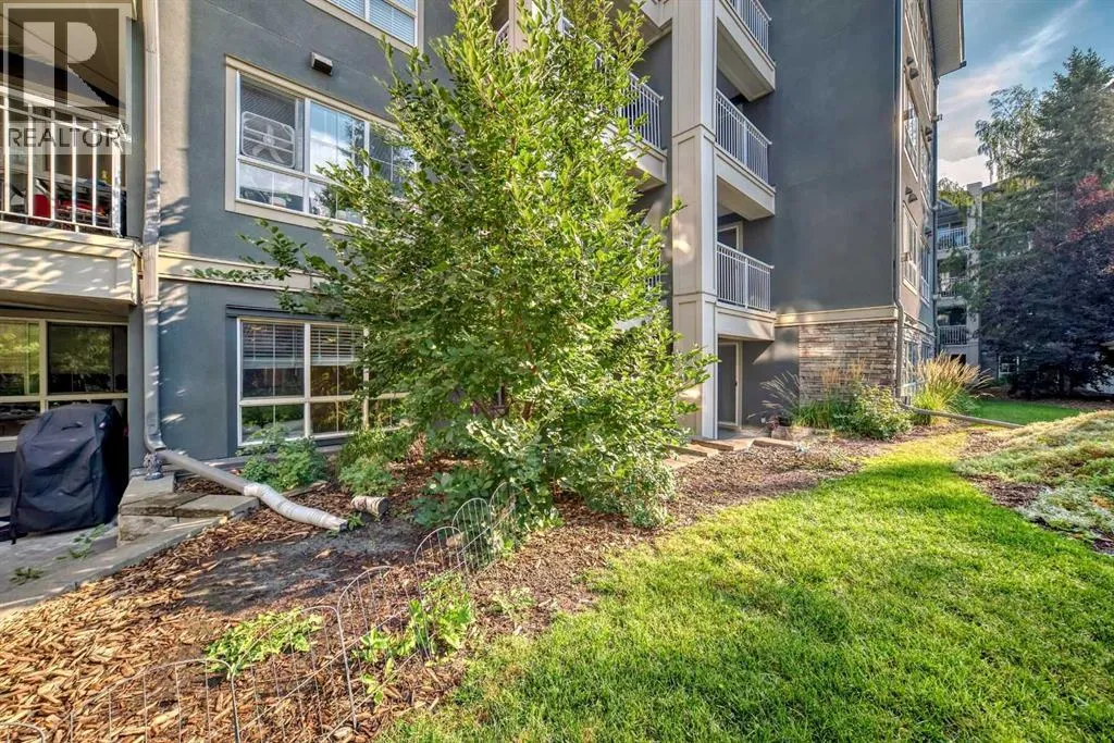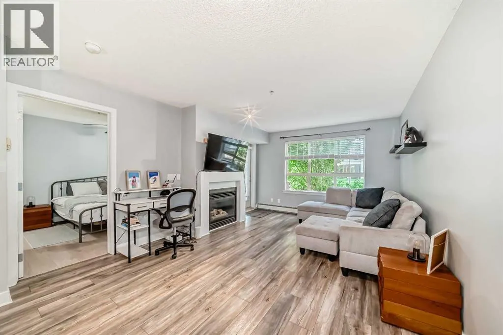 Move-In Ready & Pet Friendly! Bright 1-Bedroom Condo in Lincoln Park.Donât miss this bright and beautifully maintained 1-bedroom, 1-bathroom condo in the highly desirable community of Lincoln Park. Featuring a modern open-concept layout and stylish laminate flooring throughout, this move-in-ready home offers comfort, functionality, and exceptional value.The well-appointed kitchen includes a convenient breakfast bar and flows seamlessly into the dining area and inviting living room, complete with a cozy gas fireplaceâperfect for everyday living or entertaining. The spacious primary bedroom offers generous closet space and direct access to a cheater ensuite with a large soaker tub. South-facing windows flood the unit with natural light, while the private patio provides direct access to a professionally landscaped courtyard. Pet-friendly (with board approval).Enjoy peace of mind with extensive recent upgrades, including all-new Samsung appliances installed in June 2024âelectric range, microwave hood fan, refrigerator, washer, and dryerâplus a Bosch dishwasher and new window coverings (2025).Located in the well-managed Morgan at the Park, residents benefit from outstanding amenities including a fitness centre, party room, rentable guest suites, titled underground parking, assigned storage locker, and ample visitor parking. Ideally situated just minutes from Mount Royal University, shopping, restaurants, and major commuter routes.An excellent opportunity for first-time buyers, investors, or downsizersâschedule your showing today! (id:27476)