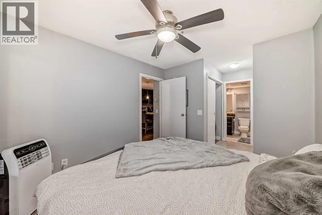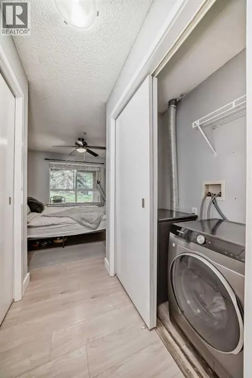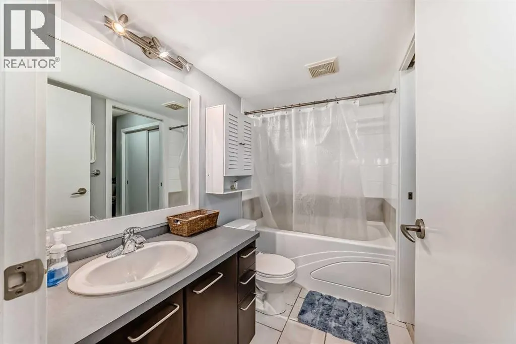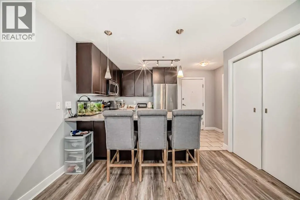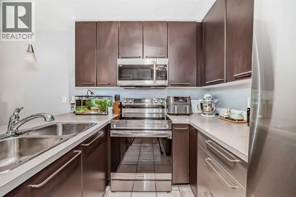 Move-In Ready & Pet Friendly! Bright 1-Bedroom Condo in Lincoln Park.Donât miss this bright and beautifully maintained 1-bedroom, 1-bathroom condo in the highly desirable community of Lincoln Park. Featuring a modern open-concept layout and stylish laminate flooring throughout, this move-in-ready home offers comfort, functionality, and exceptional value.The well-appointed kitchen includes a convenient breakfast bar and flows seamlessly into the dining area and inviting living room, complete with a cozy gas fireplaceâperfect for everyday living or entertaining. The spacious primary bedroom offers generous closet space and direct access to a cheater ensuite with a large soaker tub. South-facing windows flood the unit with natural light, while the private patio provides direct access to a professionally landscaped courtyard. Pet-friendly (with board approval).Enjoy peace of mind with extensive recent upgrades, including all-new Samsung appliances installed in June 2024âelectric range, microwave hood fan, refrigerator, washer, and dryerâplus a Bosch dishwasher and new window coverings (2025).Located in the well-managed Morgan at the Park, residents benefit from outstanding amenities including a fitness centre, party room, rentable guest suites, titled underground parking, assigned storage locker, and ample visitor parking. Ideally situated just minutes from Mount Royal University, shopping, restaurants, and major commuter routes.An excellent opportunity for first-time buyers, investors, or downsizersâschedule your showing today! (id:27476)