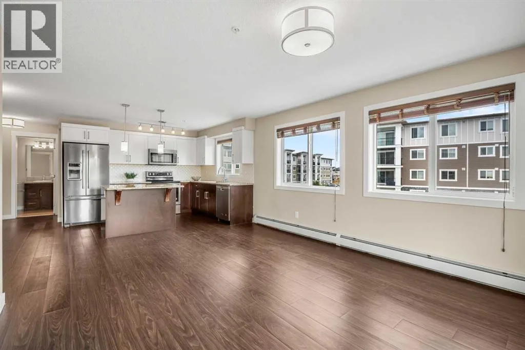 This stunning corner unit in the Sage Hill community is truly remarkable. Located in the newest building and boasting one of the largest layouts, it features a spacious 2-bedroom, 2-bathroom design with 9-foot ceilings and upgraded stainless steel appliances. Upon entering, you are welcomed by a sizable foyer with ample storage, leading into the main living area. The well-designed floor plan showcases an open kitchen with granite countertops and a large island that connects to the living room. Abundant natural light streams in from the west-facing windows, creating a warm and inviting atmosphere. This quiet home offers an attractive layout, with the two bedrooms positioned on opposite sides for added privacy. The primary bedroom boasts a generous walk-through closet leading to one of the most impressive five-piece ensuites youâve ever seen, featuring a soaker tub, a stand-up shower, and dual vanity sinks that add both elegance and practicality to your daily routine. The second bedroom is conveniently located next to the four-piece bathroom. Additional features include heated underground parking and storage, conveniently situated just across from the elevators. Almost all essential amenities, including Grocery stores, Tim Hortons, Shoppers Drug Mart, fitness facilities, and restaurants, are located just across the street. Immediate possession is available for this amazing unit! The affordable condo fees cover everything except electricity. (id:27476)