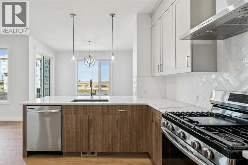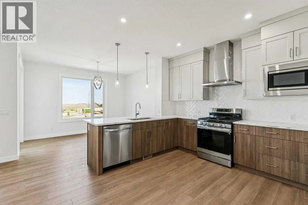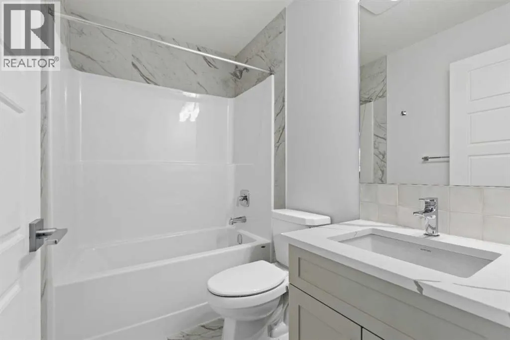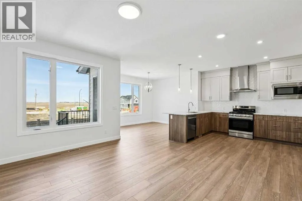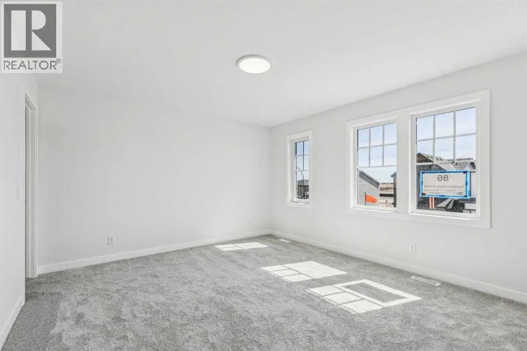 Immediate possession available at 86 Keystone Creek Terrace NW. This 2,184 sq ft NuVista Homes property offers 4 bedrooms and 2.5 bathrooms with a bright, open-concept design perfect for modern family living. The main floor features a stylish kitchen with quartz countertops, premium cabinetry, and a large island that flows into the dining area and great room. A versatile flex space provides options for a home office or additional seating. Upstairs, the spacious primary bedroom includes a walk-in closet and private ensuite, complemented by three additional bedrooms, a full bathroom, a central bonus room, and convenient upper-floor laundry. Large windows throughout enhance natural light, creating a warm and inviting atmosphere. A double attached garage offers parking and extra storage. Located in a desirable community near parks, pathways, schools, and amenities, this move-in-ready home blends comfort, functionality, and modern style. Photos are representative. (id:27476)