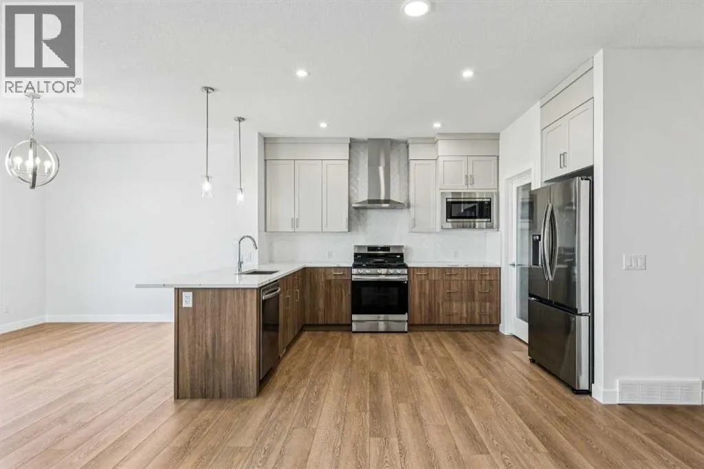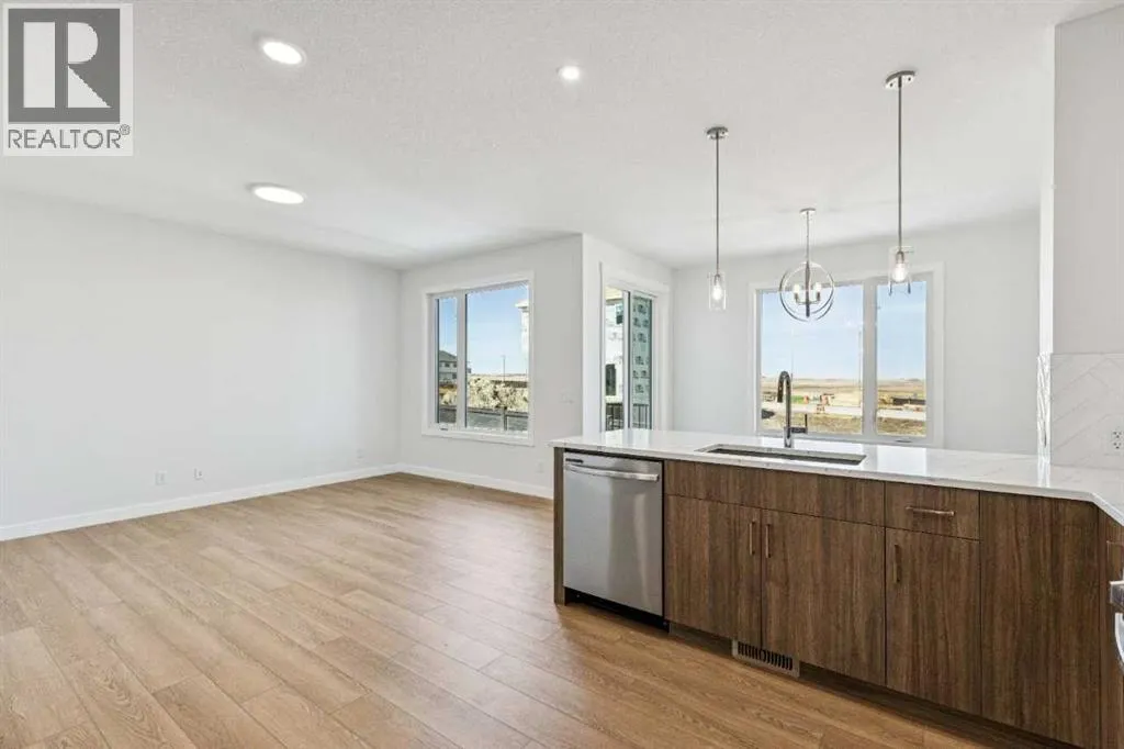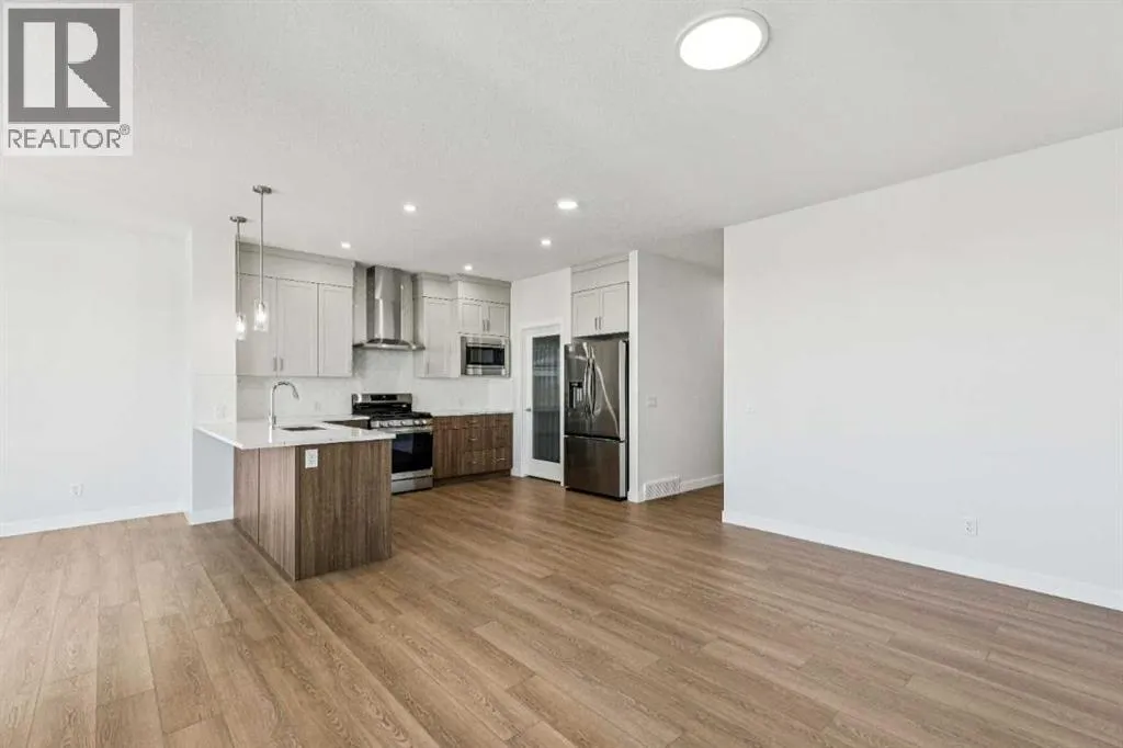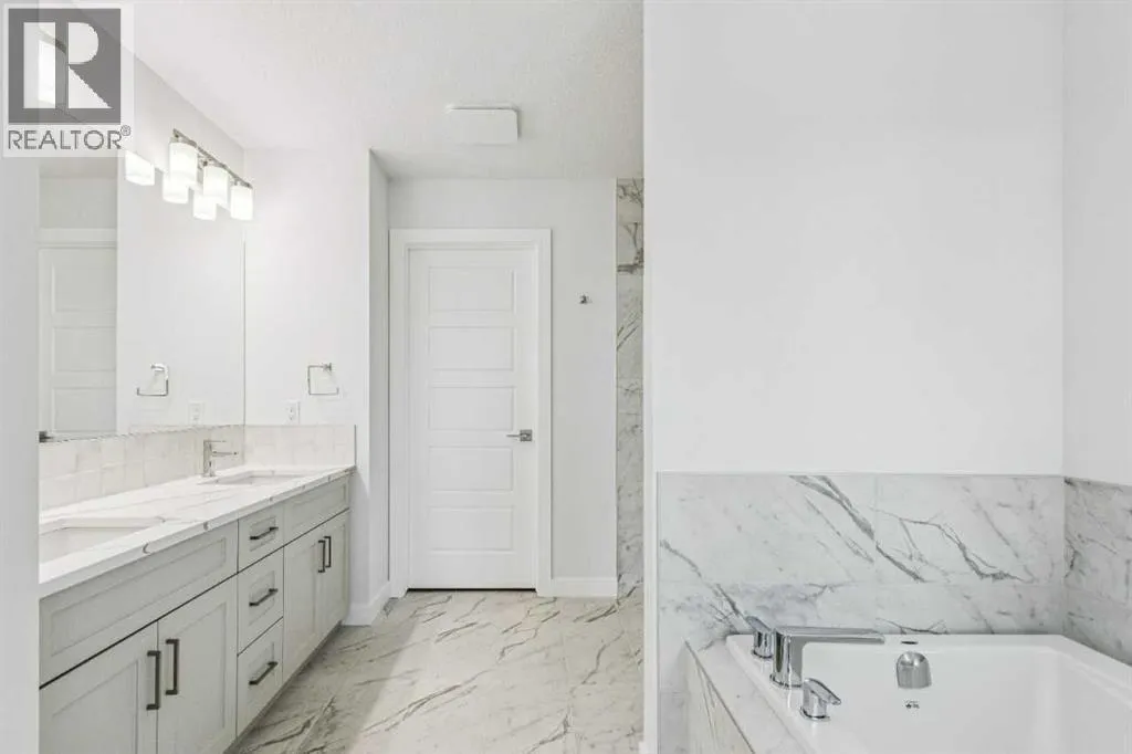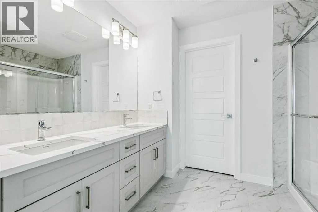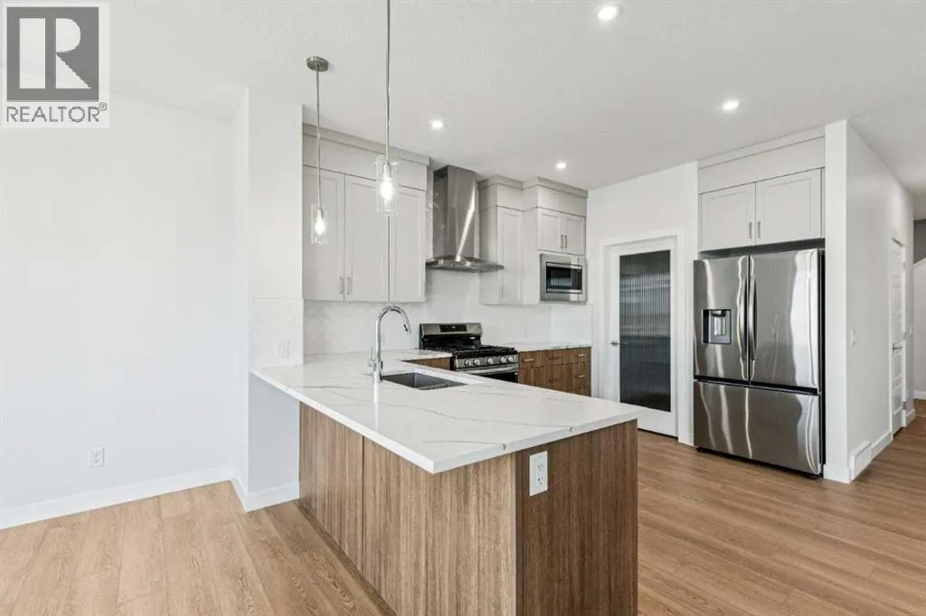 Immediate possession available at 86 Keystone Creek Terrace NW. This 2,184 sq ft NuVista Homes property offers 4 bedrooms and 2.5 bathrooms with a bright, open-concept design perfect for modern family living. The main floor features a stylish kitchen with quartz countertops, premium cabinetry, and a large island that flows into the dining area and great room. A versatile flex space provides options for a home office or additional seating. Upstairs, the spacious primary bedroom includes a walk-in closet and private ensuite, complemented by three additional bedrooms, a full bathroom, a central bonus room, and convenient upper-floor laundry. Large windows throughout enhance natural light, creating a warm and inviting atmosphere. A double attached garage offers parking and extra storage. Located in a desirable community near parks, pathways, schools, and amenities, this move-in-ready home blends comfort, functionality, and modern style. Photos are representative. (id:27476)