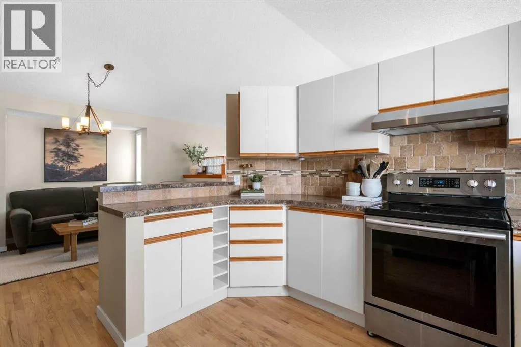 Welcome to this beautifully maintained 4-level split in the sought-after community of Hidden Valley, offering space, functionality, and thoughtful updates throughout. Ideally located on a quiet street, this property is just minutes from parks and playgrounds and within walking distance to both elementary and junior high schools. From the moment you arrive, youâll appreciate the charming curb appeal and welcoming presence. Inside, a spacious front entry with durable slate tile flooring sets the tone, leading into the bright and airy main living space highlighted by vaulted ceilings and rich hardwood flooring. The main floor offers incredible versatility, with a large bay window flooding the front dining area with natural light, perfect as a formal dining space or secondary living room. Adjacent to the kitchen, a cozy seating area provides the option for a dining setup, depending on your lifestyle. The kitchen is both functional and inviting, featuring white cabinetry, ample cupboard and counter space, a corner pantry, and stainless steel appliances, ideal for everyday living and entertaining alike. The lower level boasts a generous family room with direct access to the backyard, creating the perfect space for entertaining, relaxing, or spending time with family. Upstairs, youâll find three well-sized bedrooms with newer carpet throughout. The primary retreat offers a spacious layout, complete with a walk-in closet and a 3-piece ensuite. The secondary bedrooms are thoughtfully styled with feature walls, including modern wainscotting and designer wallpaper touches. The basement level adds even more flexibility with a fourth bedroom, a 3-piece bathroom, laundry area, and additional flex space, perfect for a home gym, storage, or hobby area. This level also includes an additional fridge, and access to extensive crawl space storage. Significant updates include a hail-resistant roof, new siding, a newer furnace and hot water tank (2015), central air conditioning, updated c arpet, modern baseboards, a new front door, and more. Step outside to enjoy the spacious backyard, complete with a large deck, fresh grass, and a rear parking pad with alley access. This well-cared-for home in a family friendly community is a fantastic opportunity that checks all the boxes. (id:27476)