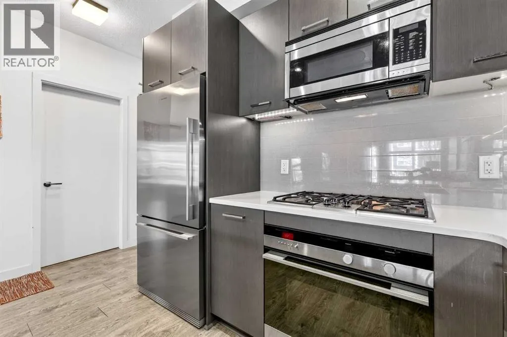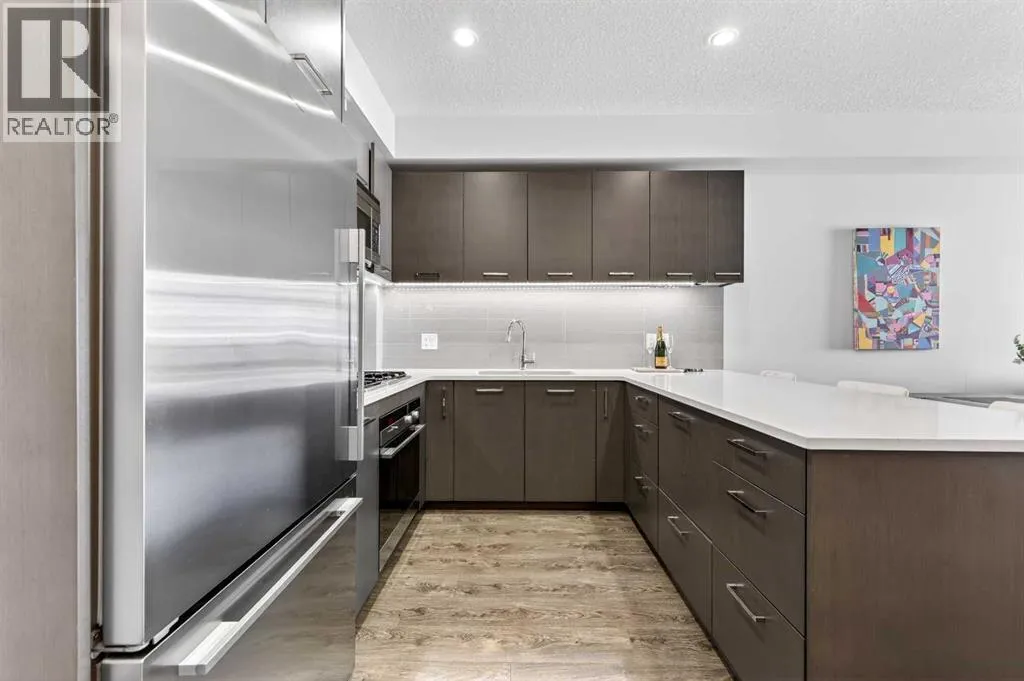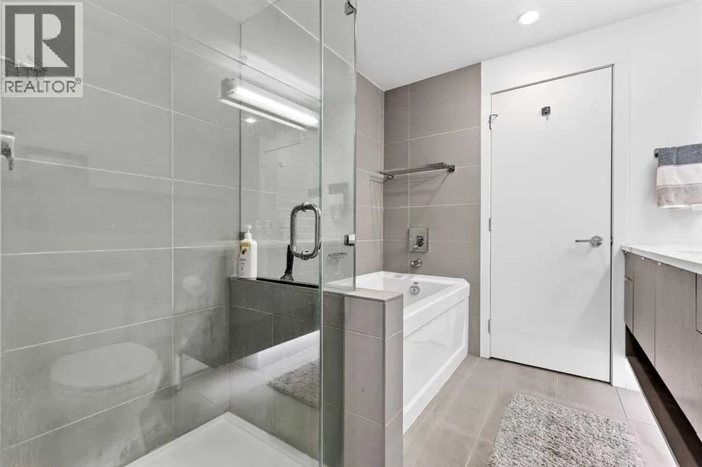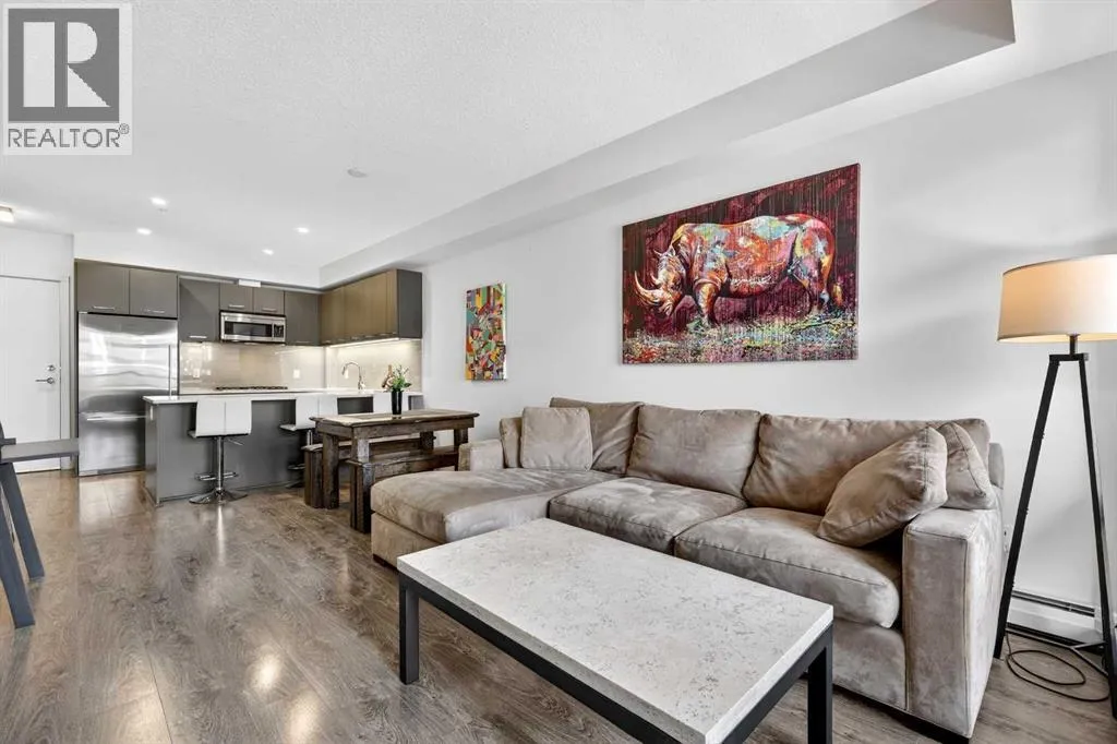 **TRIBECA - IN THE HEART OF MISSION l 1 BED - 1 BATH l AMAZING FLOOR-PLAN l COVERED BALCONY l TITLED UNDERGROUND PARKING l IN SUITE LAUNDRY l INNER-CITY LIVING AT ITS FINEST l THE ONLY UNIT AVAILABLE IN THE BUILDING l ***ATTENTION PROFESSIONALS, FIRST-TIME BUYERS, INVESTORS, DOWNSIZERS & DISCERNING BUYERS*** A Rare Opportunity to Own in One of Calgaryâs Most Vibrant, Walkable and Sought-After Inner-City Communities â MISSION. The Tribeca by Bucci Developments represents the gold standard in inner-city condominium living â proudly certified Built Green Canada Platinum â a testament to quality, sustainability and thoughtful design. Upon entry, the open-concept layout immediately impresses. The spacious kitchen features modern soft close cabinetry, stunning quartz countertops, a breakfast bar, and top-of-the-line stainless steel appliances â flowing effortlessly into the living area which is filled with natural light. A garden door extends your living space outward to a lovely covered 76 sq ft balcony complete with a gas BBQ line and pleasant city views. The spacious primary bedroom offers a thoughtfully designed pocket door leading to an elegantly appointed four-piece bath, complete with a large quartz vanity, glass-enclosed shower, and deep soaker tub.This unit includes one titled underground parking stall, assigned storage locker, access to a heated parkade with car wash bay, secure bike storage, underground visitor parking, and beautifully maintained community gardens.Steps from 4th Street and 17th Avenue, and within easy walking distance to downtown Calgaryâs finest dining, boutiques, pathways and amenities. PET FRIENDLY BUILDING! Exceptional value & Location. (id:27476)