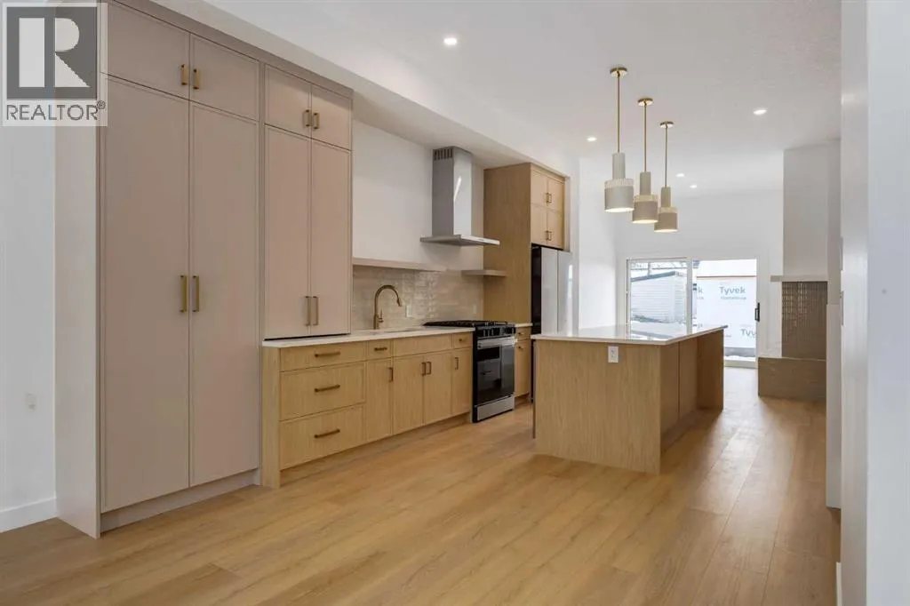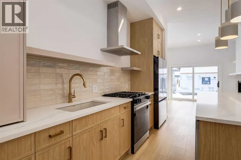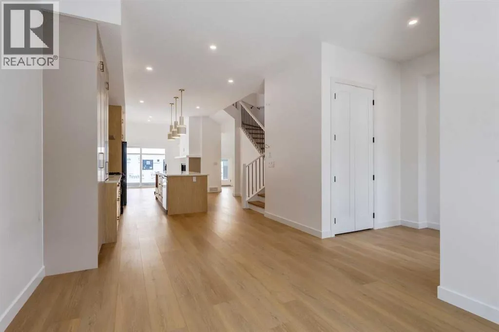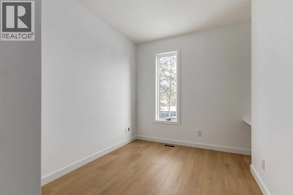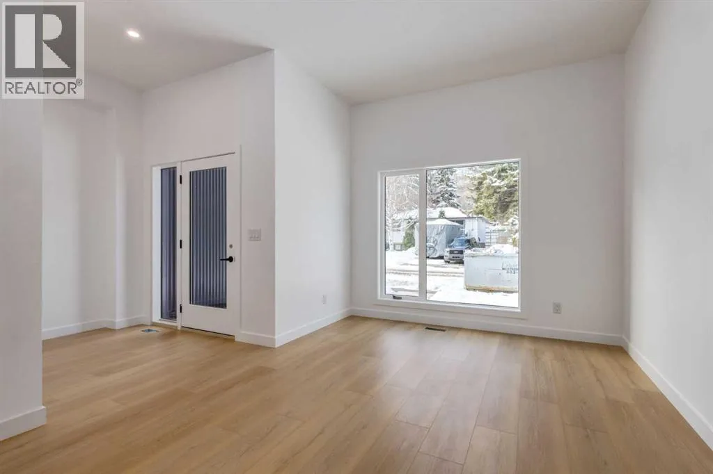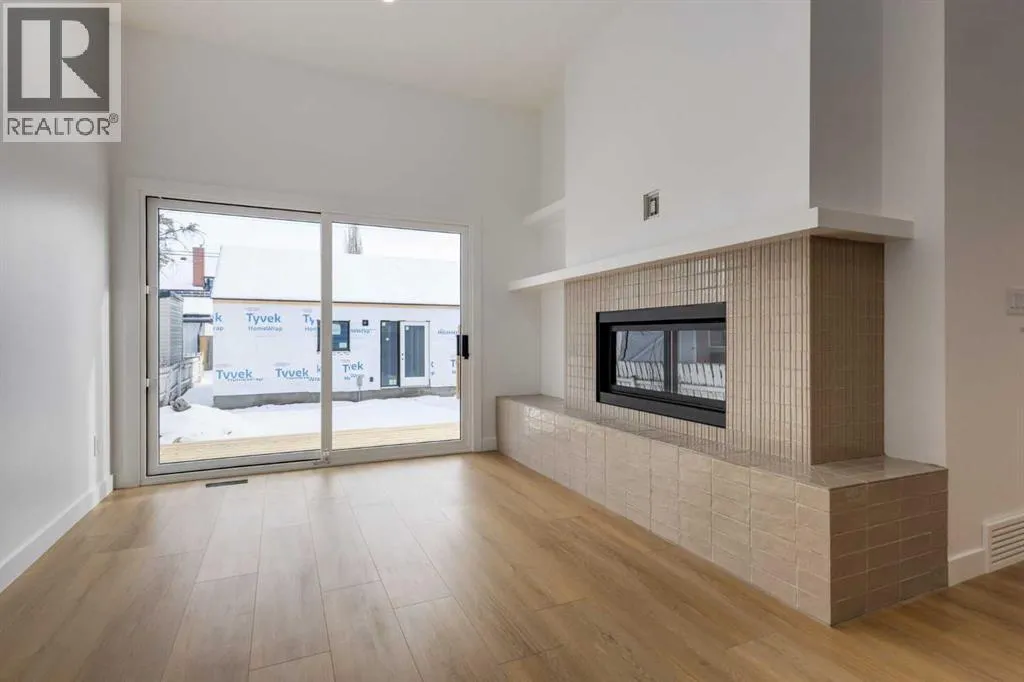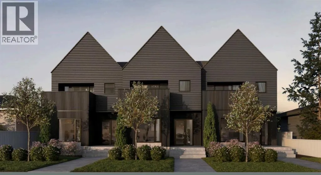 Welcome to a rare & refined opportunity on one of Bownessâ most coveted streets. Perfectly positioned along prestigious 33 Ave NW, this architecturally striking residence by Holt YYC Custom Homes offers an exceptional blend of modern design, quality craftsmanship, and an unbeatable inner city lifestyle. Just a five minute walk to Bowness Park & the Bow River pathway system, this home places nature, recreation, and city living within easy reach.This boutique tri-plex development is an attached single family home, NOT a townhome, meaning you own your land and there are no condo fees. It is similar to a traditional single family attached duplex but with three individual homes instead of two. Every detail reflects the design driven philosophy of Holt YYC Custom Homes, a Calgary based builder known for thoughtfully crafted homes and renovations that enhance the surrounding community. The project was personally overseen from concept to completion, ensuring exceptional attention to detail and superior construction quality.Inside, the home offers over 2,400 sq.ft. of finished living space with 3 bedrooms above grade & a 4th bedroom in the basement with large sunshine windows, along with 3.5 bathrooms. The main floor features flexible living with interchangeable dining, living, and den spaces, a custom fireplace, full height cabinetry, quartz counter-tops, stainless appliances, and luxury hard surface flooring throughout main/upper levels. The primary suite includes a private patio & spa inspired ensuite with walk-in shower and freestanding tub. The lower level includes a custom designed bar & spacious media room, ideal for entertaining. Large windows throughout the home fill the space with natural light, enhancing the modern & refined interior design. The exterior offers a generous backyard with a full custom deck and strong separation from neighbouring homes. Additional features include a detached double car garage, rough-in for air conditioning, a gas line for BBQ, an d a durable exterior finished with Hardie board siding and corrugated metal accents. Located in the heart of Bowness, residents enjoy a vibrant community w/ access to a growing mix of local cafes, restaurants, and shops. With quick access to downtown and the mountains, this location offers an exceptional connected lifestyle.With only three homes in this exclusive development, opportunities like this are rare. Experience modern luxury in one of Calgaryâs most dynamic and beloved neighbourhoods. Finishing touches are underway as the unit is currently under construction. Photos are of the show suite (Unit 3) and reflect the same finishing standards as Units 1. Property taxes have not yet been established and lot size is to be verified. Interior finishing is expected to be completed within 4 - 6 weeks, with landscaping & fencing scheduled for completion by June 2026. Units 1 is anticipated for occupancy btw mid June-mid July 2026. (id:27476)